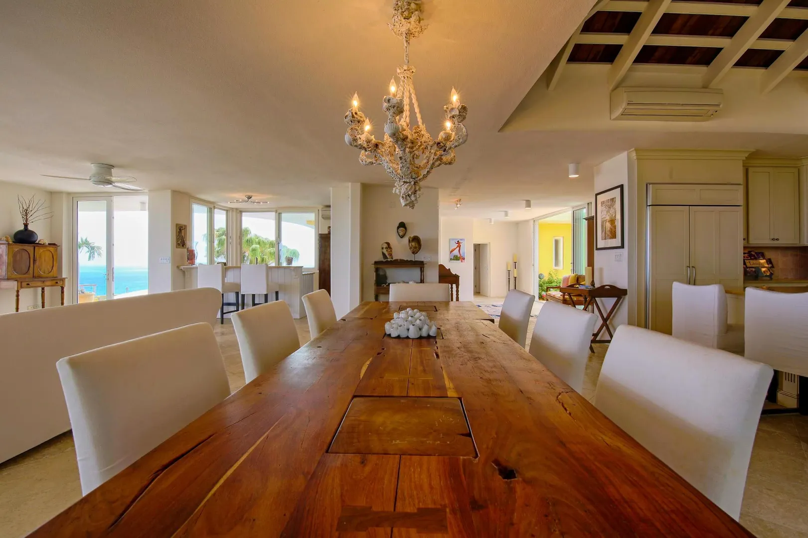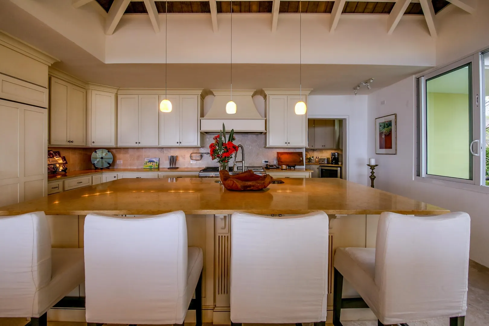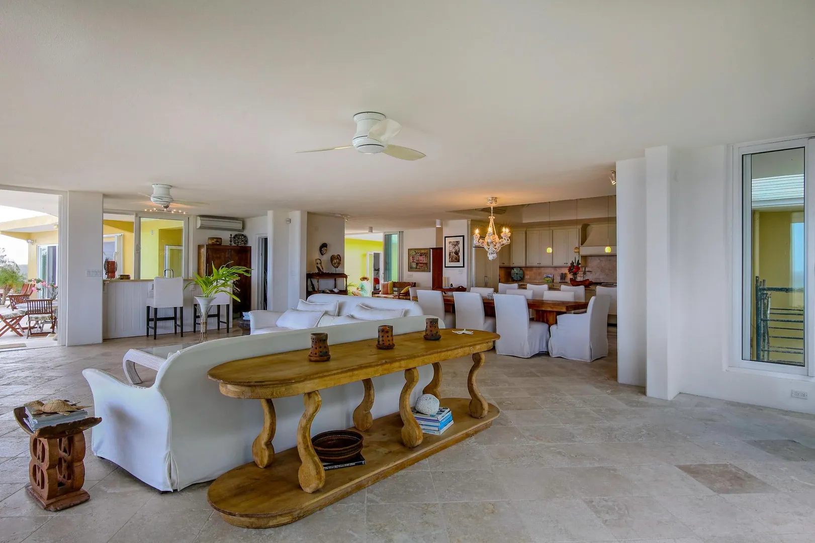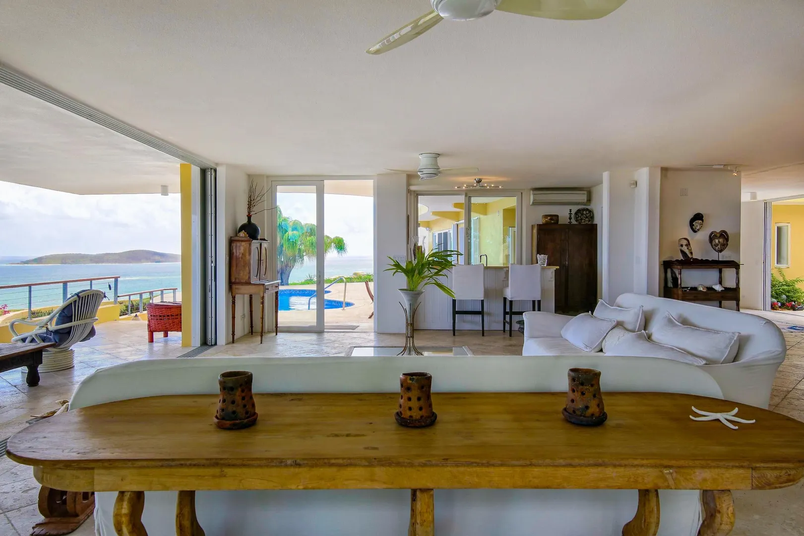 FOR COMP ONLY in the hills of Green Cay, this is a rare opportunity to purchase a private gated estate on St. Croix's east end. This property sits on approximately three acres of one of the nicest knoll tops east of Christiansted with panoramic views that stretch from Buck Island to Christiansted. This property was recently renovated with many fine finishes and fixtures, including new Plaza hurricane impact glass doors and windows throughout, tumbled marble flooring, granite and marble counters in kitchen and bathrooms, GE Monogram Professional Series Kitchen Appliances, split A/C units throughout as well as Minka Aire ceiling fans, and Kohler fixtures. The main house has three bedrooms upstairs with guest quarters below and separate one bedroom caretaker's cottage.The large courty