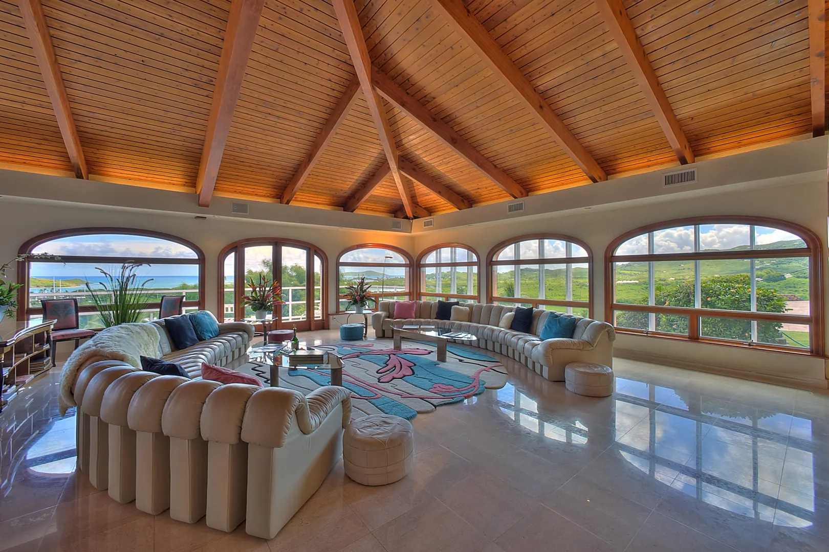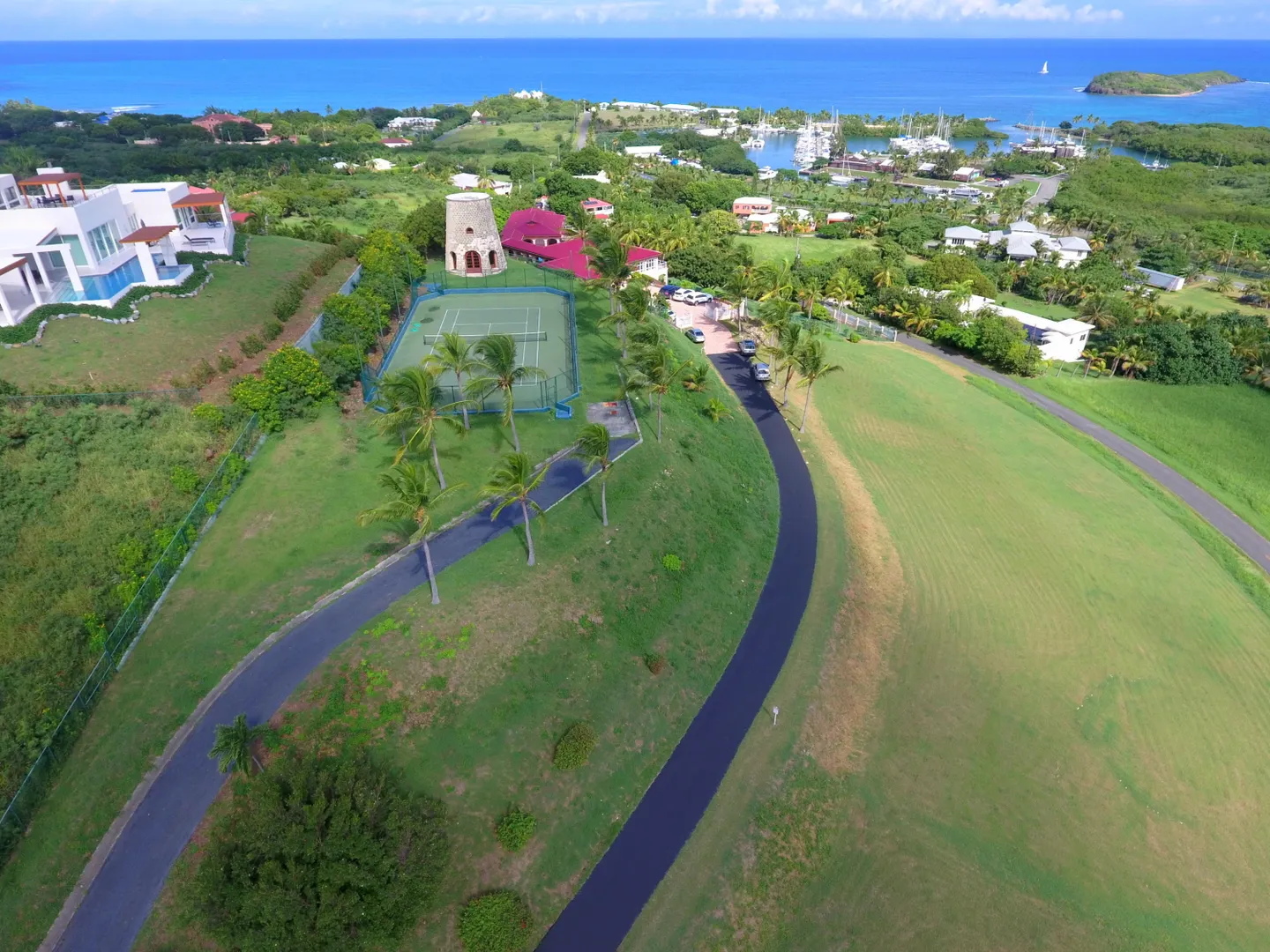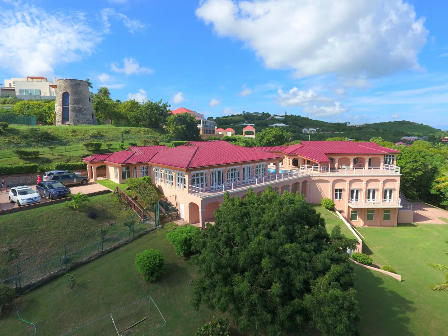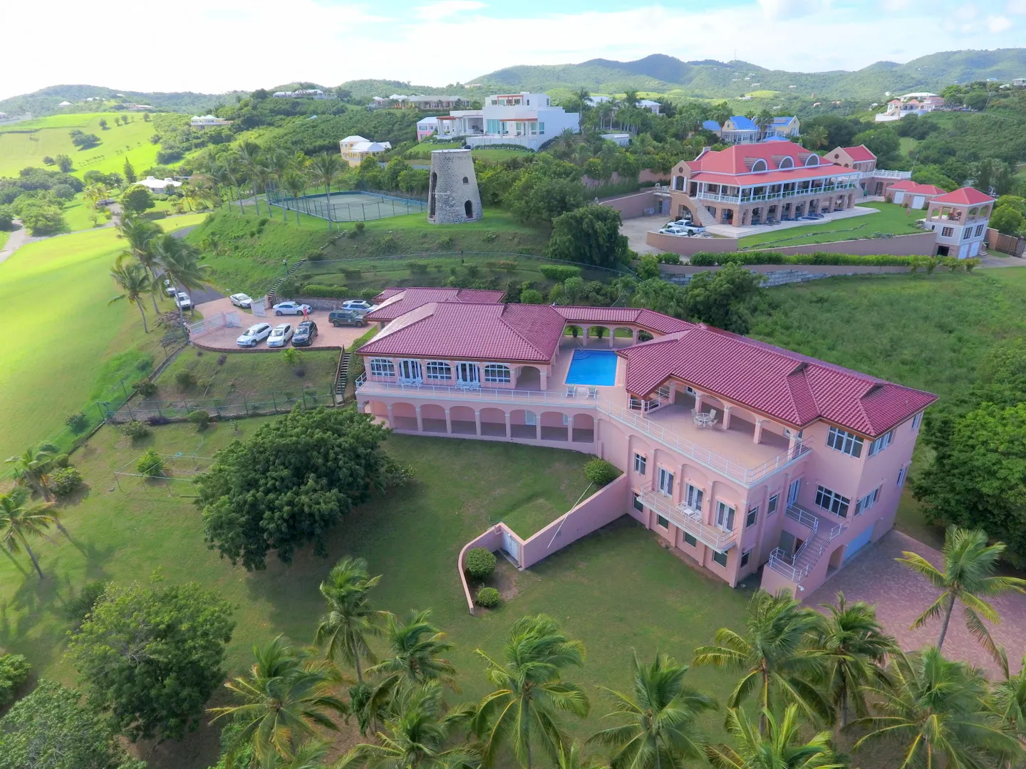 Gated three acre estate near Green Cay Marina and beach. Featuring five bedroom suites, beautiful pool with Buck Island view, tennis courts, sauna and on site gym. Spacious kitchen flows to dining room and great room with floor to ceiling windows to highlight the expansive views. Custom built Sugar Mill with mahogany bar perfect for entertaining! Garage and apartment on lower level. 2 wells on property. Not being used at this time by Seller.