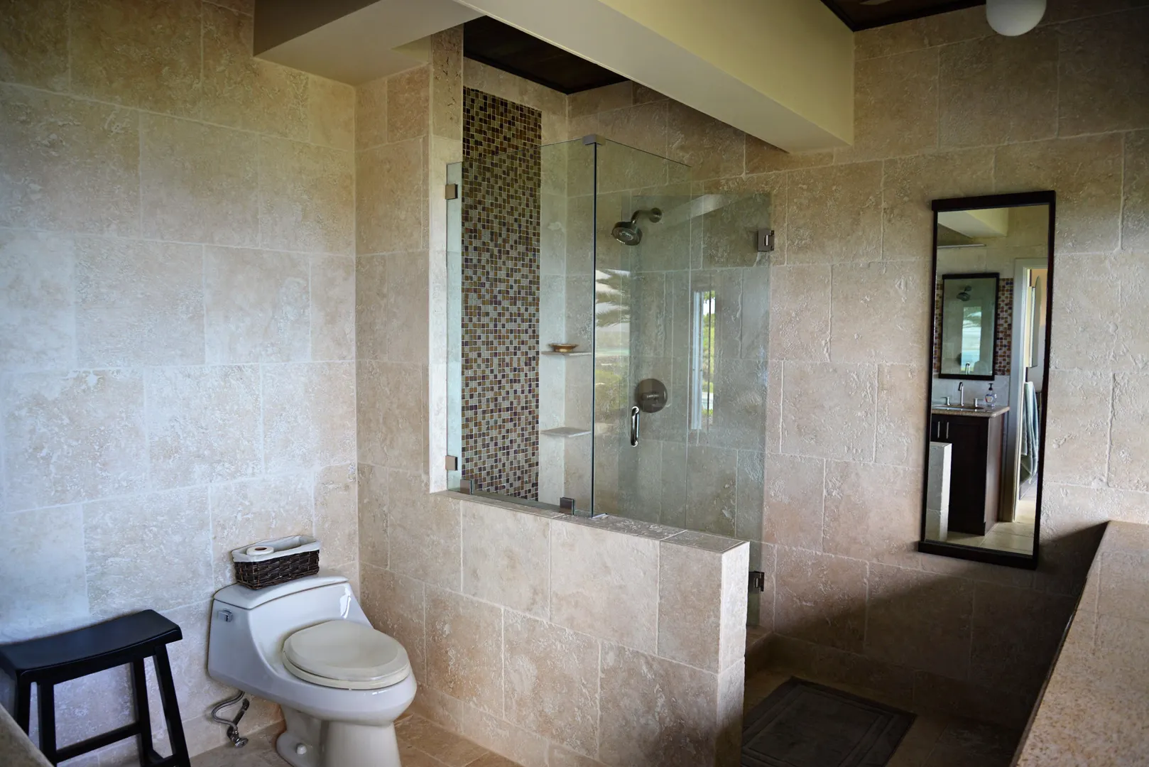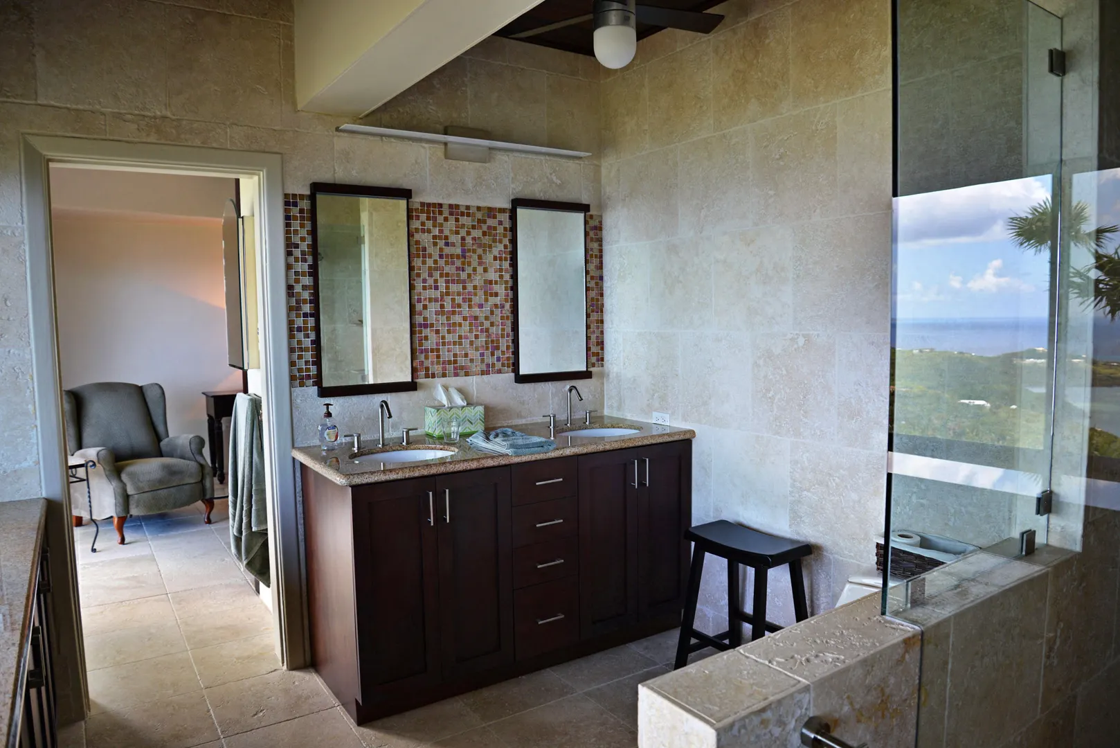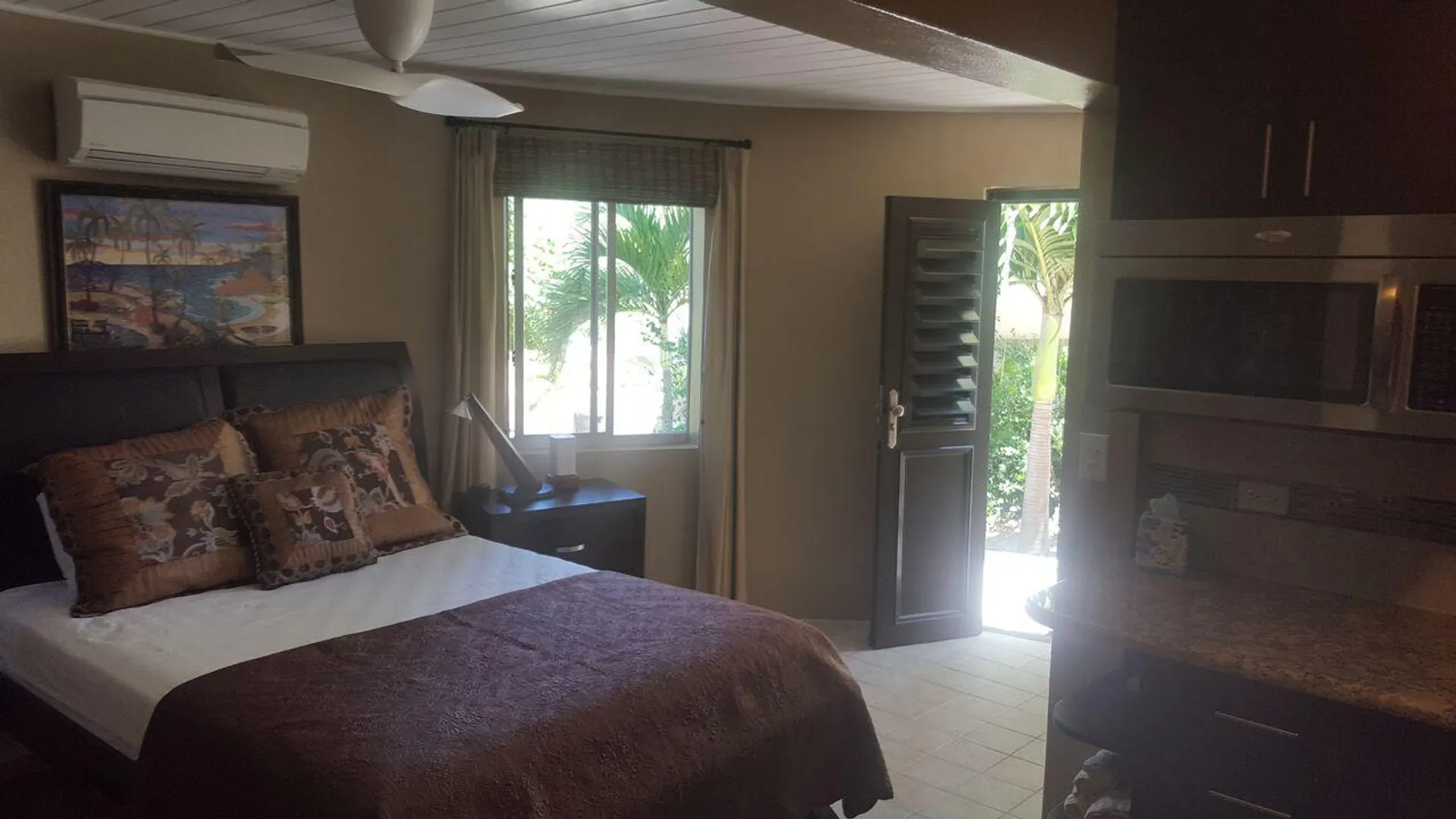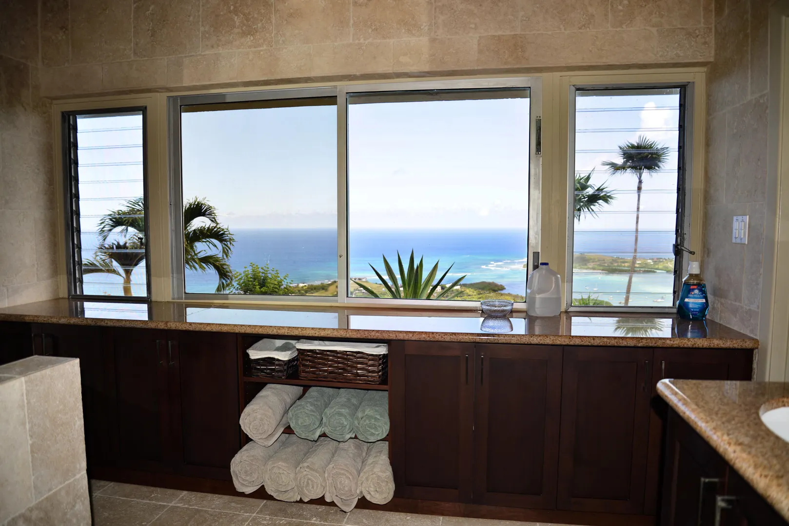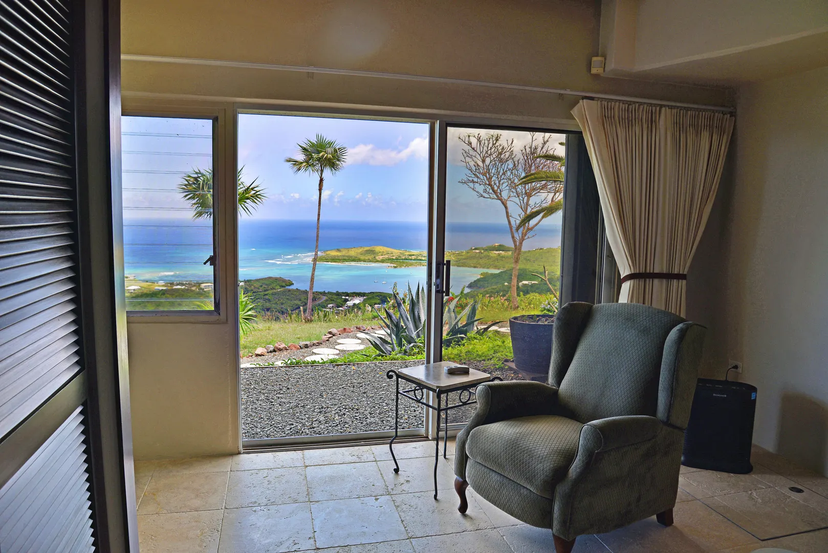 Undeniably one of the best views on the island! Unique mid century modern design by Sacha Tebo. Main house has 2/2, ''sugar mill'' inspired guest efficiency apt. Spacious, open design with walls of glass to enjoy the spectacular dual shore views. Extra lot on south side to protect that view, or build on.This is one of a kind; referred to as ''SMILE'' house. ROAD IS NOW PAVED TO THE HOUSE.Just for completeness here's a list of the stuff I just did this year: Things that have been done in last few years: 1. Installed new generator, 20Kw. 2. Installed new split A/C in guest bed, serviced other two. 3. Installed new solid rear door on house. 4. Painted entire house with high quality Benjamin-Moore paint. Should last 8+ years. 5. Replaced rooftop solar water heater. 6. Rebuilt all inset lights on house and entry ramp. Used LED lights 7. Replaced doors to pool equipment room. 8. Re-grouted swimming pool. 9. Installed new pool SS light bucket with LED light. 10. Checked with Rooftops. They recoated the roof in April 2011. With silicone it should last 15 years. They recommended to wait. The roof visibly looks great.