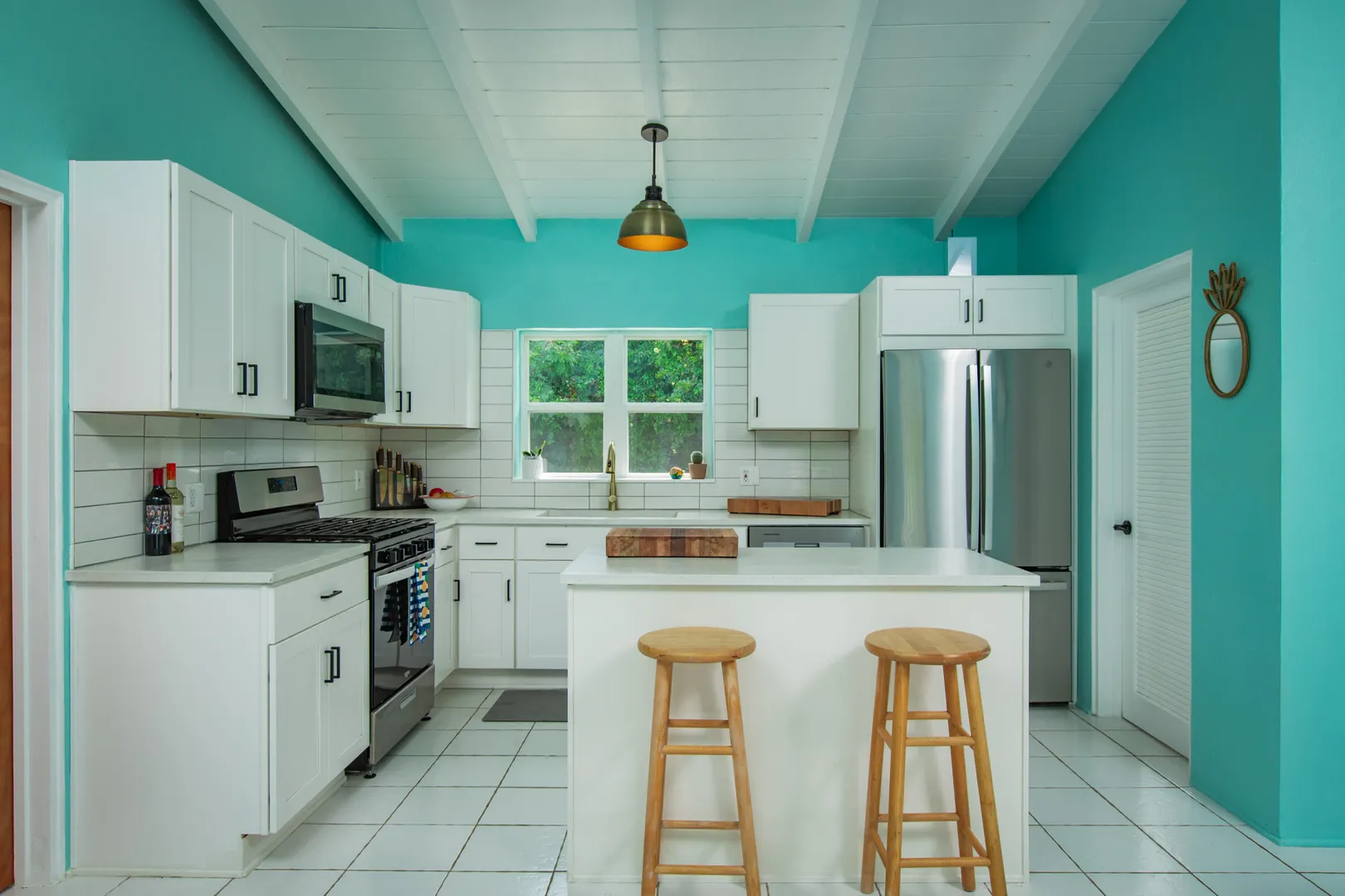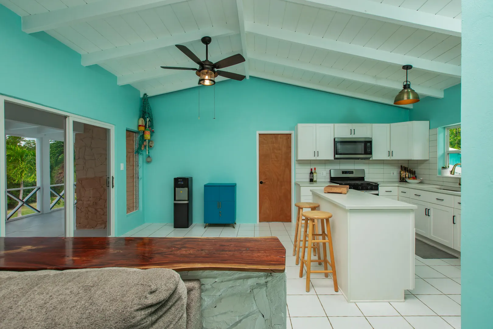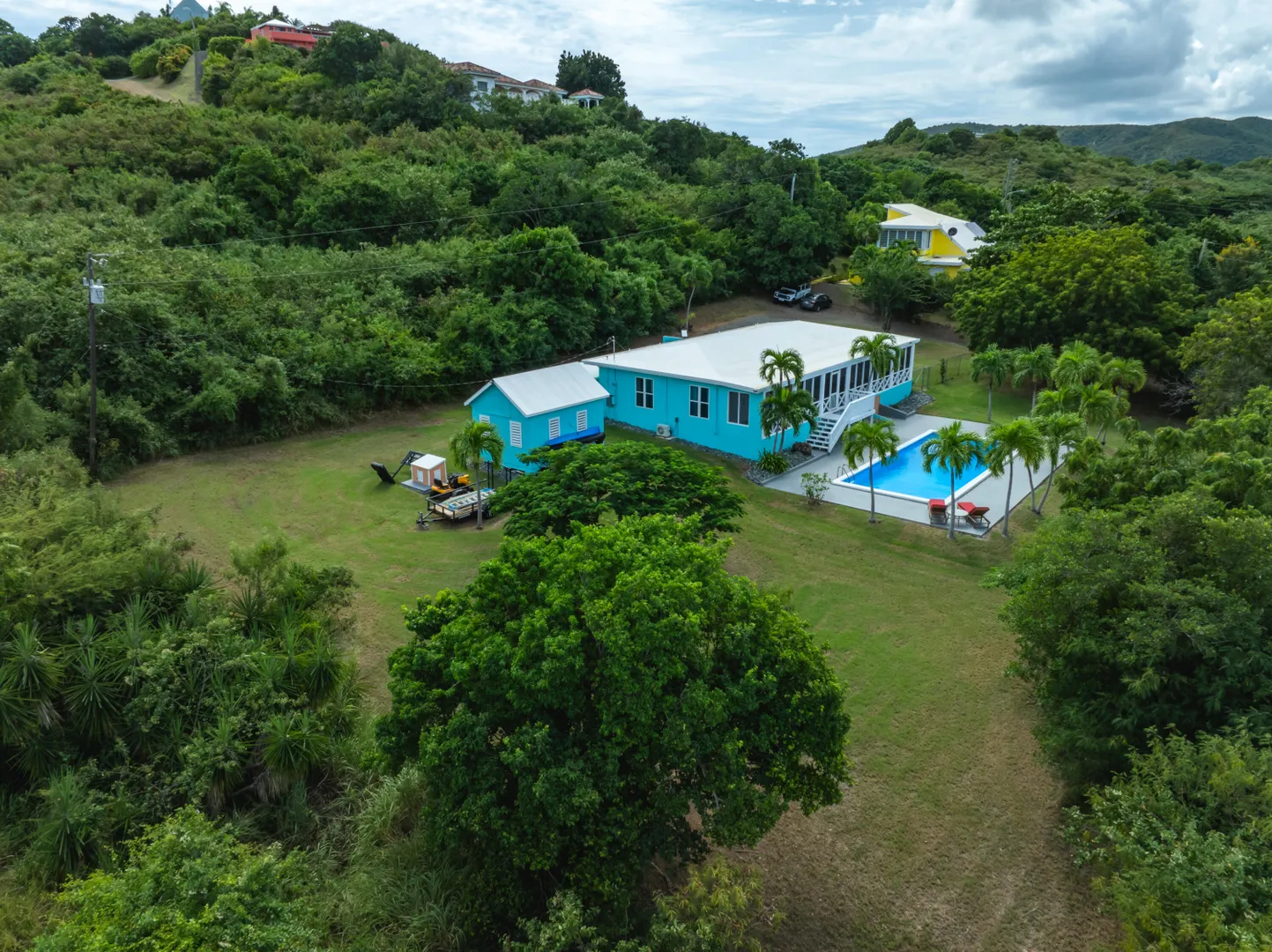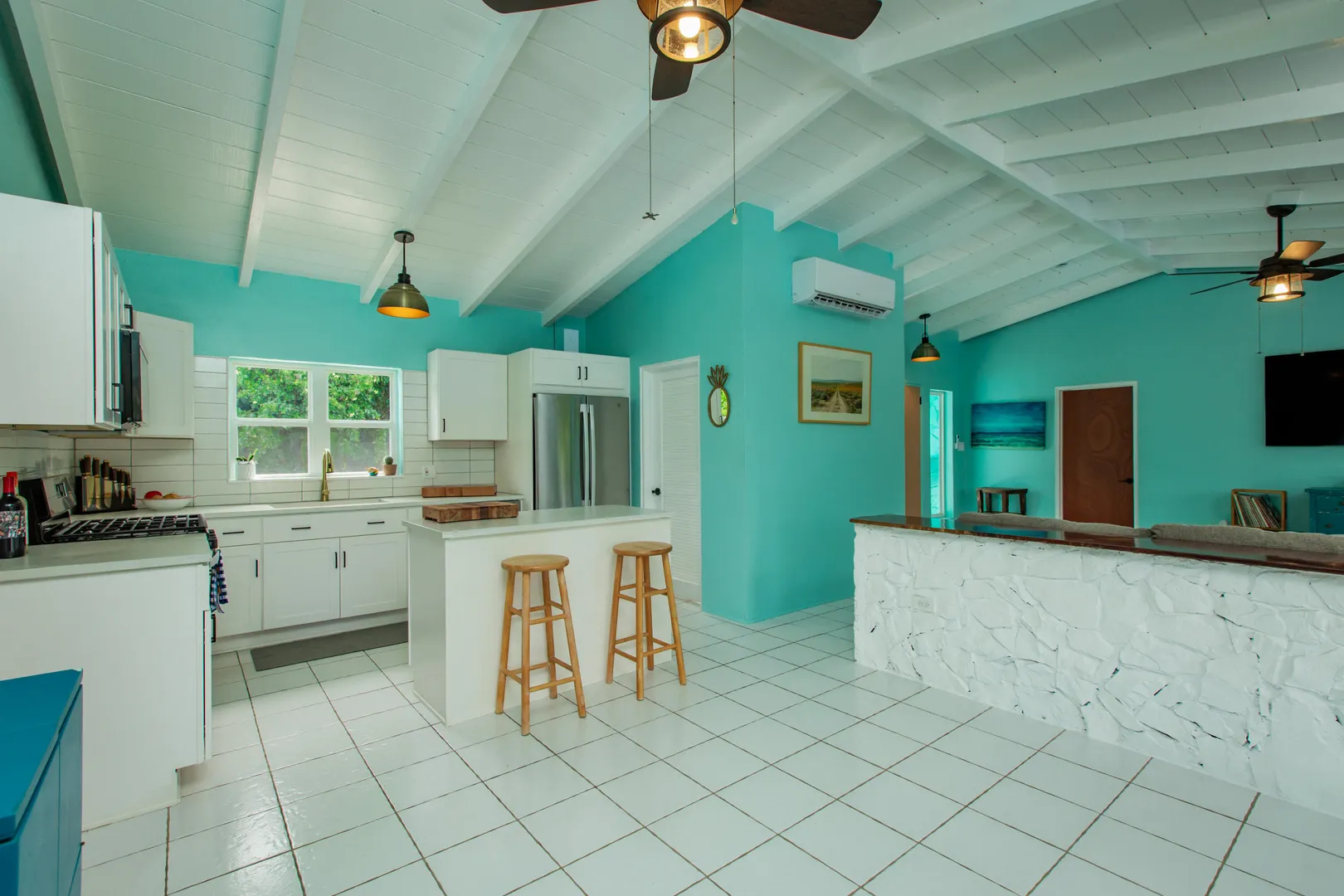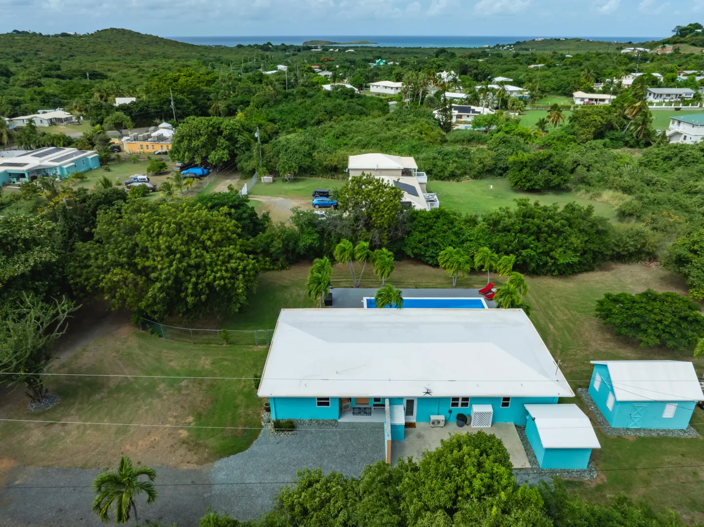 Don't miss out on this east end gem! 2-bedroom, 2-baths, spacious living area w/ vaulted ceilings, brand new kitchen with concrete countertops, large screened in gallery overlooking the beautiful pool and sundeck! Tucked away in a residential neighborhood at the end of a private road, this recently remodeled home has undergone quite the transformation! Freshly painted inside & out, all new kitchen appliances, new main bath, impact glass windows and patio slider, new split A/C's, roof recoated, a huge yard with fenced in area for pets, updated laundry room/pantry, workshop, storage shed, and generator shed with 600KW generator. Excellent family home or a perfect VRBO!