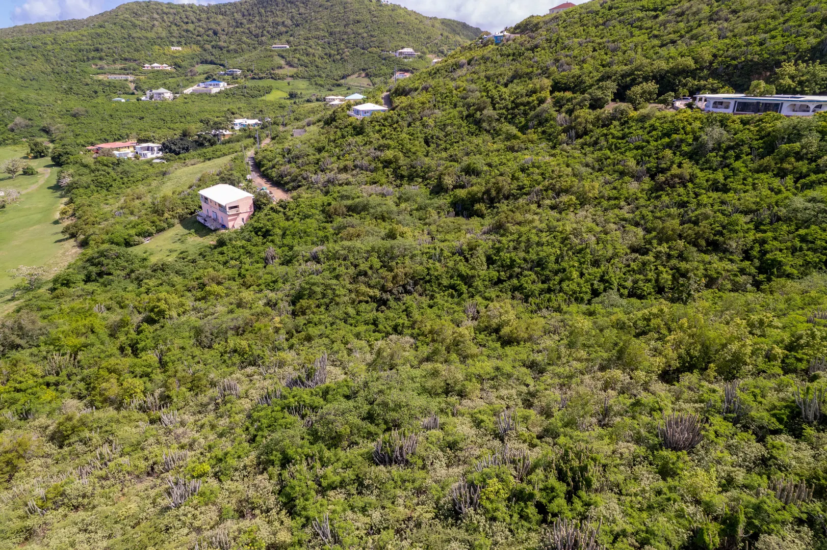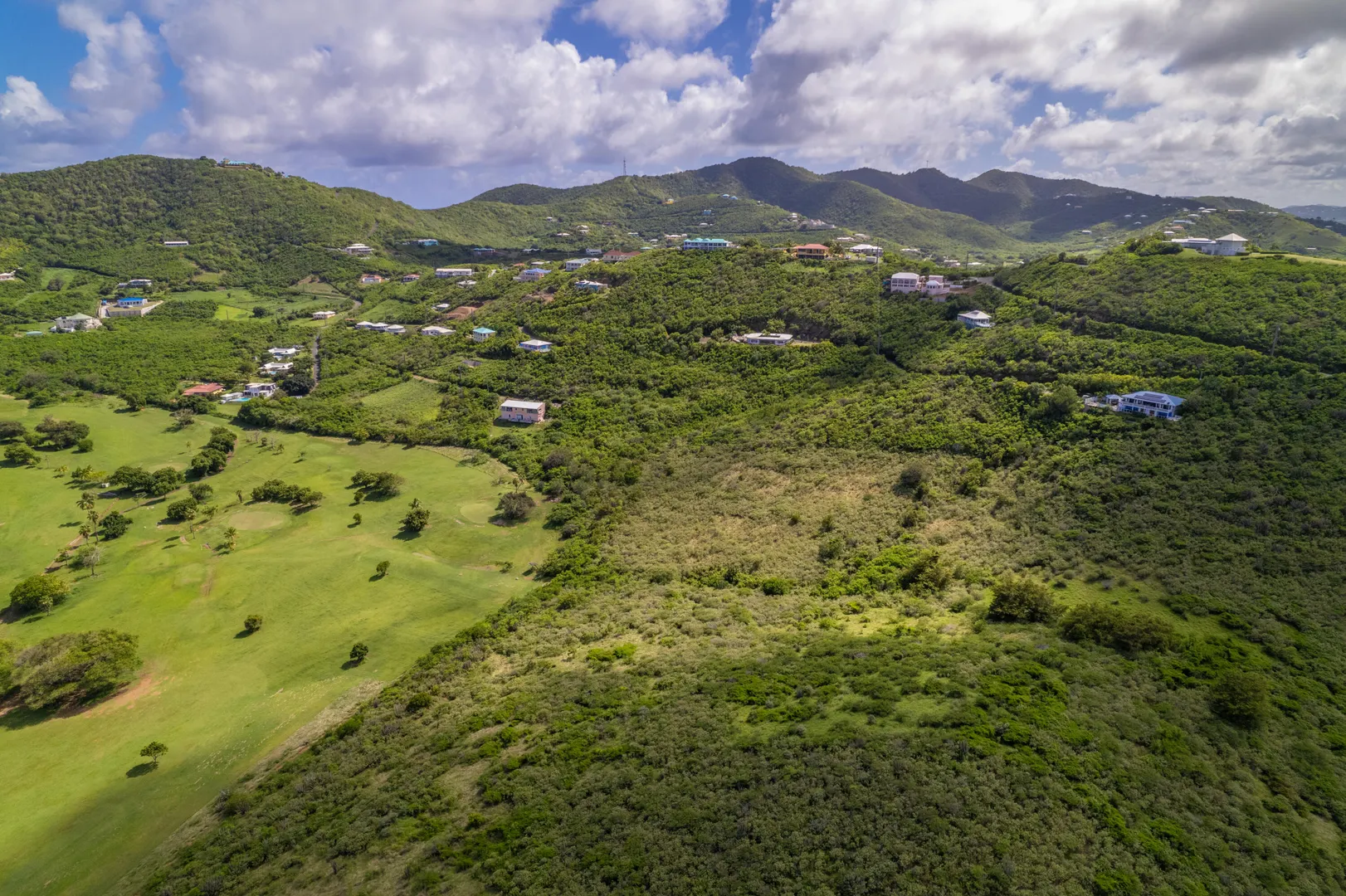 Spanning nearly 2 acres, this property includes two combined lots in the serene Cotton Valley neighborhood. Located on the eastern side, the property has breathtaking, unobstructed views of the Caribbean Sea, the St. Croix Yacht Club, and the verdant fairways of The Reef golf course. Its ideal orientation provides year-round cool breezes and stunning sunrises, while the elevated topography ensures your views remain uninterrupted, with no potential for someone to build and block your sea views. Nestled off a private, dead-end road with only one neighboring property beyond, this homesite offers unmatched privacy and minimal traffic. Despite its tranquil setting, the property is conveniently located just minutes from pristine beaches, acclaimed dining at Duggan's Reef, hiking trails,snorkeling spots, and the vibrant downtown Christiansted.