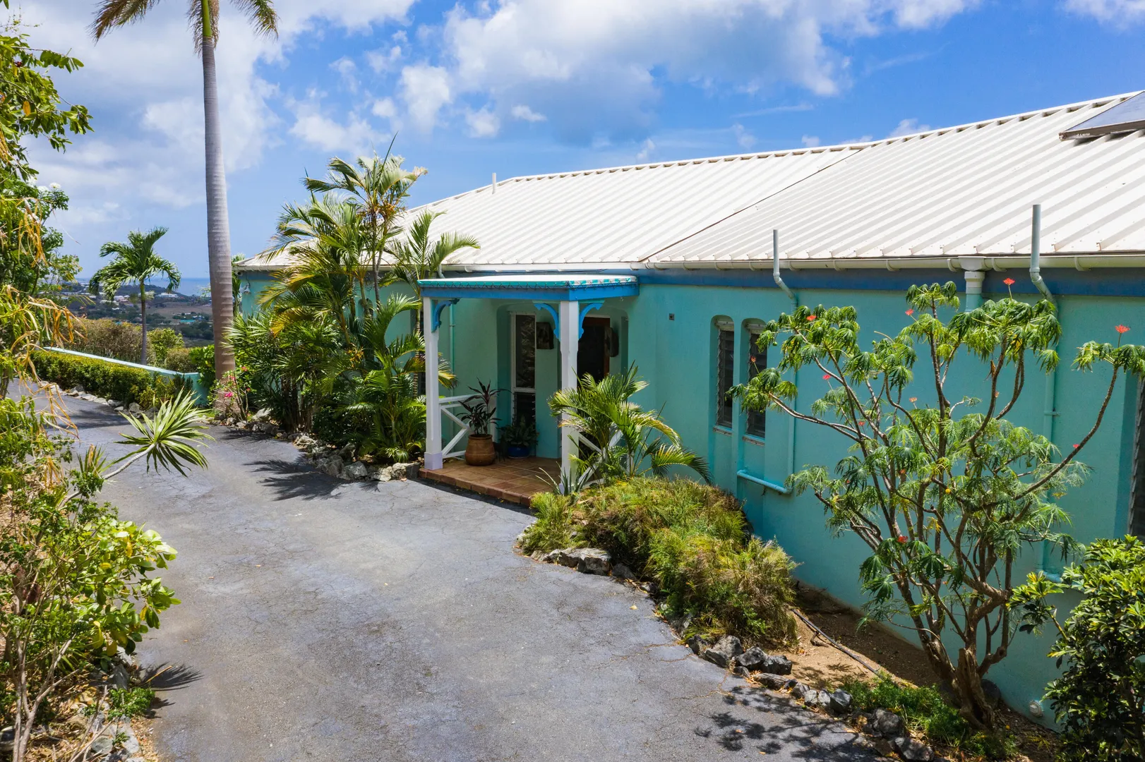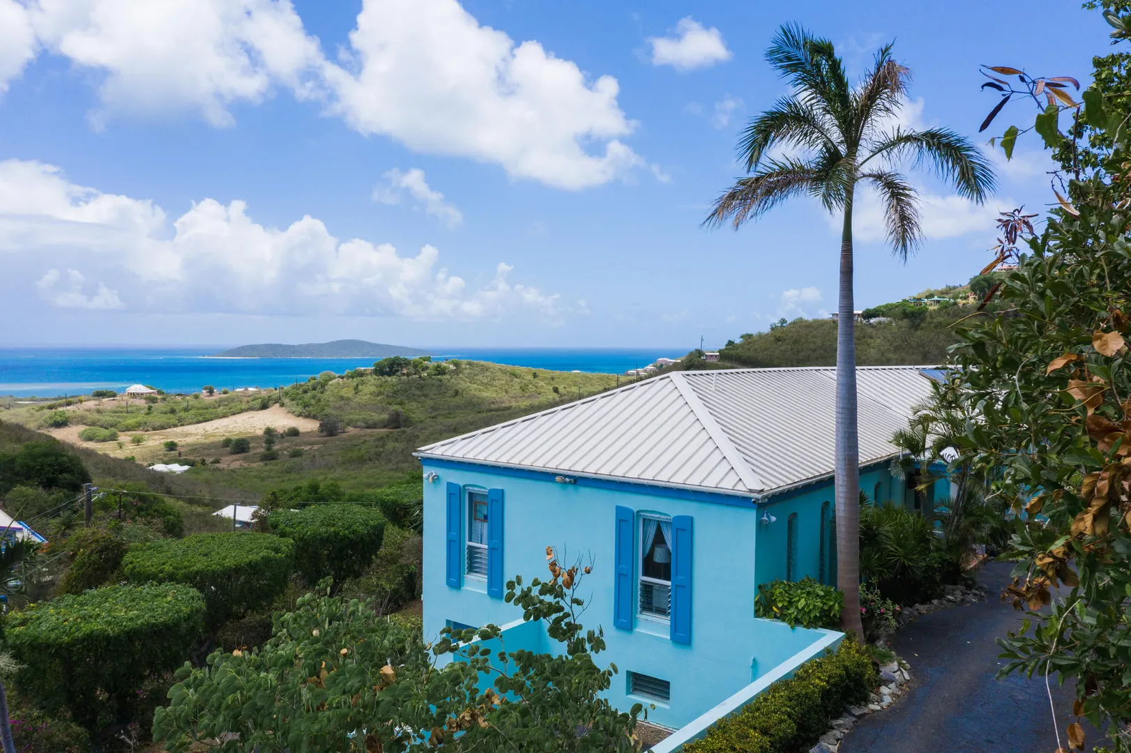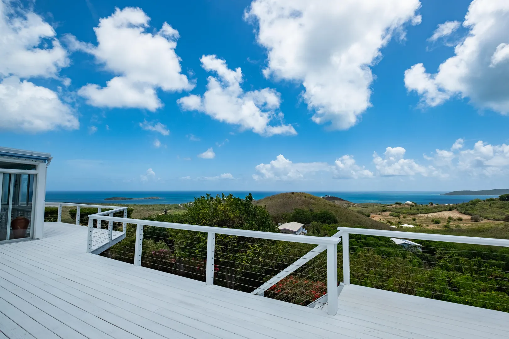 LIFE IS BETTER IN ALL FOR THE BETTER! This spacious and charming home is nestled in the hills of a desirable East End neighborhood, with an automatic gated entry. The setting on 1.7 lushly landscaped acres offer stupendous views from Christiansted to Buck Island, and the distant islands plus a glistening 'lights at night' panorama too! This immaculate home features 3 BRs and 3 baths upstairs w/ split AC in MBR and central in main, & a 2nd AC in 2nd BR, a1 BR apt. w/ AC below w/ its own private pkg. Enjoy the breezes on the new enclosed porch off the great room, which was specifically tied into the ground below for added reinforcement. Wander out to the pool on the wrap-around deck and sunning areas, and enjoy a refresher on the built-in pool seat & table under the umbrella!