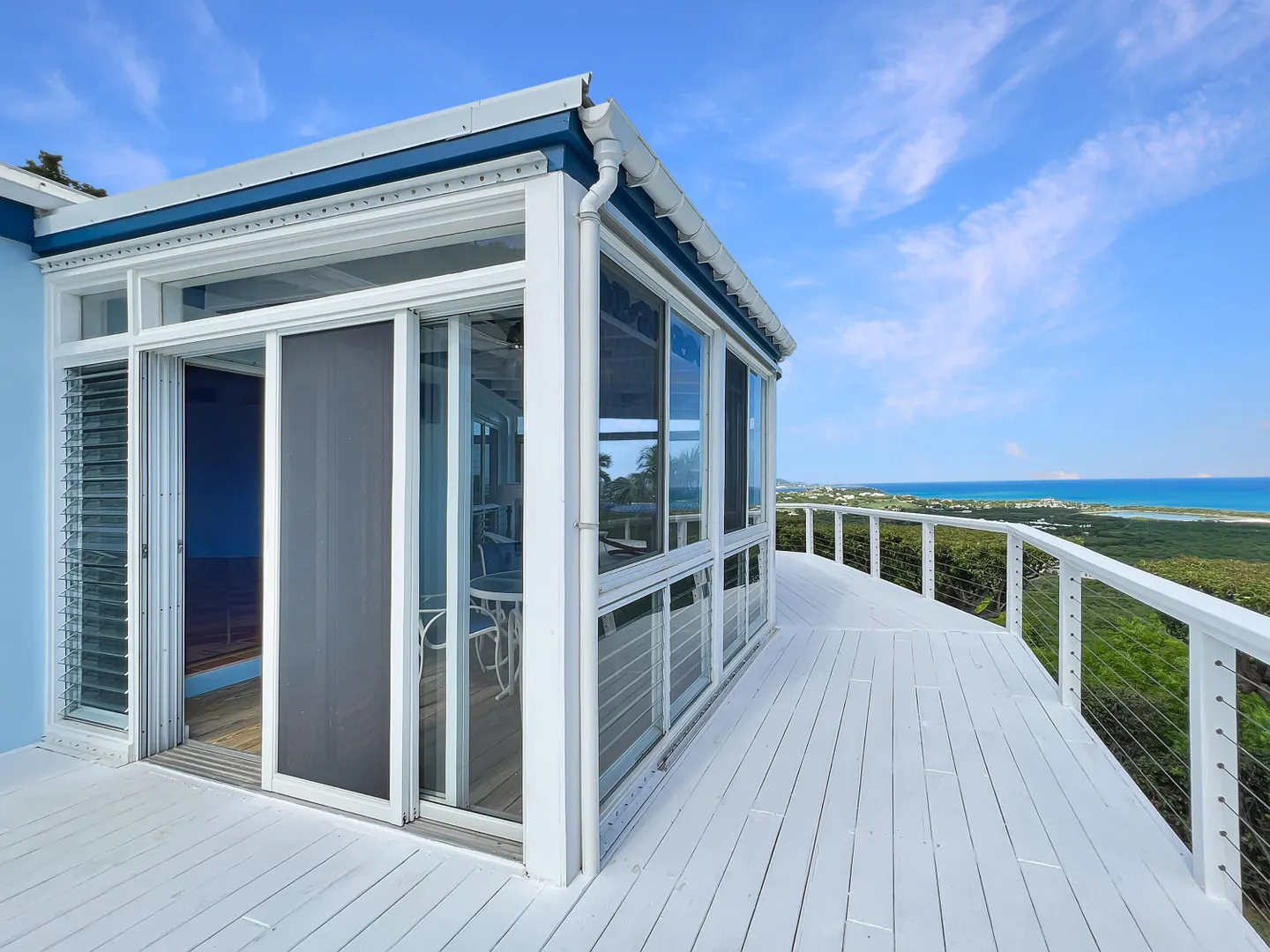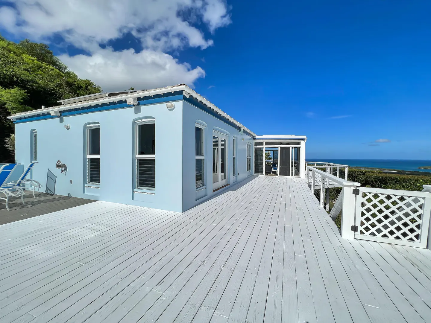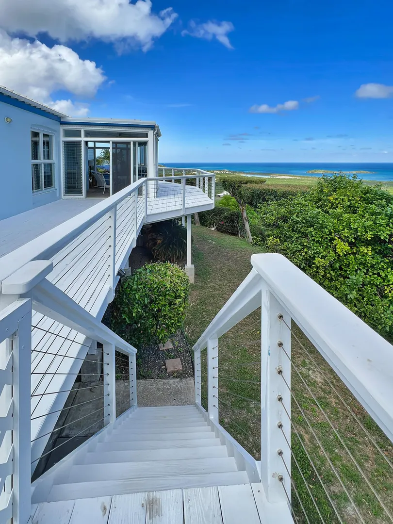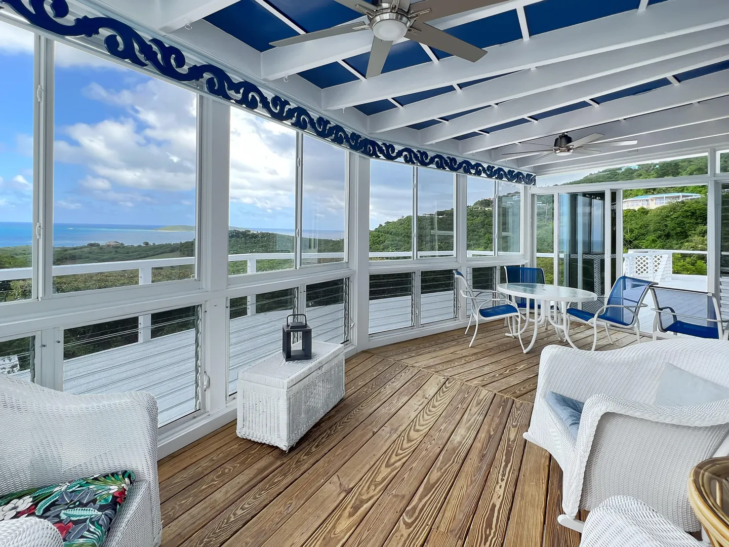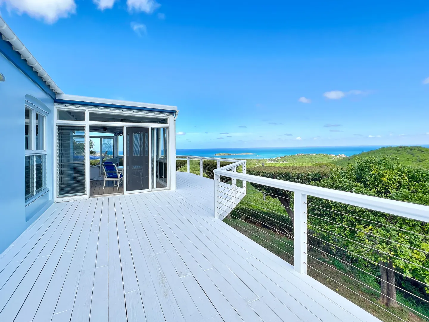 100% SOLAR ALL FOR THE BETTER BEAUTY! This spacious and delightful home on a large lot is nestled in the hills, and situated to take full advantage of the breezes and amazing sweeping views from Christiansted to Green Cay to Buck Island! Enjoy the views from the numerous windows and impact glass doors, the large deck, or from the pool, where there is built-in seating and a table for relaxing with a cool drink. Upstairs there are 3 bedrooms with ensuite bathrooms. There is a 1/1 apartment downstairs with its own private parking. The sun room was built with ties into the ground for added reinforcement, and is the perfect place to relax out of the direct sun. Trex decking surrounds the pool. The entire house was recently painted. See details of the many improvements in Documents section.