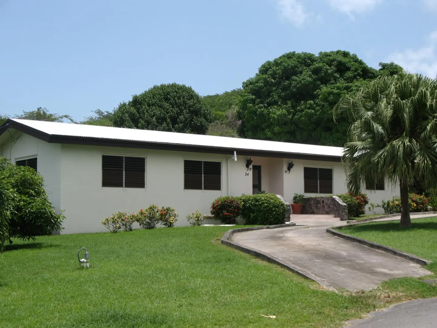 Terrific Family home in great community neighborhood, just minutes from the village of F'sted and from the best beaches on the island. This courtyard designed home has a separate master suite plus two bedrooms in the other wing. Very large LR/DR, carport, 18kw generator,deep well huge bearing mango tree, much more.