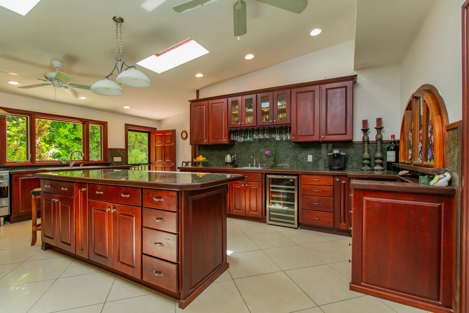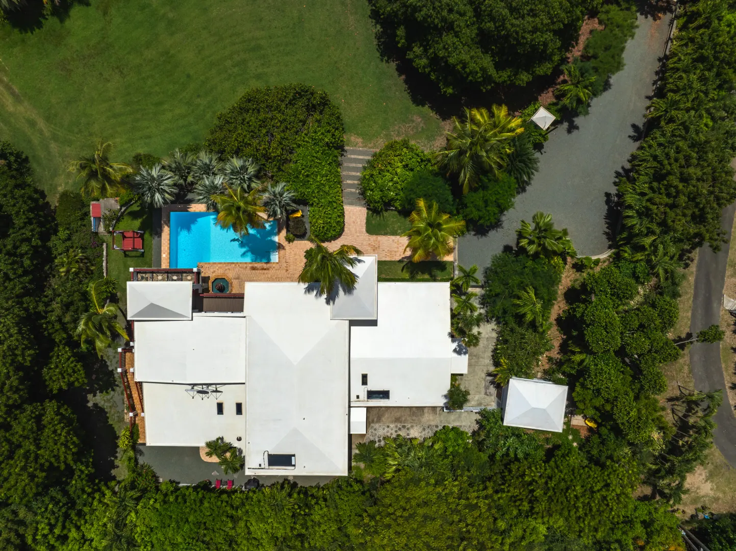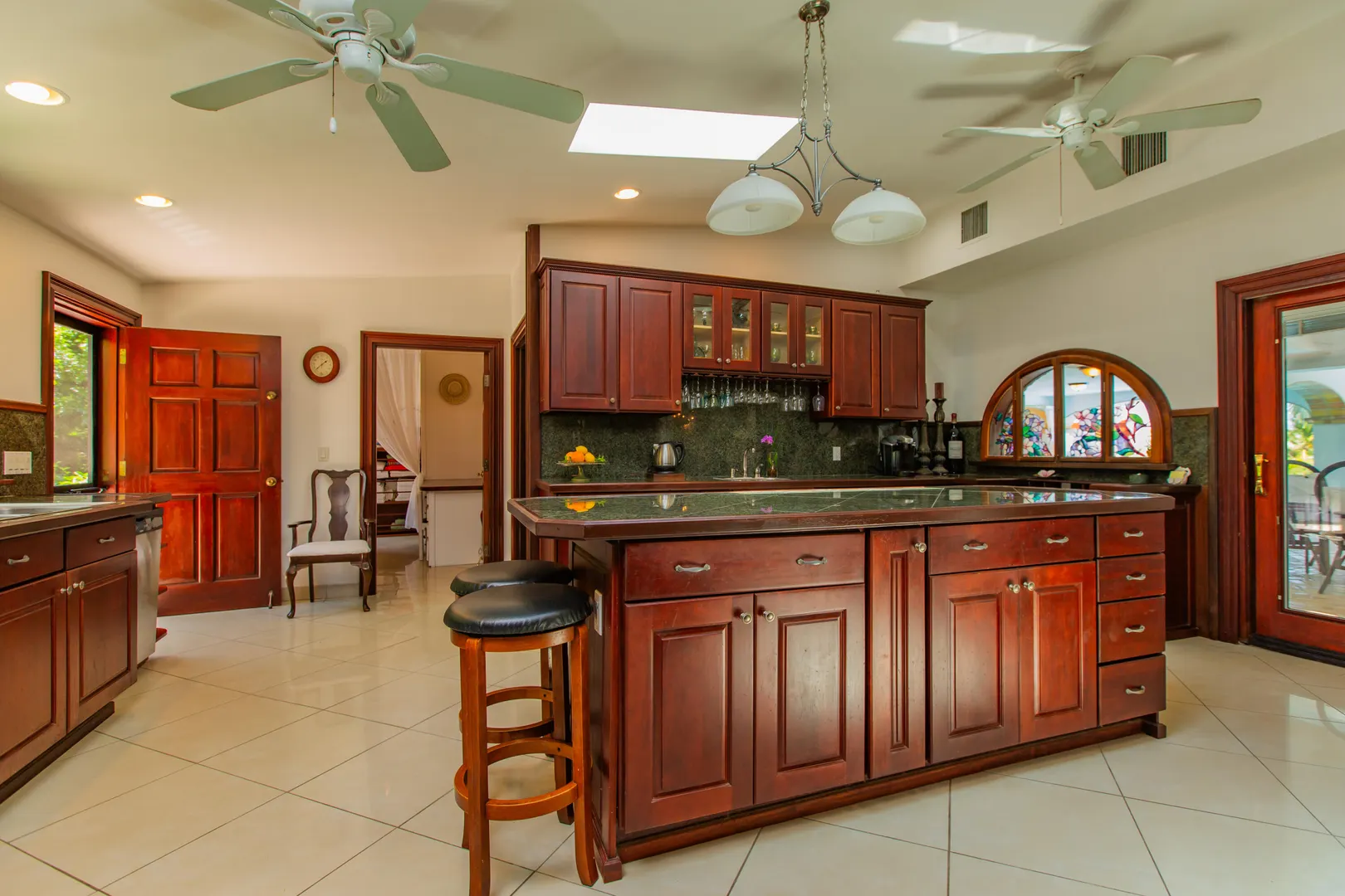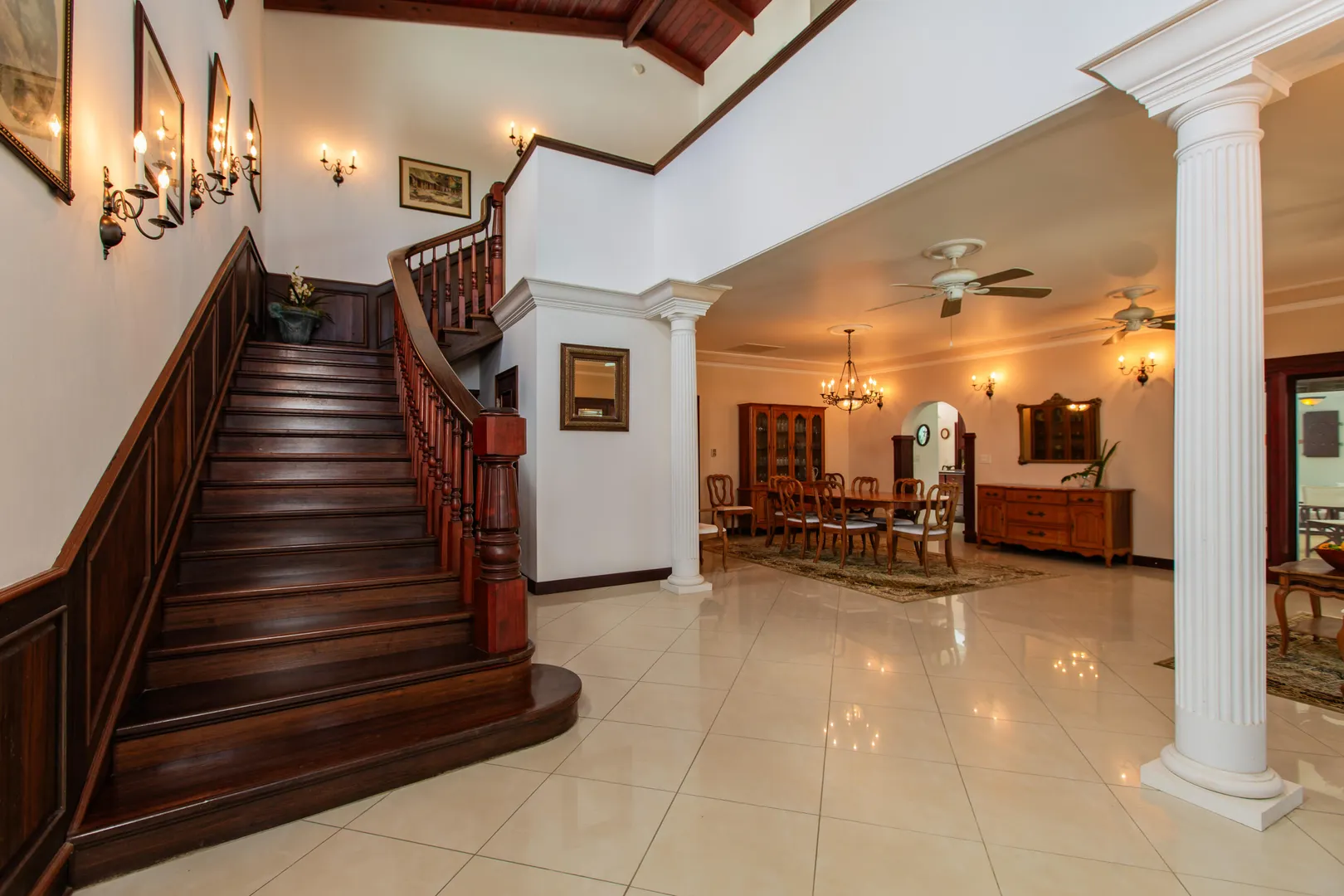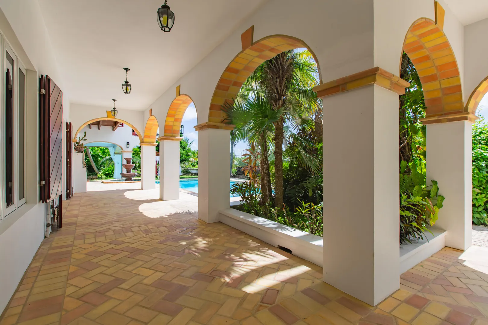 Discover the epitome of Caribbean luxury with this stunning two-story villa on St. Croix's East End. This 5-bedroom, 6.5-bath masterpiece offers an unparalleled living experience, blending opulent comfort with the island's natural beauty. Its spacious accommodations include: Five bedrooms (including a 2/2 apt with separate entrance), each with its own en-suite bathroom, provide comfort and privacy for all guests. Half-bath just off living /dining room, full bath poolside. Main bedroom suite on upper level features a private living area and covered gallery. The gourmet chef's kitchen is fully equipped and designed for culinary enthusiasts, perfect for hosting and entertaining with triple sinks, range, granite countertops, large pantry, custom cabinetry, pass-through window & eat-in