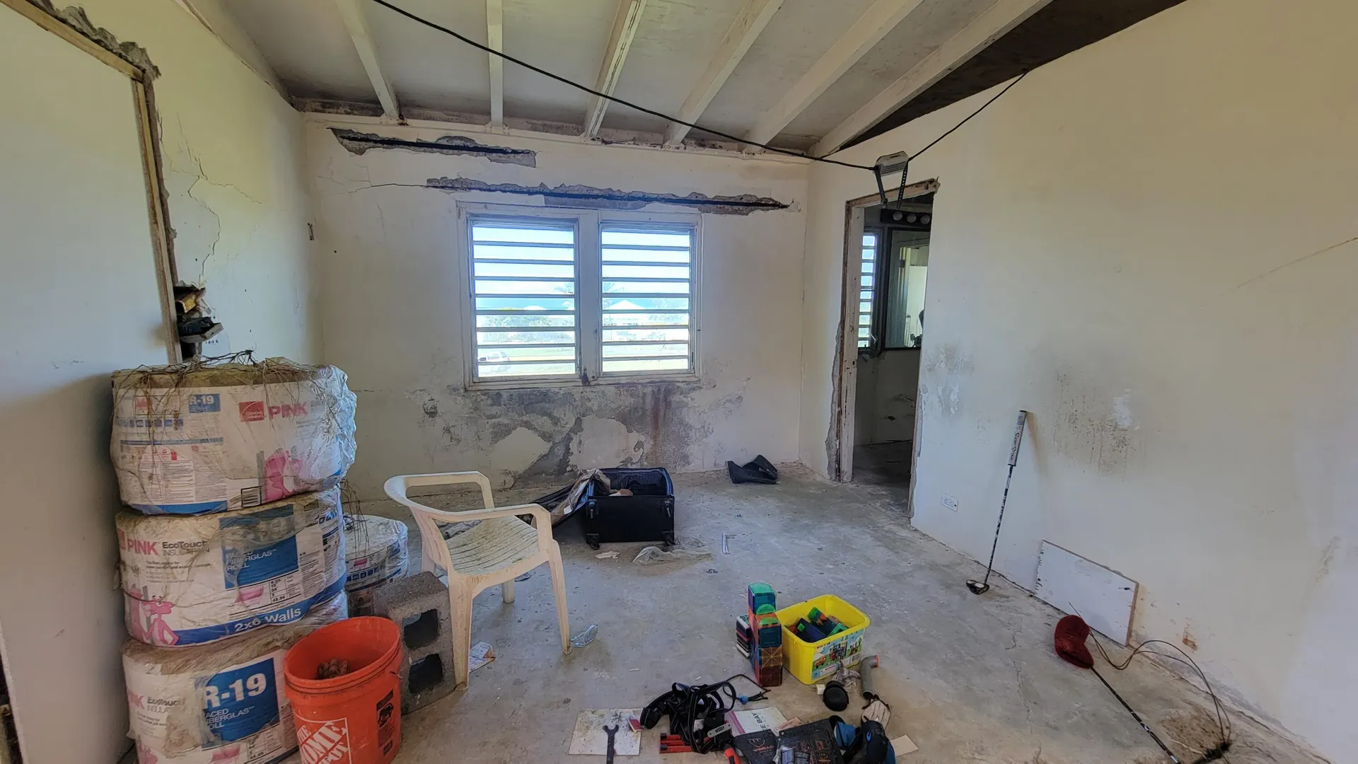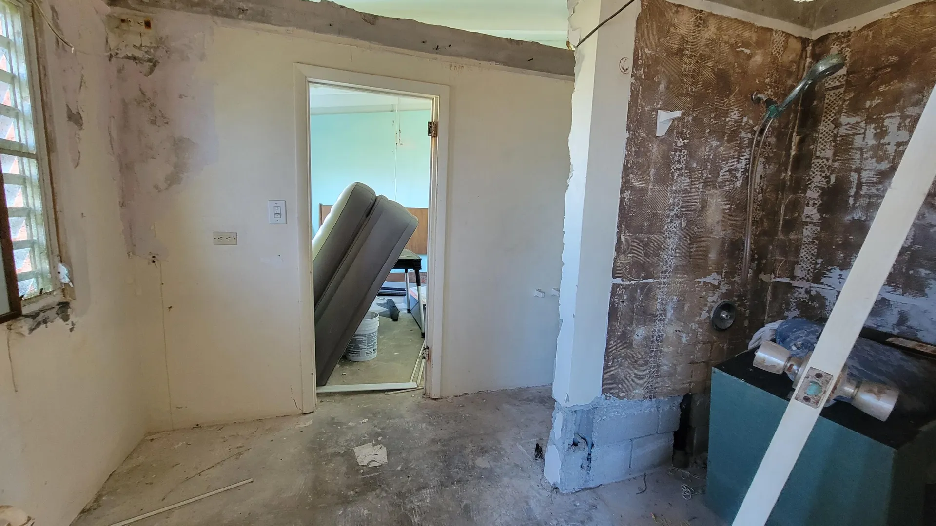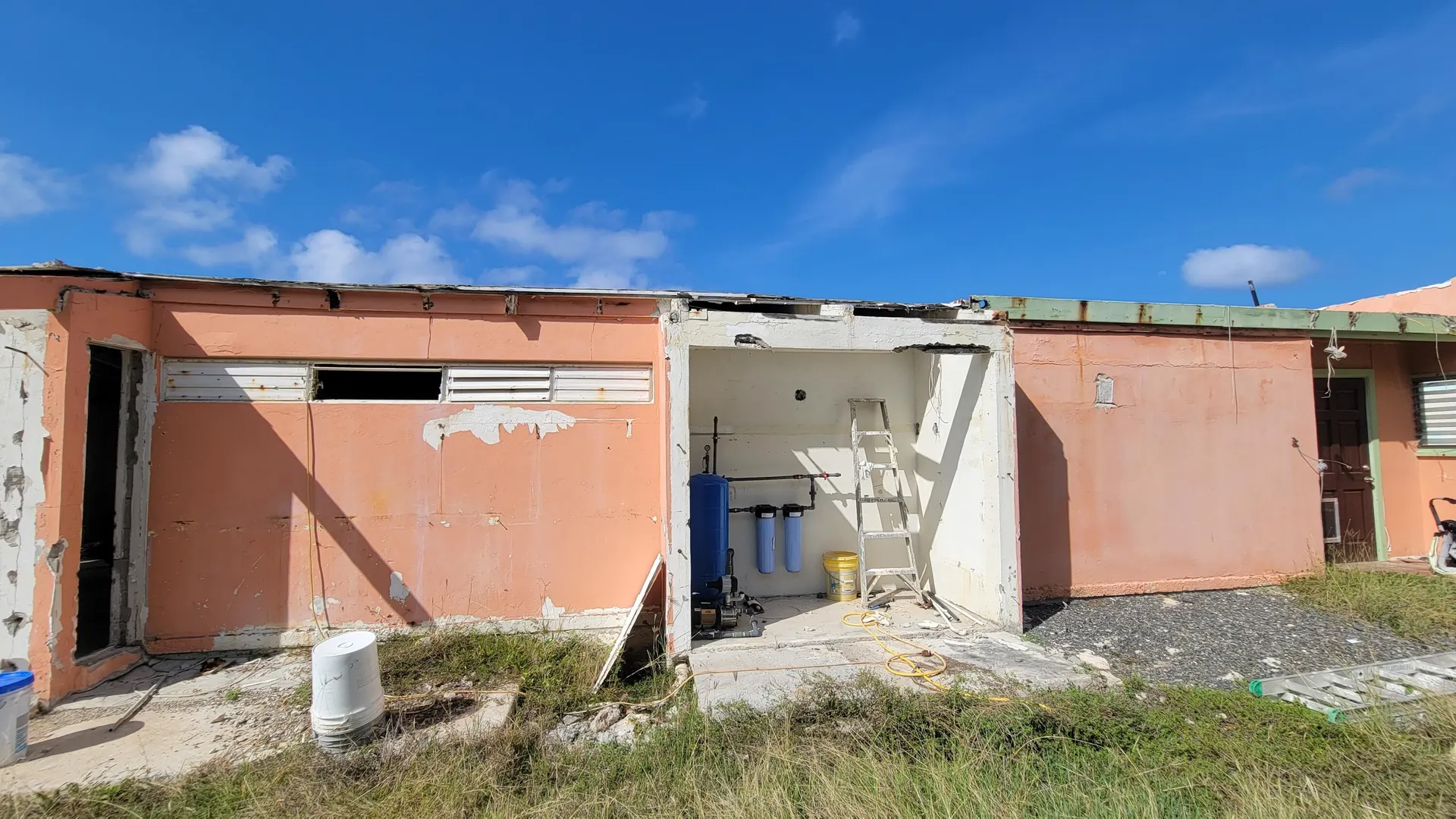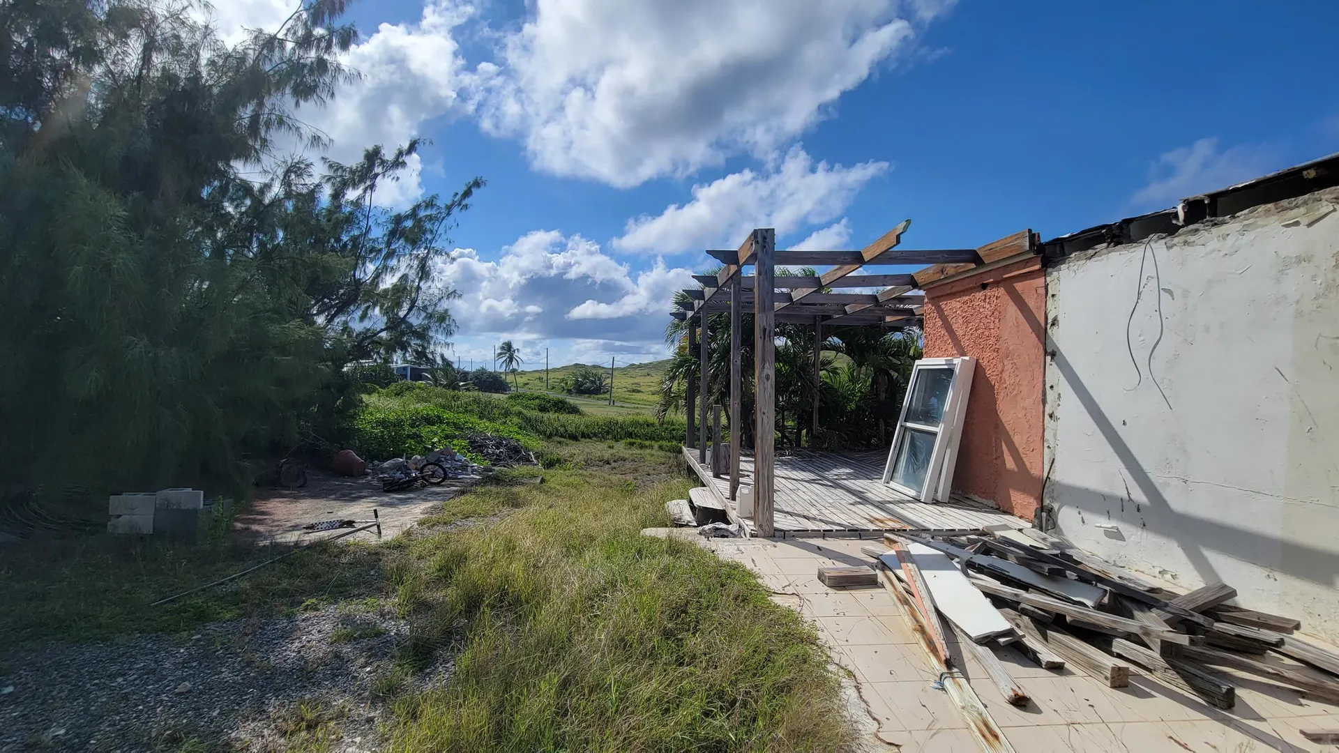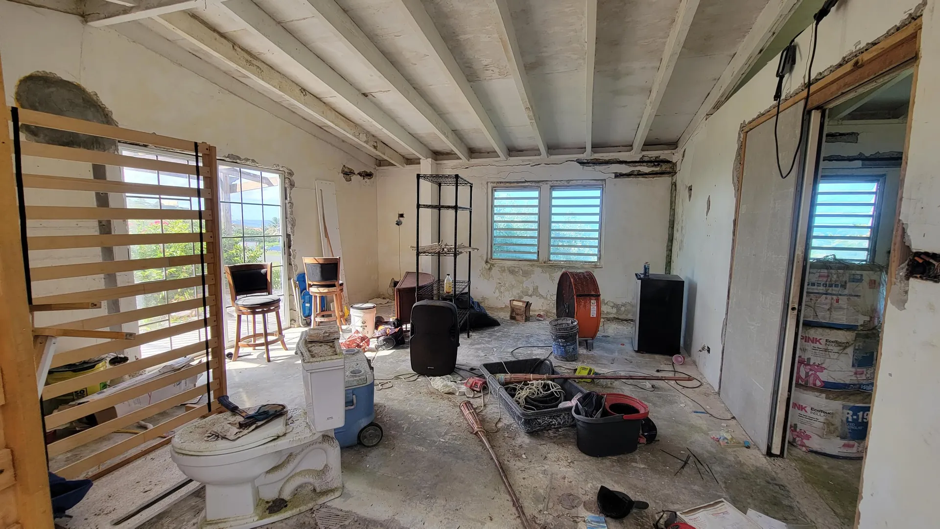 This beloved island home with dramatic views in Judiths Fancy was damaged in recent hurricane. 3 bedrooms, 2.5 baths with poured solid concrete hurricane shelter and 20,000 gallon cistern. Property is sold as-is. One block from the beach, wonderful breezes in a lovely community. A short walk to the nature preserve.