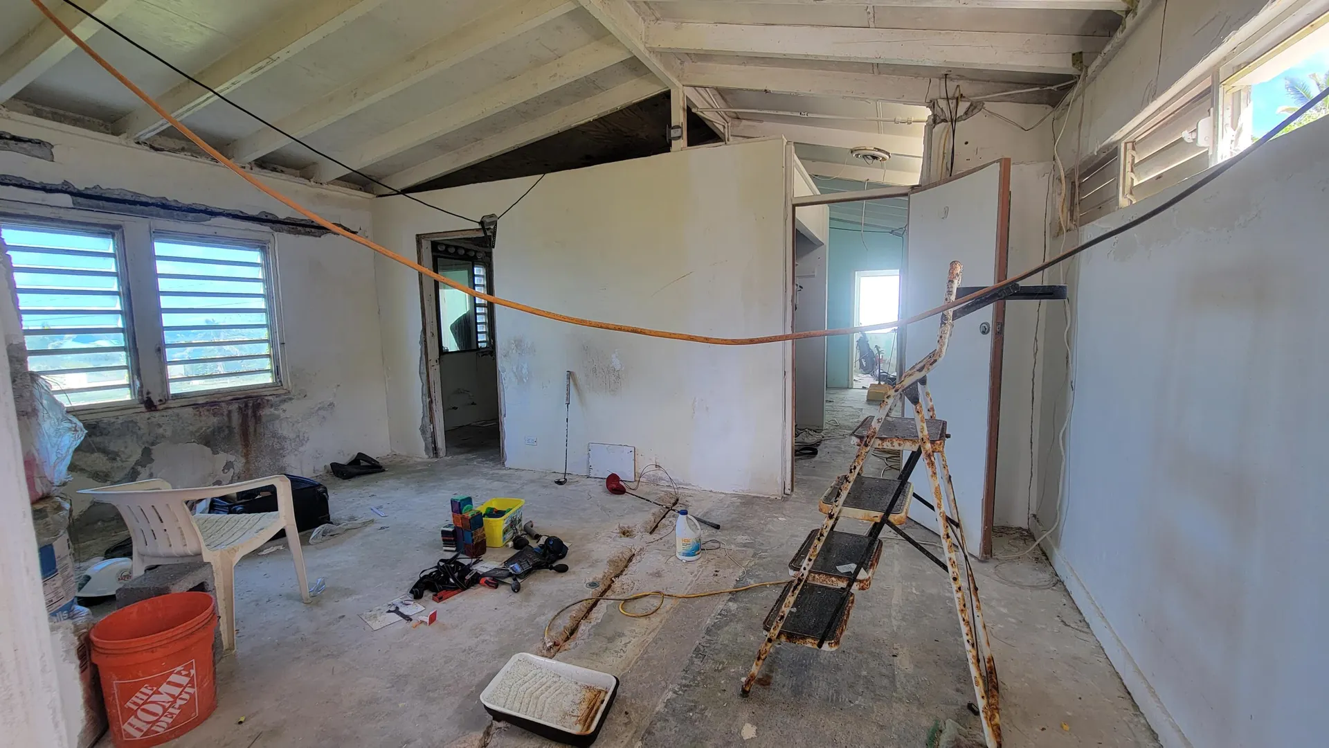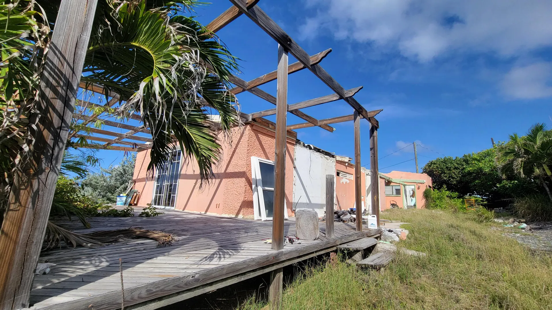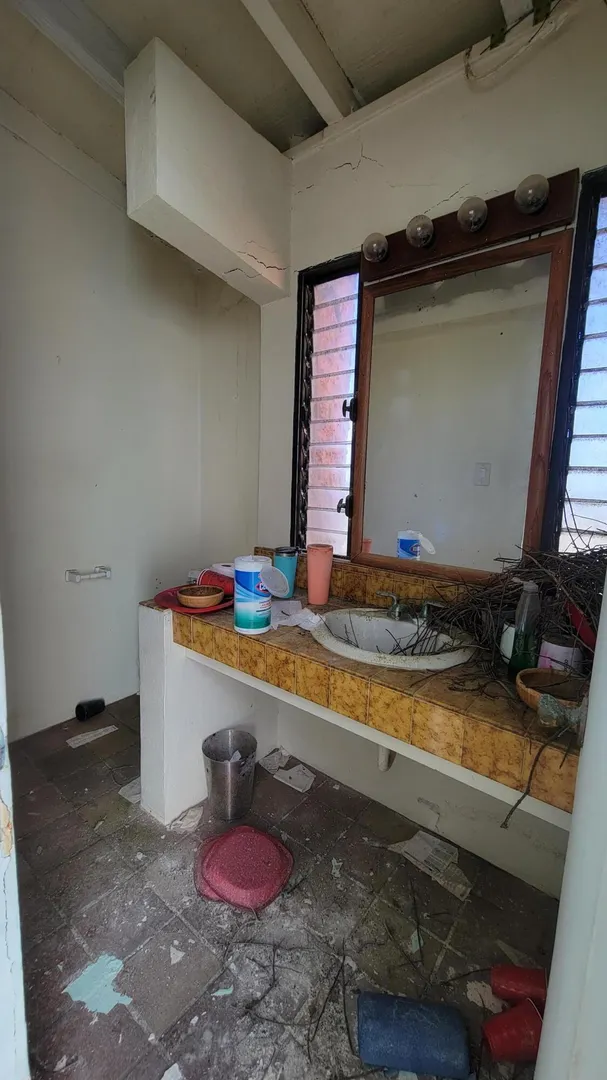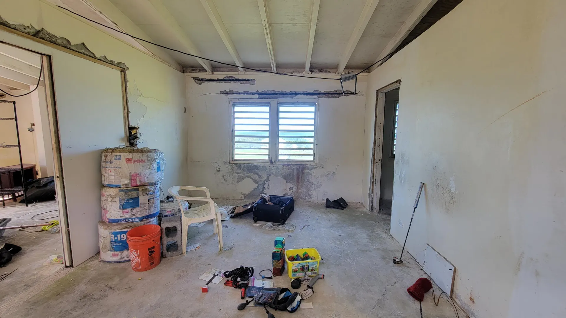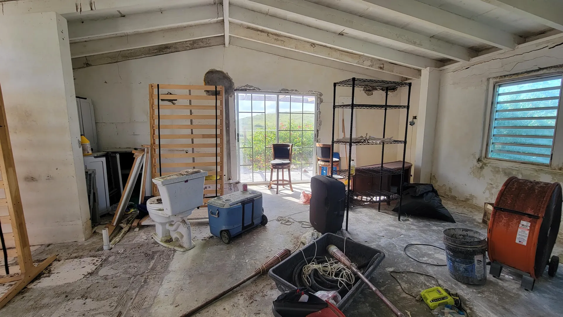 This beloved island home with dramatic views in Judiths Fancy was damaged in recent hurricane. 3 bedrooms, 2.5 baths with poured solid concrete hurricane shelter and 20,000 gallon cistern. Property is sold as-is. One block from the beach, wonderful breezes in a lovely community. A short walk to the nature preserve.