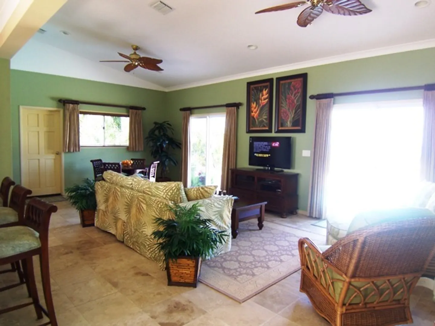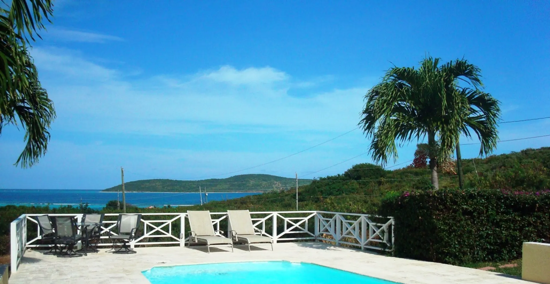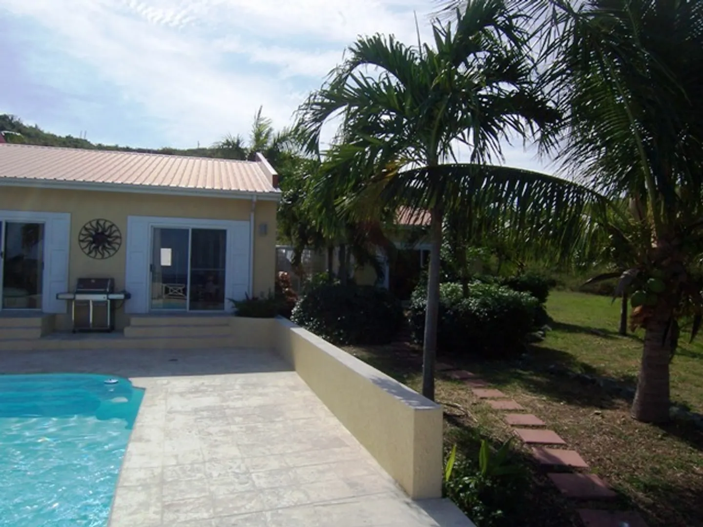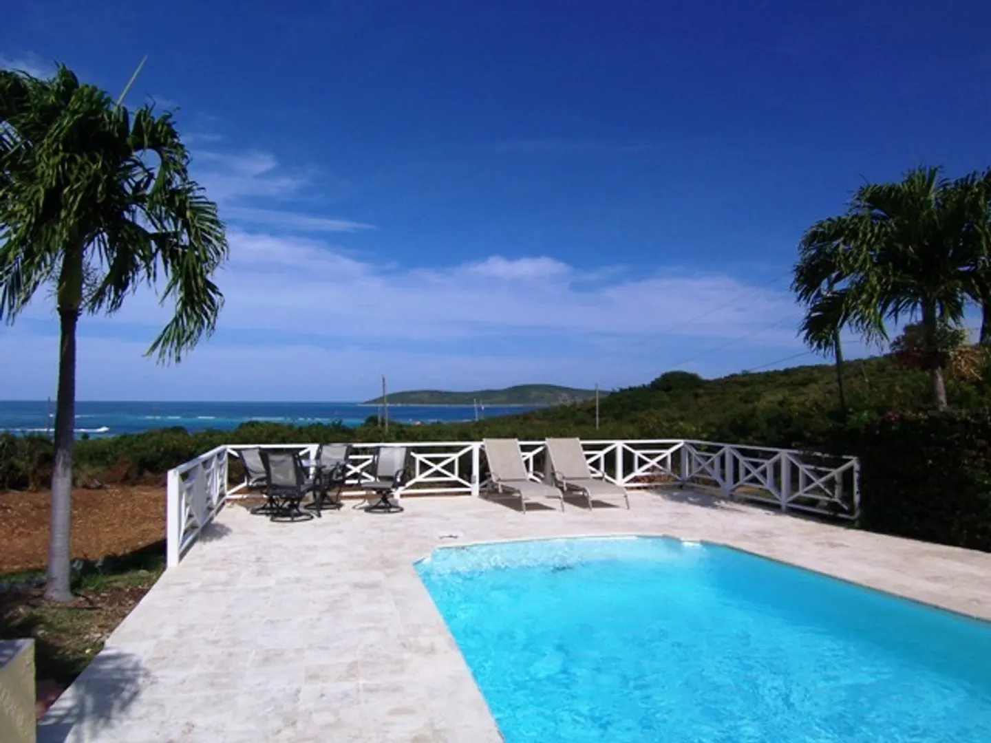 Lovely topical home with a direct view of Buck Island. Built in 2006, with hurricane-force technology, this modern comfortable home has a large granite kitchen ideal for entertaining, two private bedrooms on either side of the great room, that all open out to the great pool and ample deck. This east end, air-conditioned home with an outdoor shower is offered beautifully furnished at a great priceAmenities: Completely furnished Travertine floors Double sinks in both bathrooms Master bedroom has a large private outdoor shower and Jacuzzi tub Each bedroom has a walk in closet approx. 6.5' by 9.3' House fully air-conditioned Recessed lighting Tropical ceiling fans Kitchen appliances are all stainless steel Kitchen has a bar sink Furniture is all new, Patalidis designers Three hit water heaters Stack washer and dryer