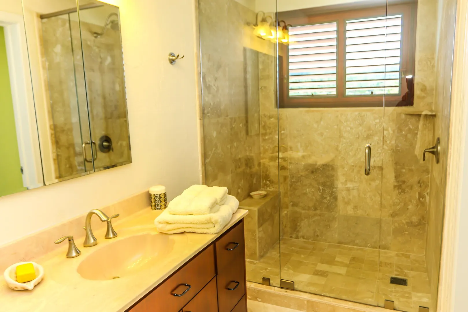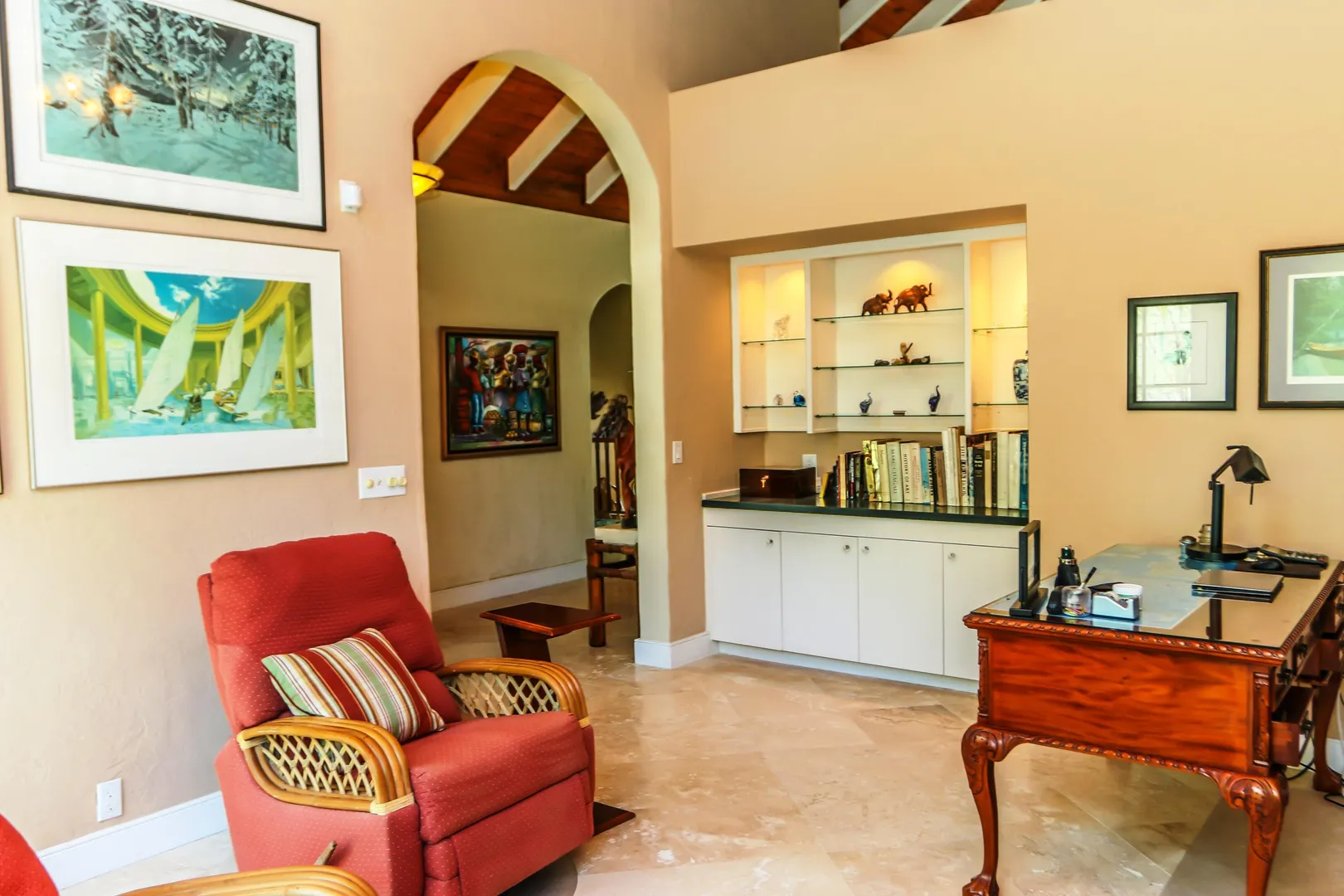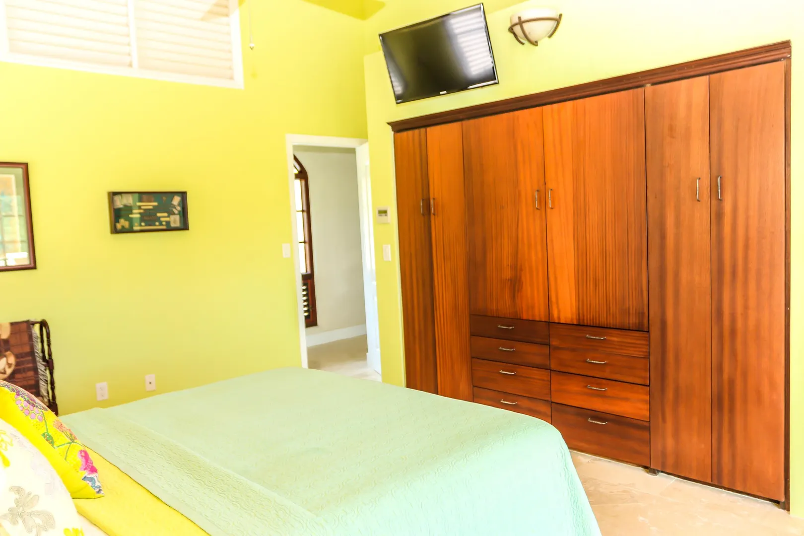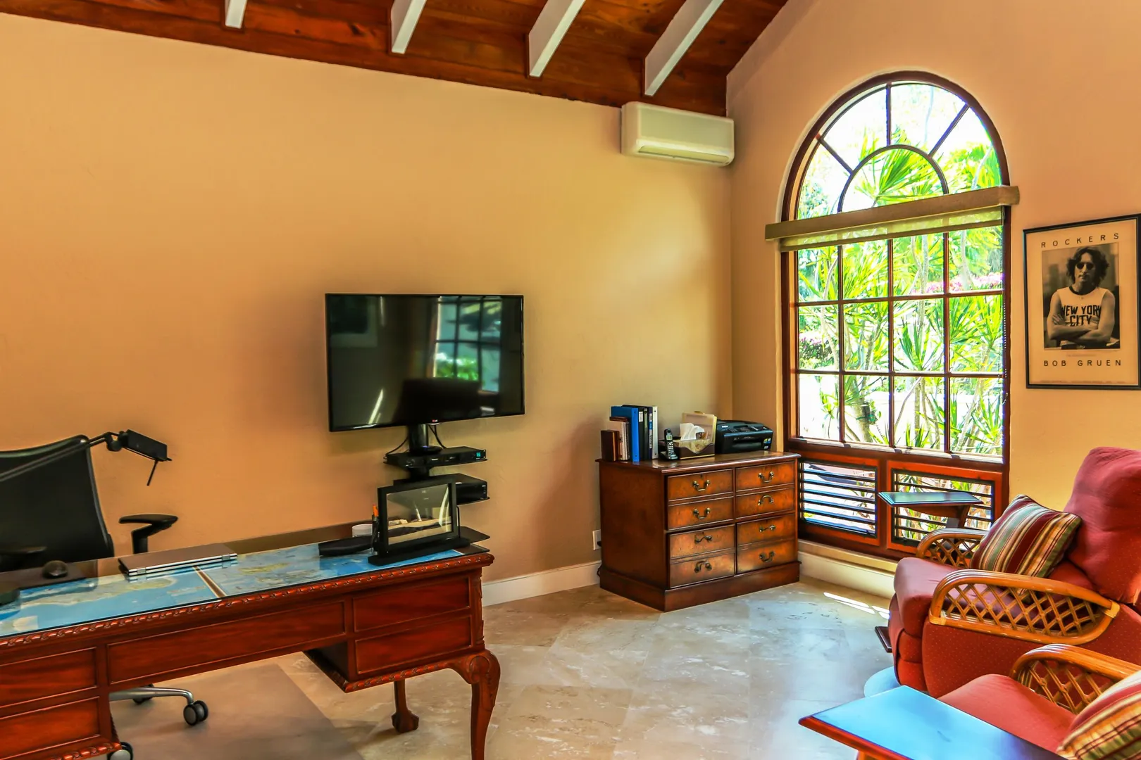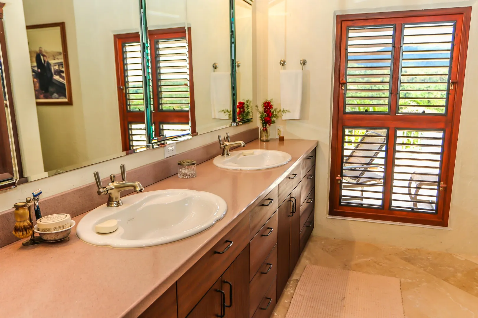 Las Palmas located in gated Carambola on 2.36 tropically landscaped acres is a pristine home encompassing 3 bedrooms ensuite, office, gym & large apartment. Travertine tiles throughout, beautiful outdoor summer kitchen & media area, 36ft pool and spa. Great room has 19 ft cathedral ceilings with gorgeous Mahogany windows, solar powered, well, generator, all next to Robert Trent Jones golf course!Las Palmas is an exquisite home; some of the highlights are: • 2011 installed all new custom mahogany window doors and louvers. The glass is 7/16" thick for hurricane resistance • All 3 bedrooms have custom closet built- ins made locally by Andre McBean of local Mahogany • 2013 travertine tile installed on the diagonal throughout the main house • Gourmet kitchen made by Quality Cabinets of Cherry with granite counter tops, sub-zero refrigerator and freezer and all stainless steel appliances • Outdoor area is as approximately 4,000 sq. feet, and done in coral stone tile; the deck, summer kitchen, media area, pool and apartment were completed in 2010 • At the pool deck there is a full summer kitchen with grill, sinks and cooler and a TV retractable screen painted by artist Marie Graci. • Full bath with shower at pool level • Apartment at lowest level is approximately 800 sq. ft. one bedroom apartment with open concept kitchen, 3 fans, A/C, washer/dryer and is also connected to Solar/backup system • 2010 Solar system phase I was completed • 2014 Solar Phase II was completed producing 15 KW approximately 2000 KW per month, a net metering system, it has battery backup with a generator to recharge the batteries if needed. • 2015 new septic system installed • The water system contains 2 cisterns. One cistern collects rain water and holds approximately 30,000 gallons. The smaller cistern holds 15,000 gallons. The water in the smaller cistern holds water that comes from a well on the property after it has gone through a reverse osmosis system. It is an automatic system that creates RO water on an as needed basis. • The house uses a recirculation system that avoids wasting water while waiting for hot water. • There is abundant spaces at the lower level of the home, providing a gym, storage, a workshop and a garage. • Standing seam metal roof • Alarm system • Lower level has a separate gated entry for apartment privacy and or service providers • Community pool, tennis courts and Robert Trent Jones Championship golf course all in close proximity • The property is beautifully landscaped with drip irrigation and there are numerous native fruit trees including bananas, lime, coconut, sour sop, pineapple, avocado and papaya