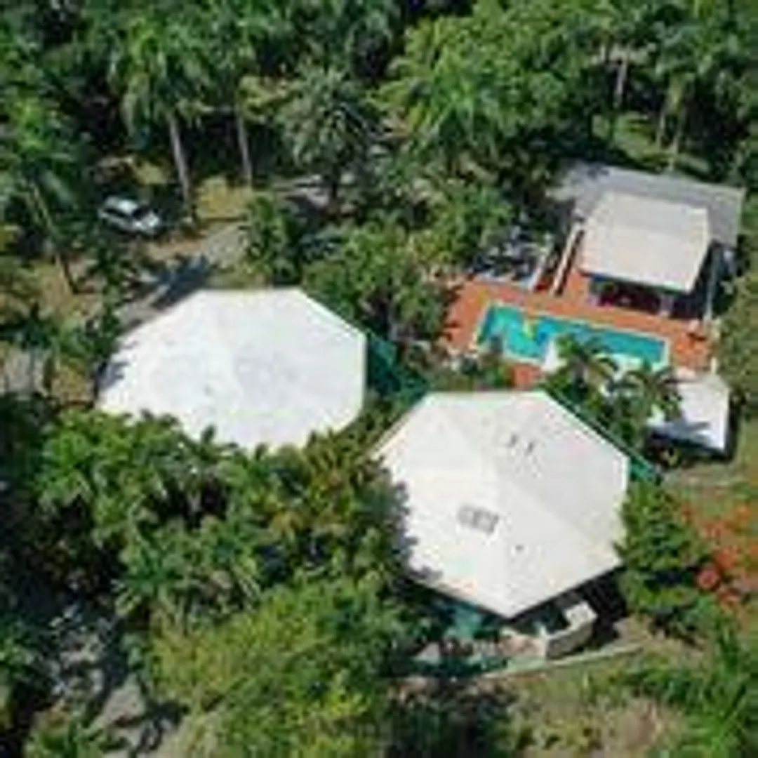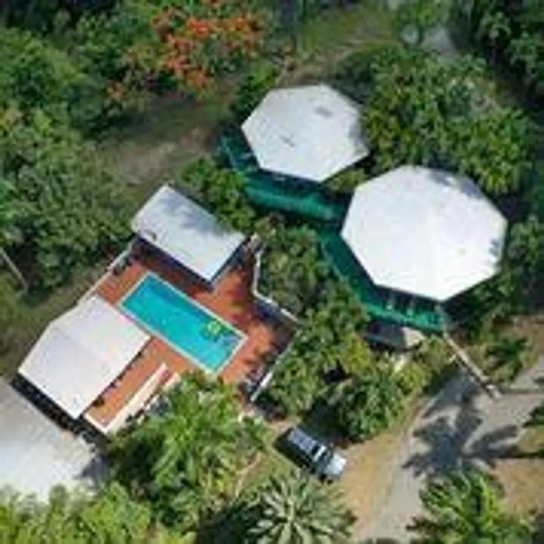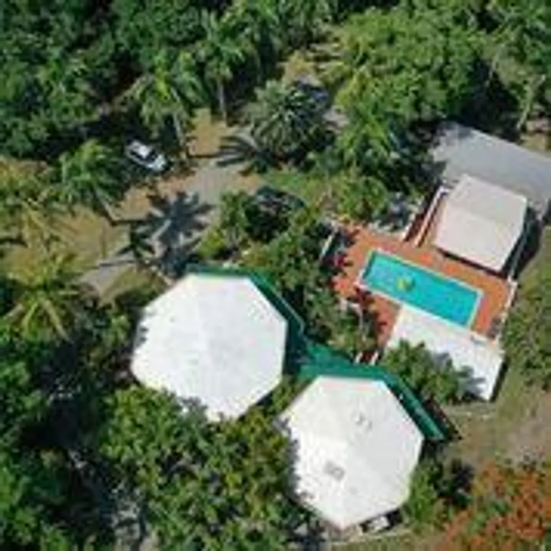 Beautiful palms line the concrete driveway that leads you over a stream to this Deltec two pod home. One pod is the main living space with living room , kitchen, and laundry. The second pod features a master suite, Jack & Jill style bedroom. upstairs, and studio down. The fifth bedroom is located in the cabana on the lower level. Enjoy entertaining pool side with the covered patio and outdoor kitchen and plenty of lounging space for your guests. This quality engineered hurricane resistant home is nestled on over two acres of lush tropical grounds that offer privacy and a serene setting. Other features include a four car garage with plenty of room for a workshop, Dewalt generator, fruit trees, UV water purification system, and a well. For more info visit: https://www.deltechomes.c