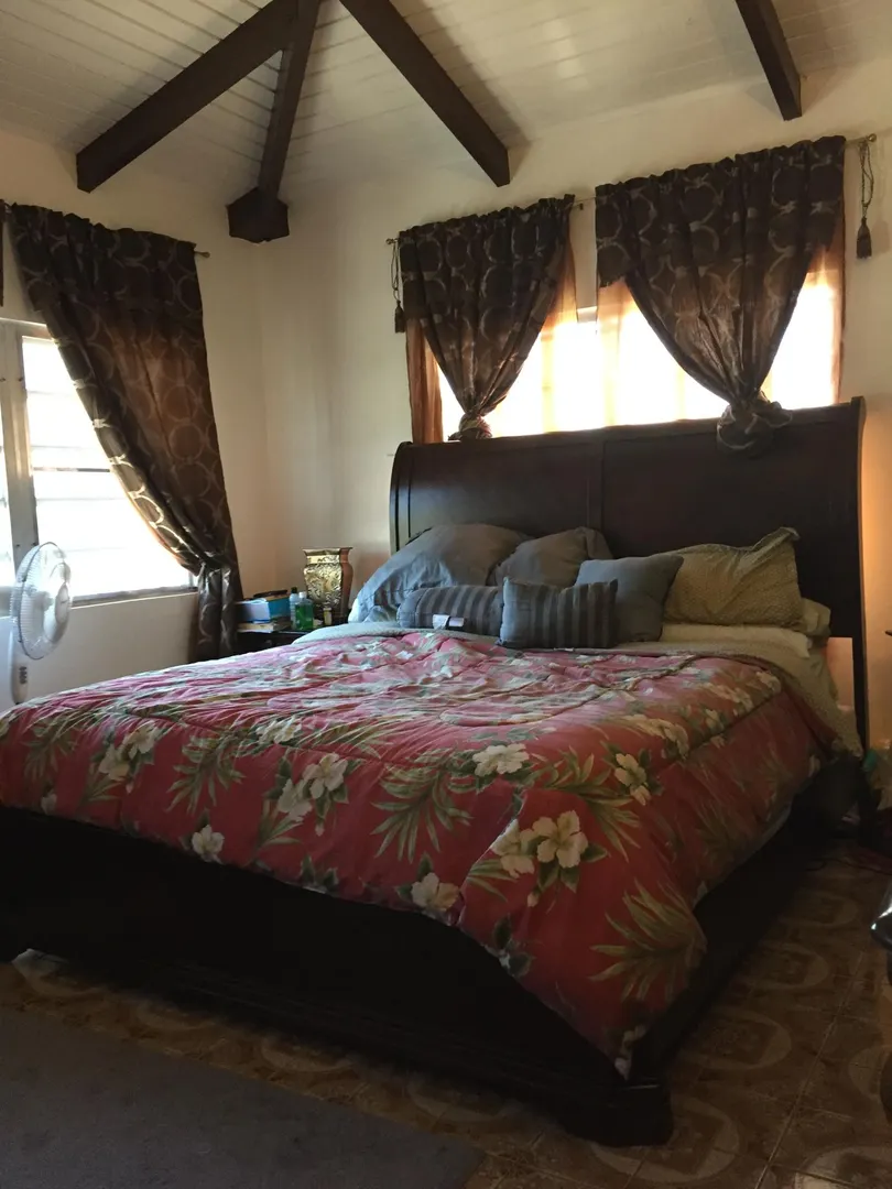 Well kept and spacious 3 bedroom 2 bath home conveniently located close to Christiansted and Sunny Isle. Large master bedroom with walk in closet and bath. Enjoy the ocean view from the balcony off the Master bedroom. High ceilings throughout the house. Lots of storage and open space.Laundry room, covered gallery, Storage Room/ Work shop. Space for adding an apartment downstairs.