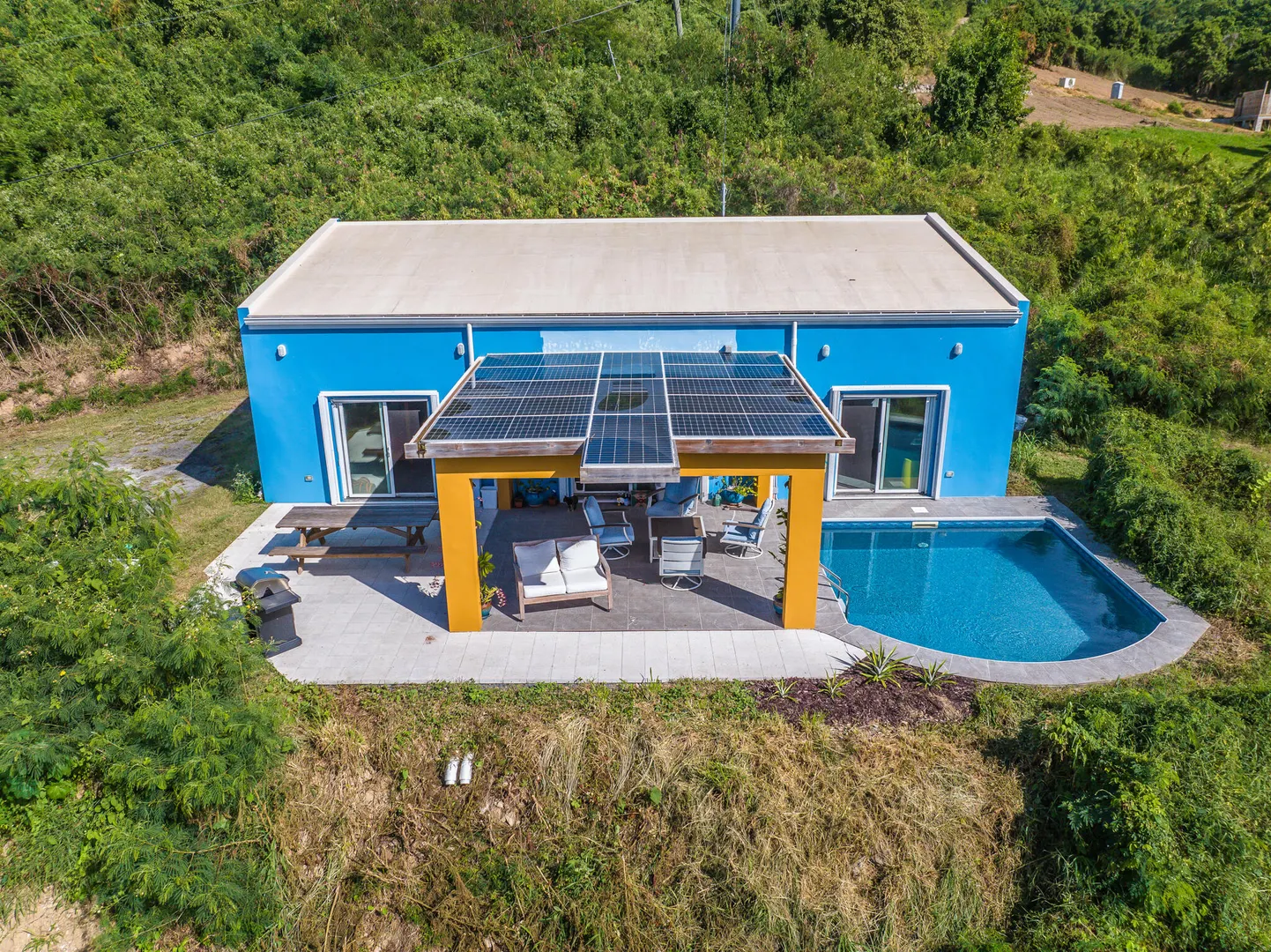 Gorgeous newly constructed 2-bedroom, 2-bathroom solar powered home on 2.45 acres in the picturesque west end of St. Croix, where modern design meets eco-conscious living. Situated near Butler Bay, this property offers breathtaking views, innovative features, and a seamless blend of luxury and sustainability, making it the perfect retreat, amazing investment or primary residence. Every detail of this home has been designed with comfort and style in mind. The open-concept layout creates a bright and inviting atmosphere of natural light with expansive windows framing stunning views of the Caribbean Sea and lush tropical surroundings. The living area flows effortlessly into the kitchen and dining space, perfect for relaxing after a day of island exploration.This home is a showcase of sustainable living, featuring a solar-powered fresh-water pool with an oxygen pump system. The pool is strategically positioned to offer uninterrupted views of the Carribbean Sea, providing the perfect backdrop for a morning swim or evening relaxation under the stars. The patio is a great space for entertaining, grilling and complete outdoor living.