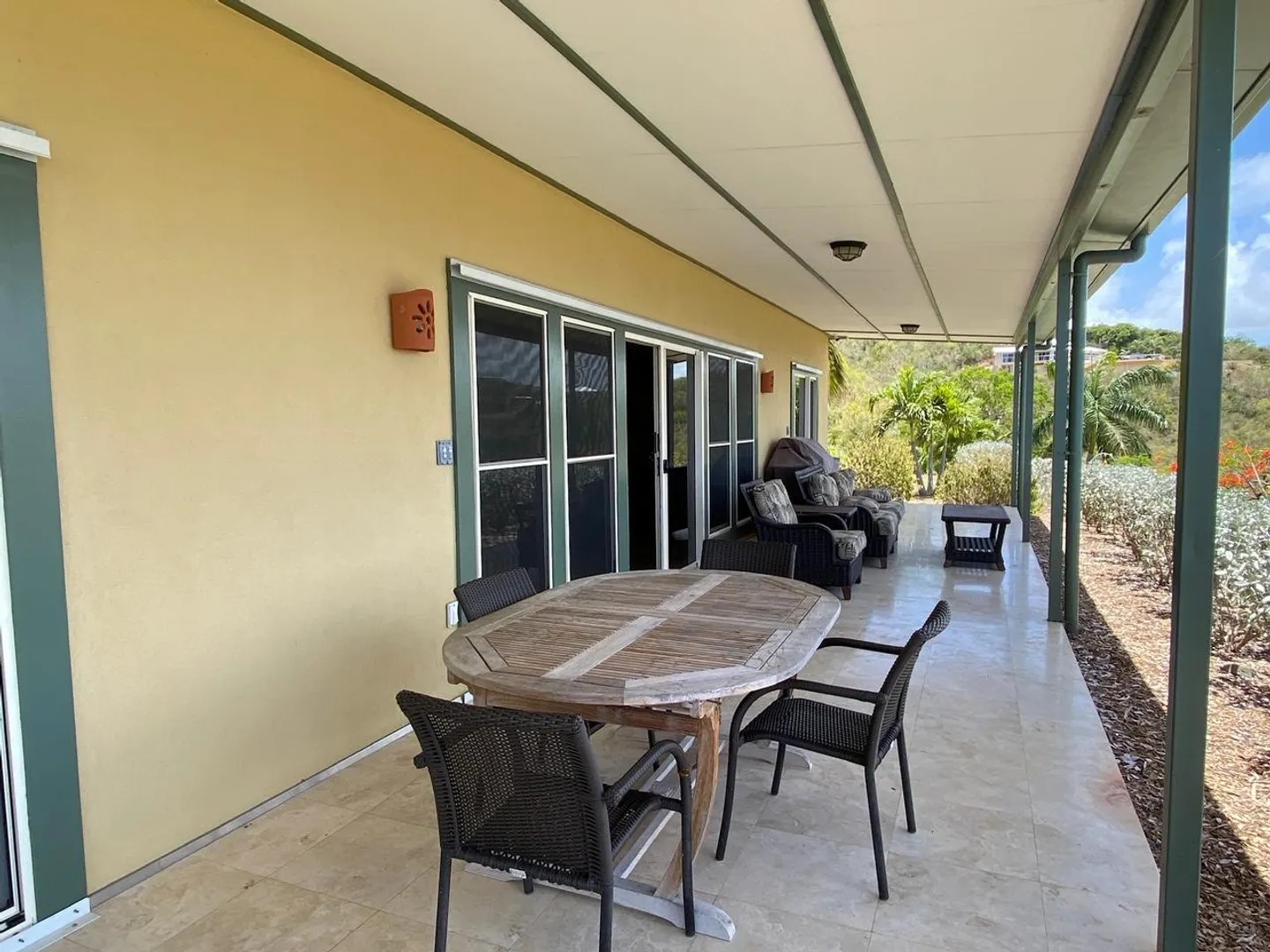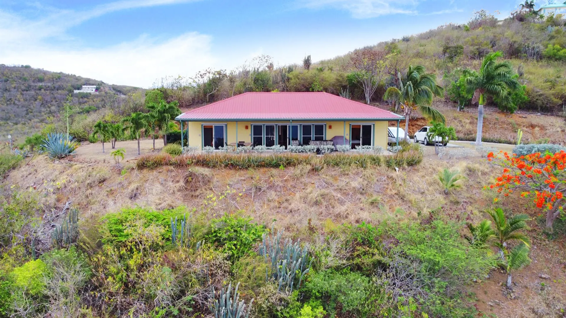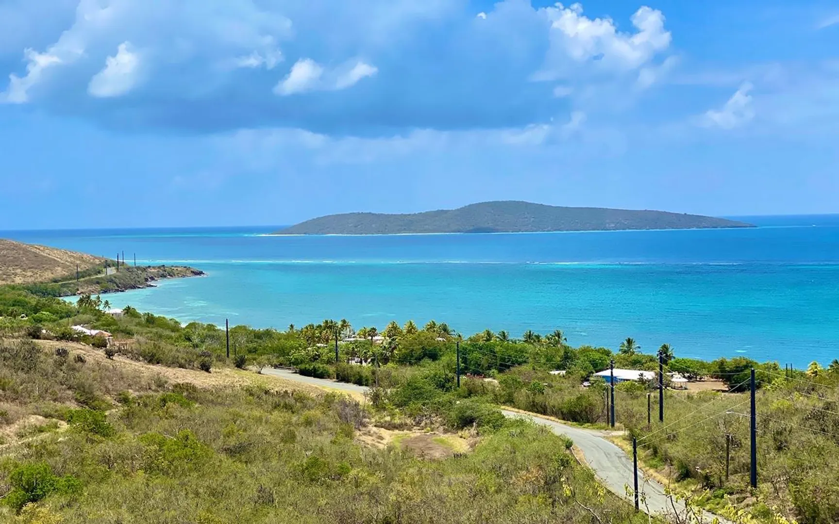 Massive views from this gorgeous East End hilltop home w/ 2 en-suite bedrooms each with front gallery access & Buck Island views, the master has large walk-in closet, 3 zone central A/C, open kitchen, large living & dining area. This home is solidly constructed & designed to withstand hurricane force winds, laundry room, travertine tile floors, mechanical closet, full house propane generator, paved driveway, extra large covered gallery with views East to the Yacht Club, Buck Island and beyond!