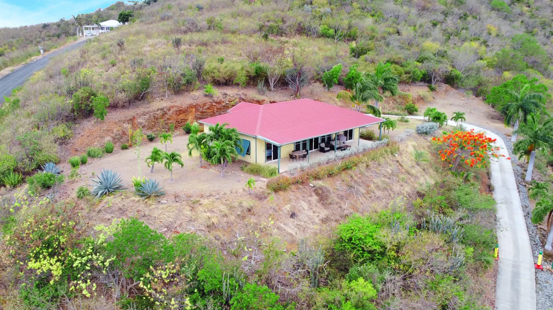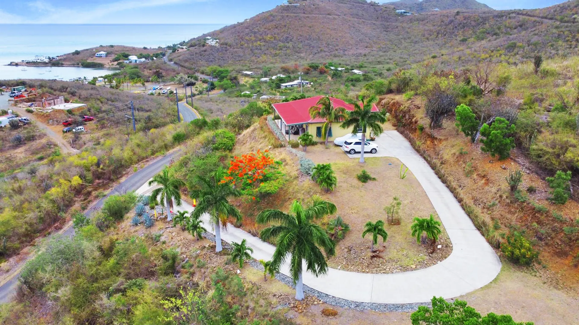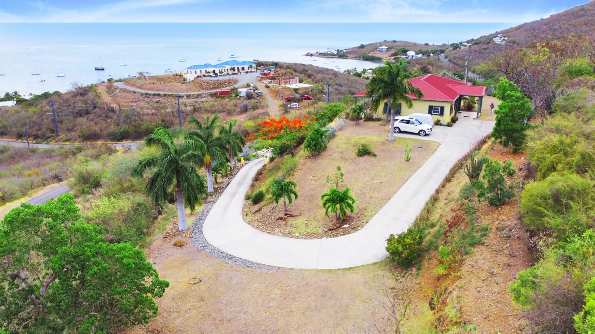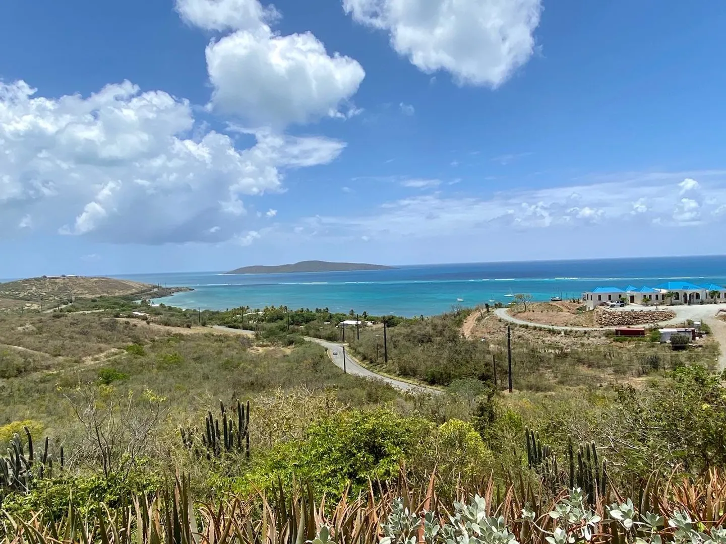Massive views from this gorgeous East End hilltop home w/ 2 en-suite bedrooms each with front gallery access & Buck Island views, the master has large walk-in closet, 3 zone central A/C, open kitchen, large living & dining area. This home is solidly constructed & designed to withstand hurricane force winds, laundry room, travertine tile floors, mechanical closet, full house propane generator, paved driveway, extra large covered gallery with views East to the Yacht Club, Buck Island and beyond!
