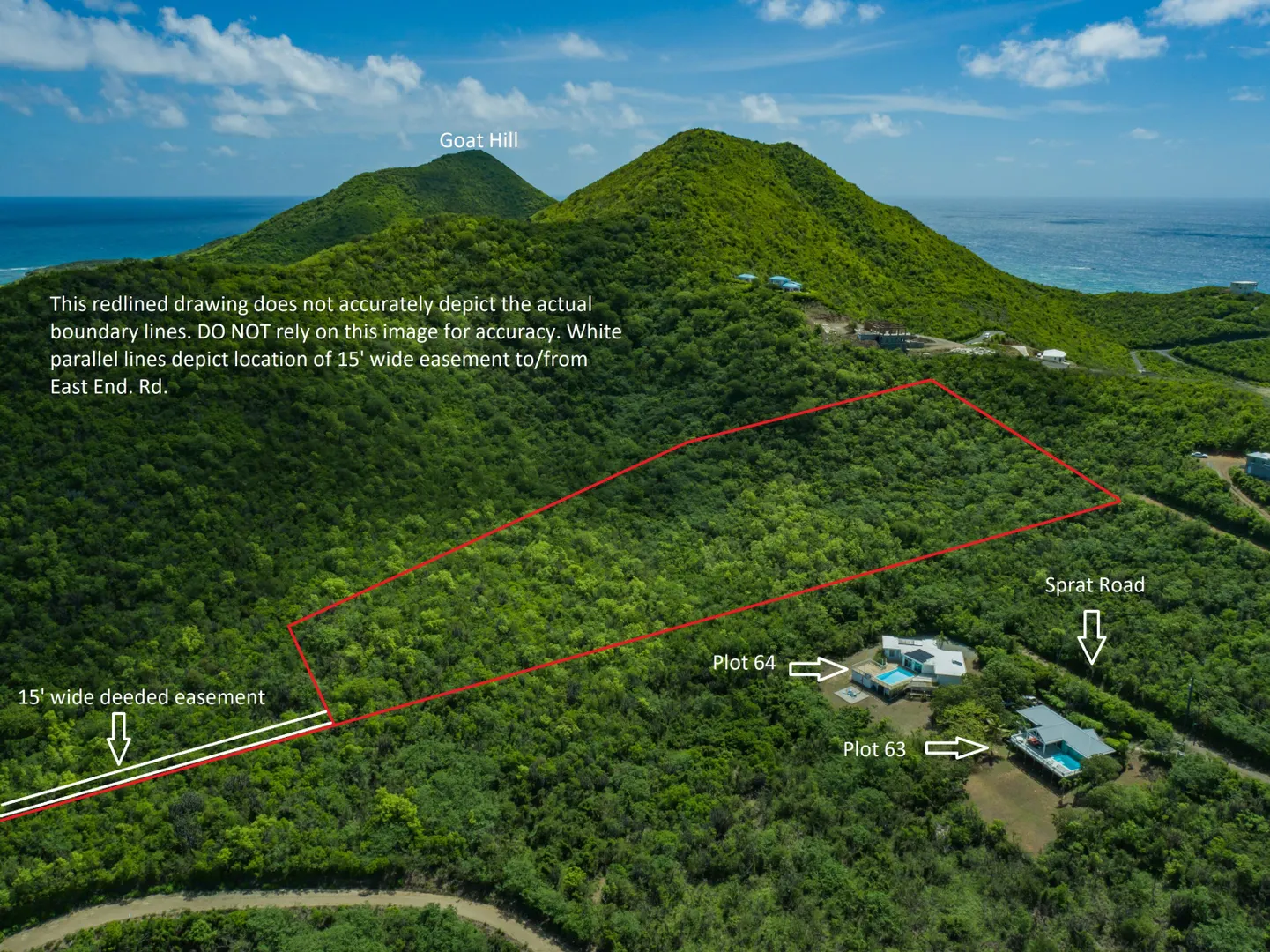 Large 7 acre parcel located on the East end near Smugglers Cove & Cramer's Park with beautiful north, west and south views including Buck Island and South Shore. Perfect for a large and private estate, or further subdivide into multiple parcels, keeping a portion for your own use, while selling the remainder to recoup investment. Access to the property is by a 15 foot wide easement running along the western boundary of the neighboring parcel to the north (Rem. Long Pt./Cotton Garden) from East End Rd.