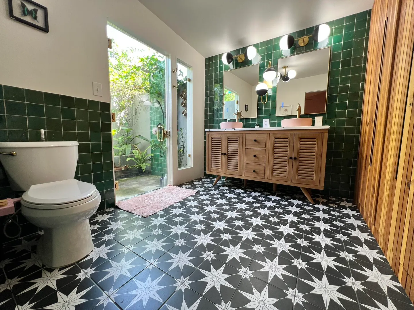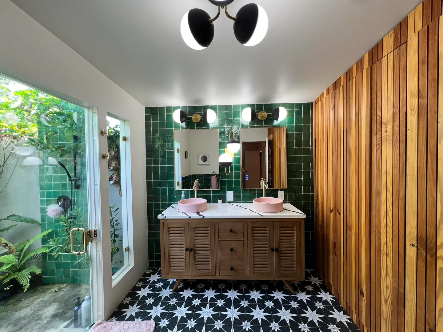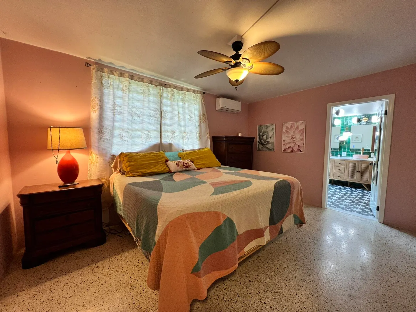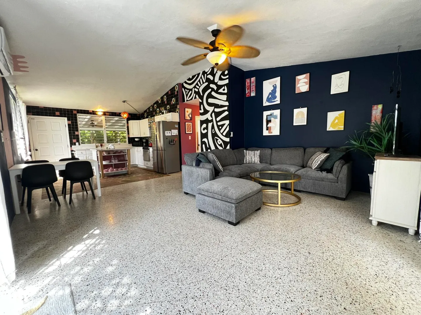 Discover this hip and funky home, where eclectic design meets modern comfort. Featuring three bedrooms and two bathrooms, including a newly renovated primary bathroom with double sinks and an outdoor shower, this home is a true gem. The open-concept, remodeled kitchen enhances the living space, while the lush, tropical landscaping offers a fenced yard and a refreshing pool. Embrace year-round Caribbean living in this vibrant and stylish retreat.