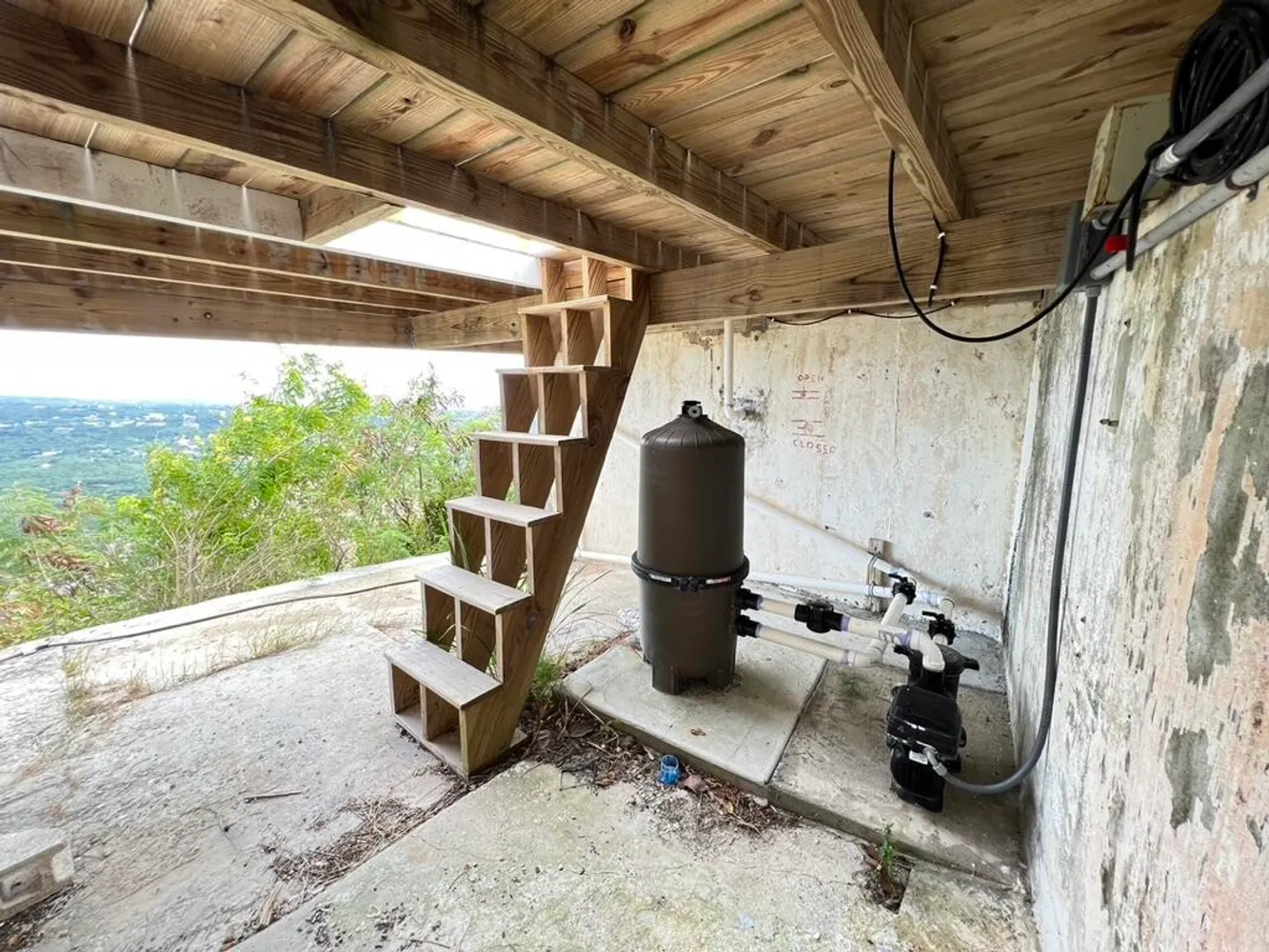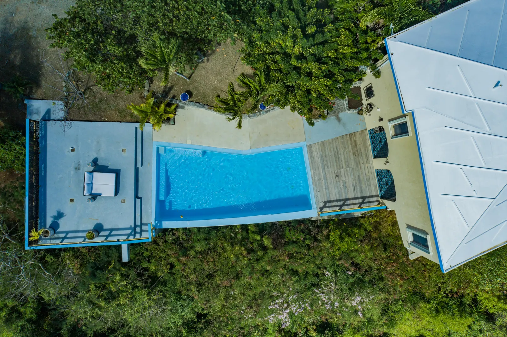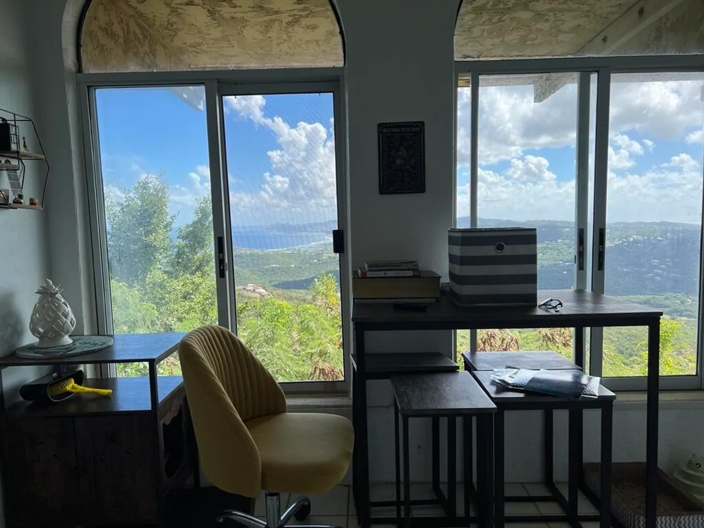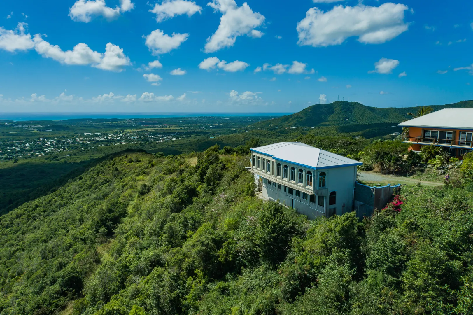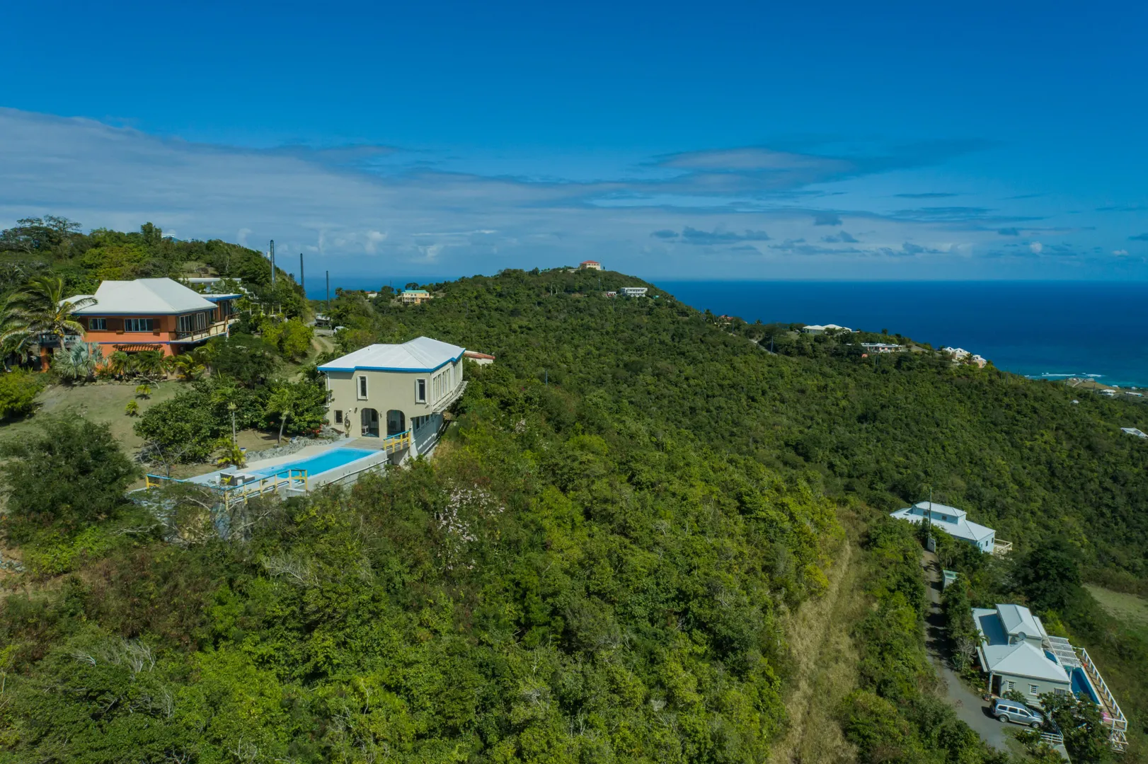 INCREDIBLE SWEEPING VIEW! The vast panoramic view from north shore to south shore at 820' above sea level will take your breath away & make you feel that you are at the very top of the island! Upstairs is 2/2 main house, with 1/1 apartment downstairs. There is a huge pool, large pool deck with newly built gazebo for lounging, & even a garage. With views of so much of St. Croix, you will be mesmerized by the ever changing scene. The breeze is so constant that there is no need for AC! TV is currently streamed & projected onto a 4.5' x 7.5' roll-down screen in the great room. The downstairs 1/1 apartment is currently rented at $2,000 per month. with separate parking & entrance. The pool has recently been resealed & painted, new tile border installed, & hydrostatic valves replaced.