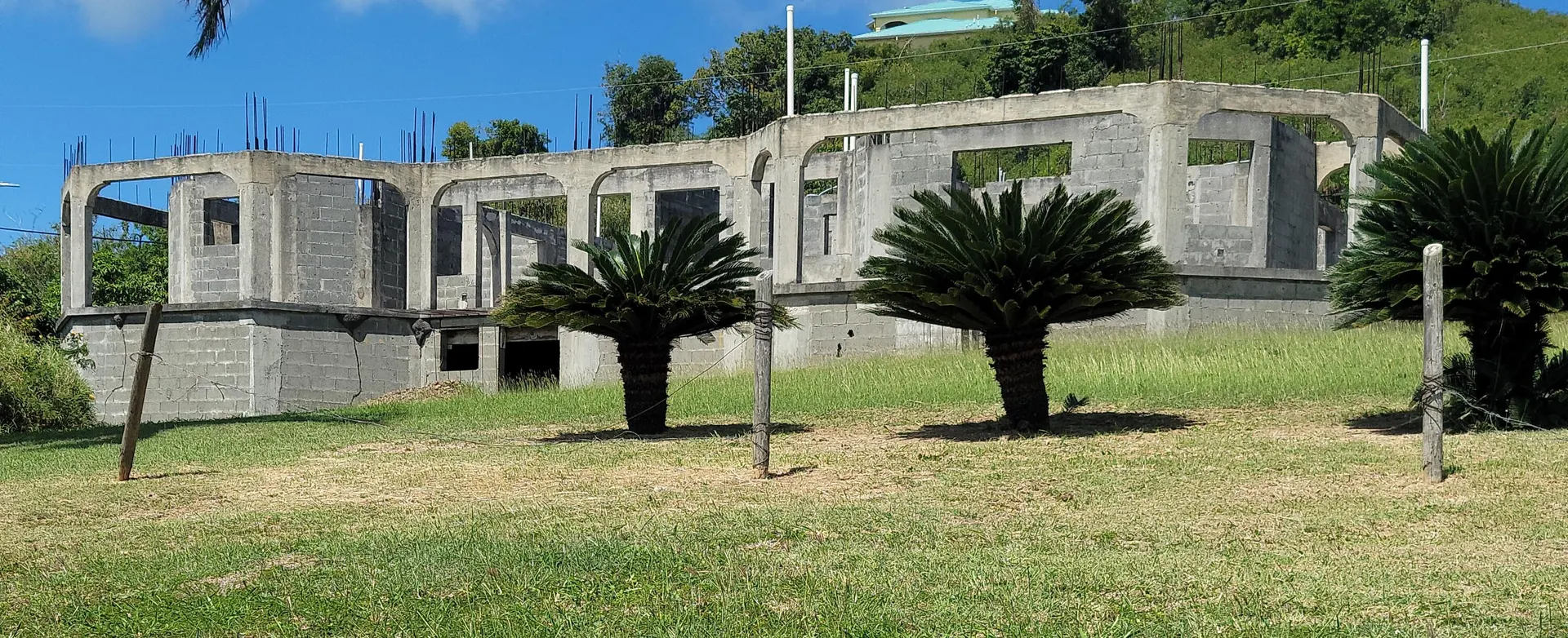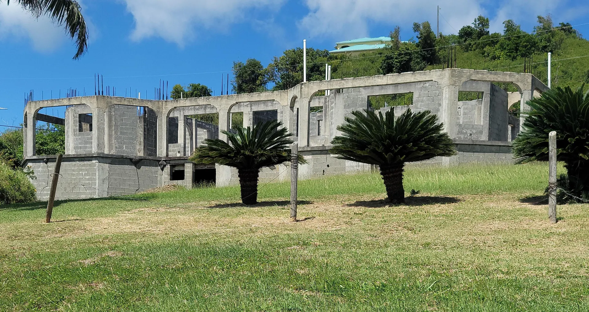Take advantage of this beautiful three Bedrooms two bathrooms incomplete house. Situated on a corner lot, with beautiful sea view, well maintained landscaping with lots of fruits. This home is designed for a second floor, the first floor is partially completed basement has lots of space for additional guest room. Add your own finishing touches to this incomplete structure and make it your dream home. Great property, lots of potential. Many lovely properties near by. Plans for the property is available, might need updating.