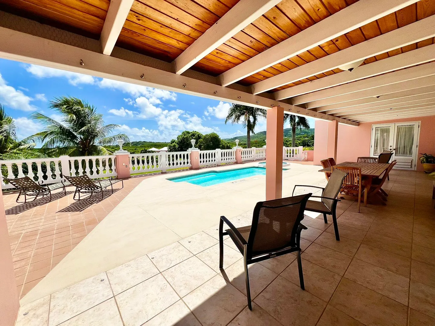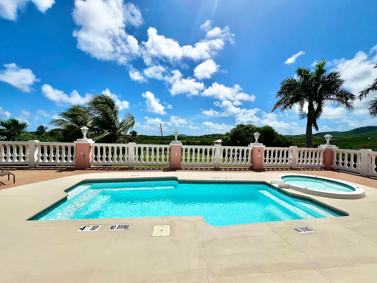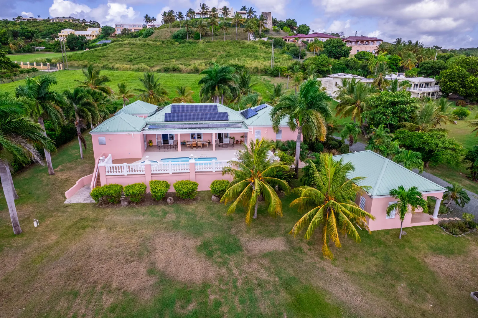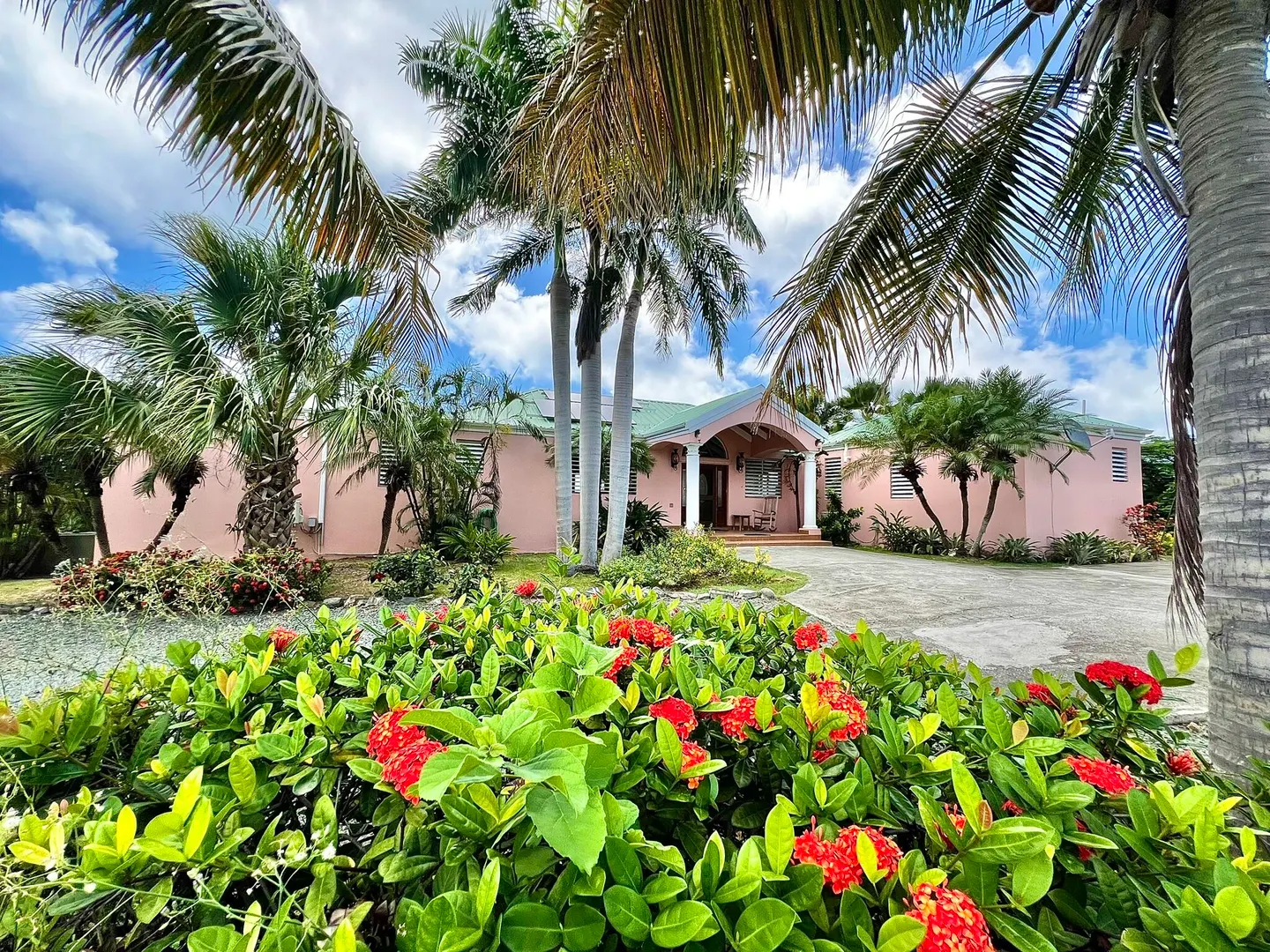 ''Crucian Palms''--your ideal island retreat! Conveniently located near Green Cay Marina, Tamarind Resort and a beautiful sandy beach, this stunning, one-level villa with solar has 4 bedrooms and 4.5 baths in the main house with a swimming pool plus a detached one bedroom, one bath cottage. The main bedroom includes a private patio, and the spacious great room features vaulted ceilings. Enjoy the open kitchen and dining area that flows out to a covered dining gallery sitting poolside. Additional amenities include a separate 1-bedroom, 1-bath guest apartment with private parking, a functioning well for toilets and irrigation, solar with net metering, a 30KW full-house generator, an outdoor shower, and a large storage area beneath the main villa. For added privacy and seclusion, the house sits back away from the neighborhood road down a long, professionally landscaped driveway.