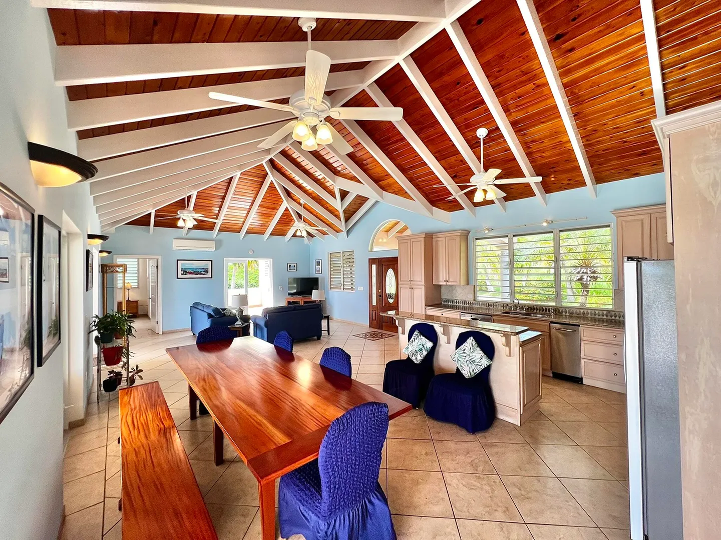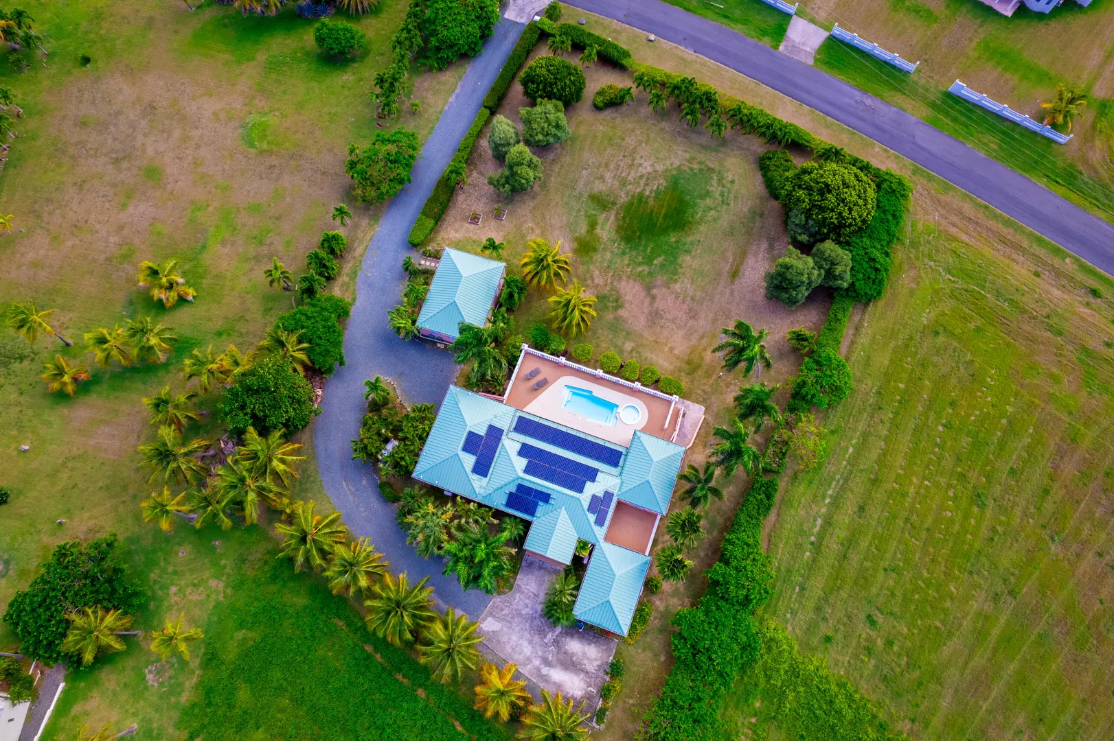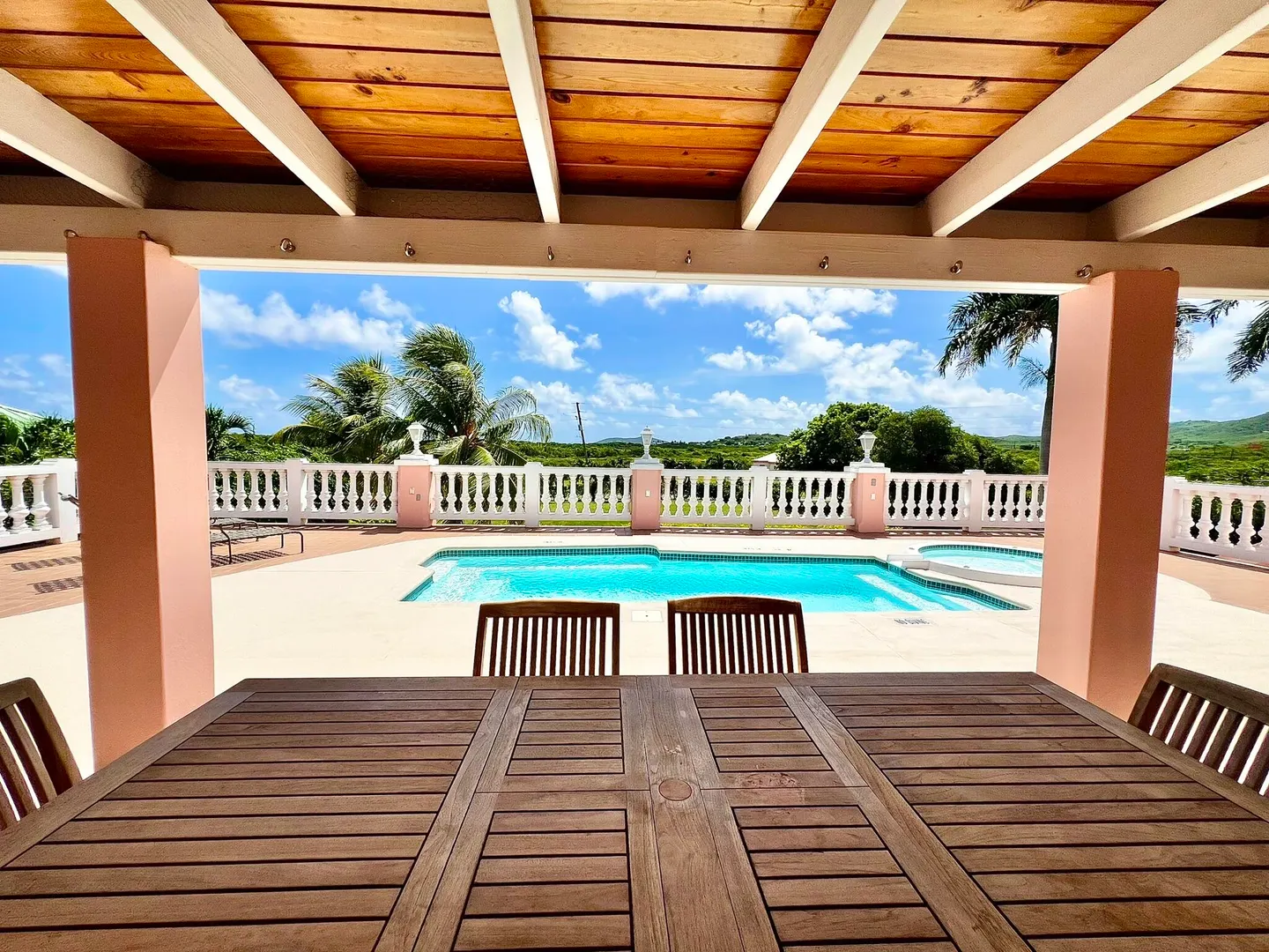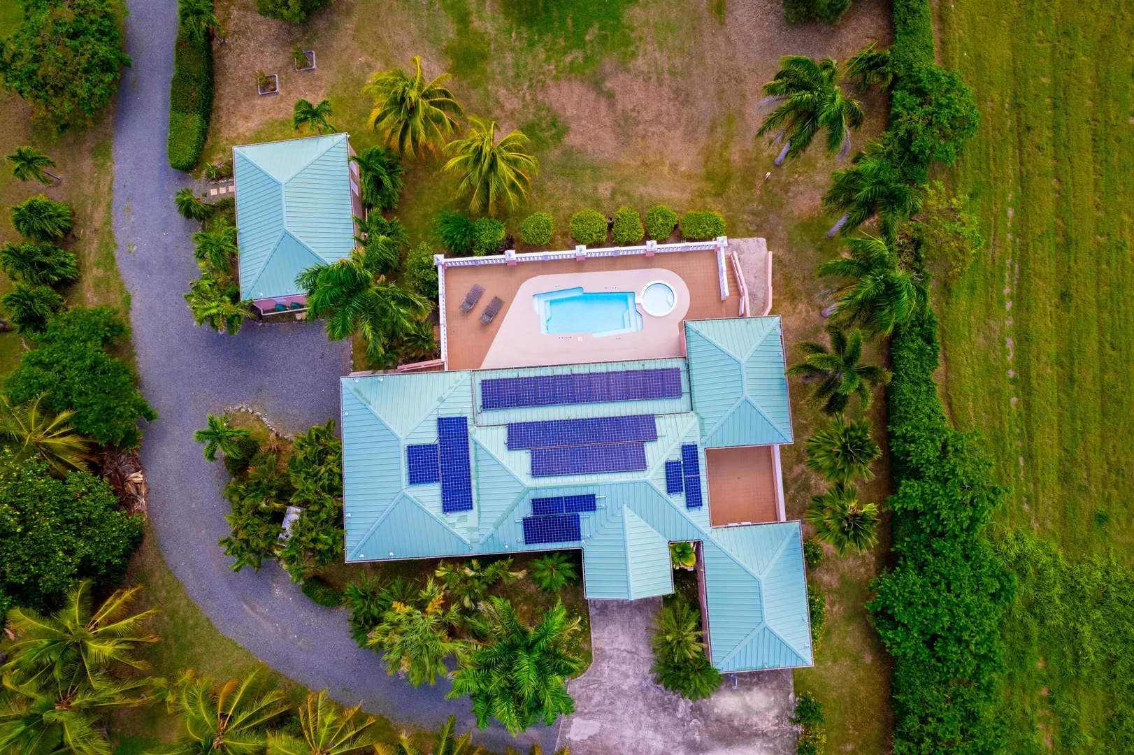 ''Crucian Palms''--your ideal island retreat! Conveniently located near Green Cay Marina, Tamarind Resort and a beautiful sandy beach, this stunning, one-level villa with solar has 4 bedrooms and 4.5 baths in the main house with a swimming pool plus a detached one bedroom, one bath cottage. The main bedroom includes a private patio, and the spacious great room features vaulted ceilings. Enjoy the open kitchen and dining area that flows out to a covered dining gallery sitting poolside. Additional amenities include a separate 1-bedroom, 1-bath guest apartment with private parking, a functioning well for toilets and irrigation, solar with net metering, a 30KW full-house generator, an outdoor shower, and a large storage area beneath the main villa. For added privacy and seclusion, the house sits back away from the neighborhood road down a long, professionally landscaped driveway.