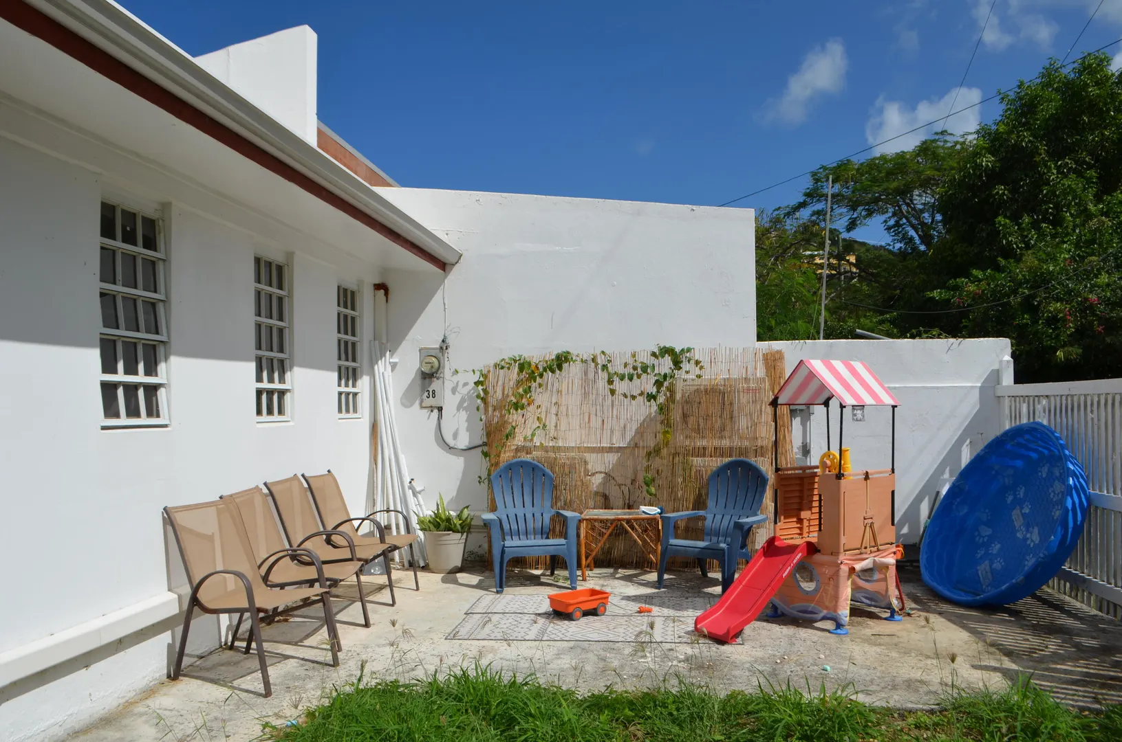 A small front patio welcomes you to this cozy 3 bedroom/ 2 bathroom townhouse. The kitchen and bathrooms are newly remodeled, and the roof was resealed this year (2022). Split A/C units in every room Located in quiet neighborhood just East of Christiansted, minutes from restaurants, supermarkets, and downtown Christiansted. A privately fenced back yard is suitable for outdoor dining or can be used as children's play area.
