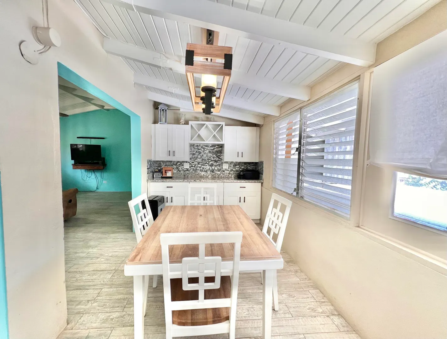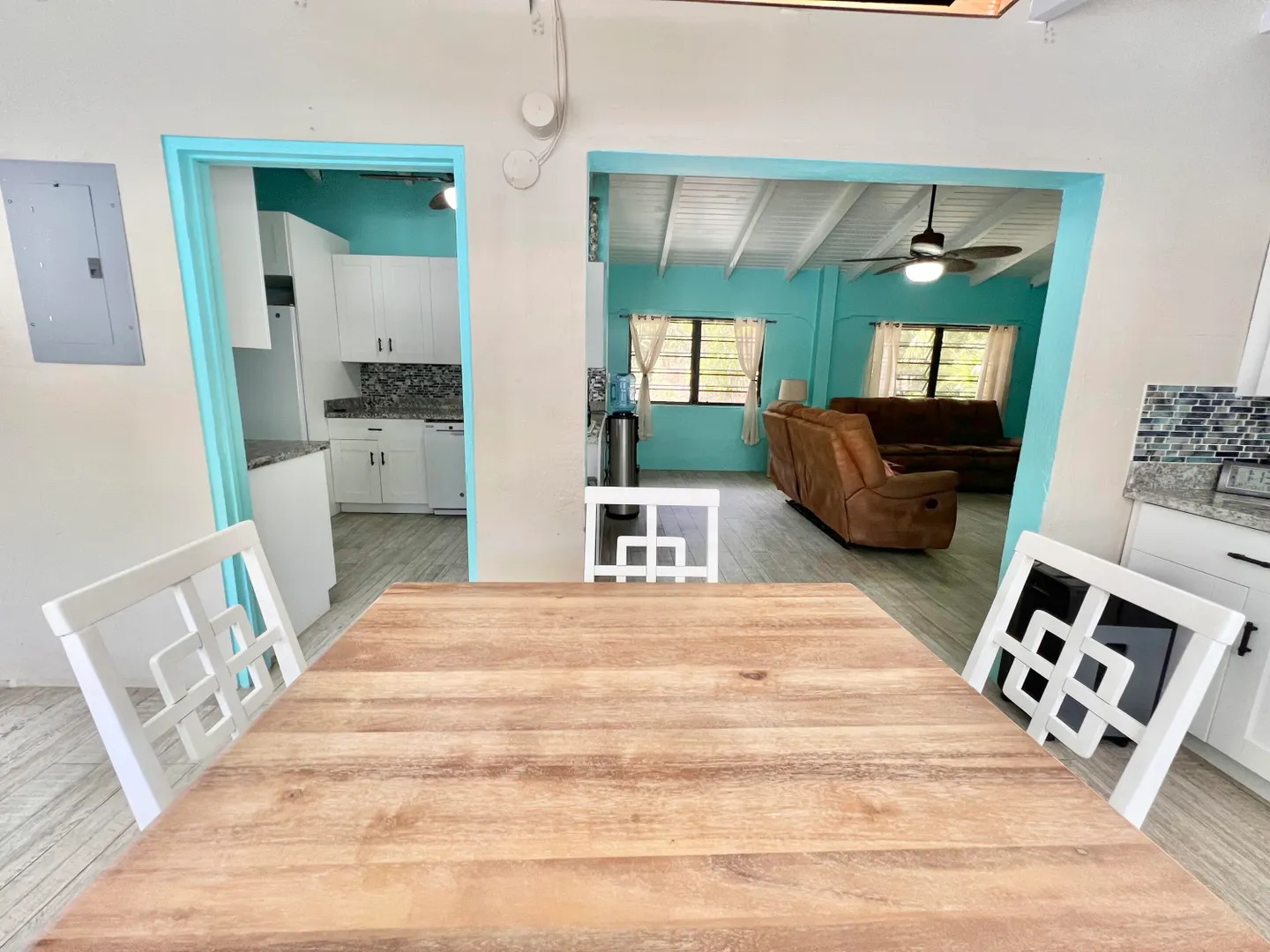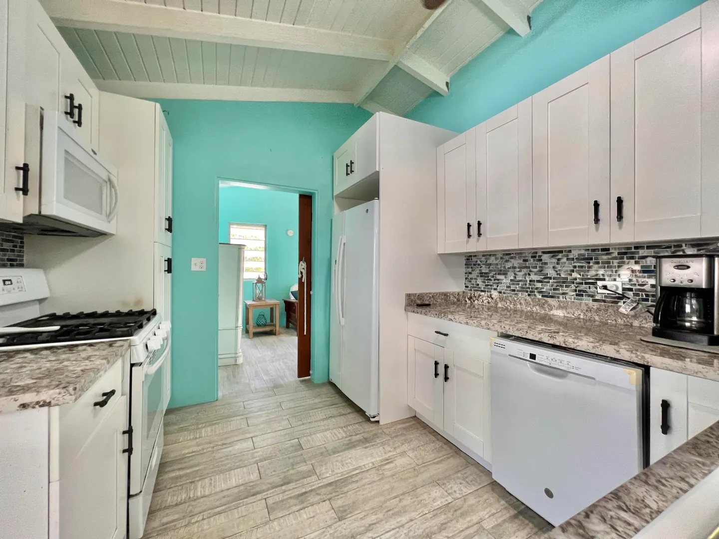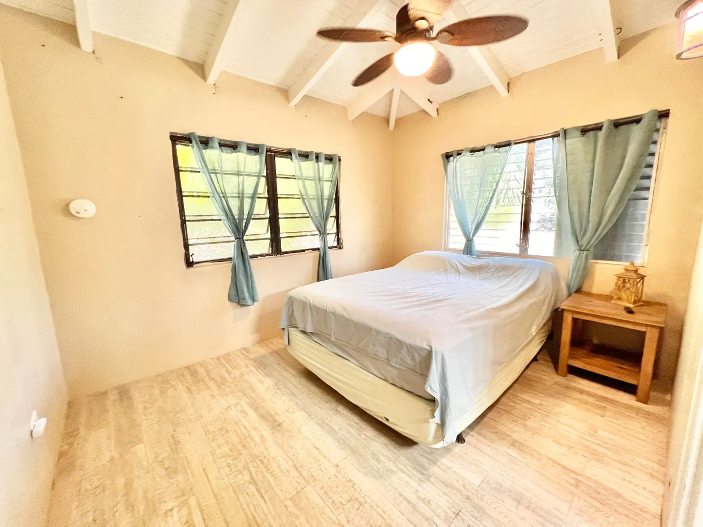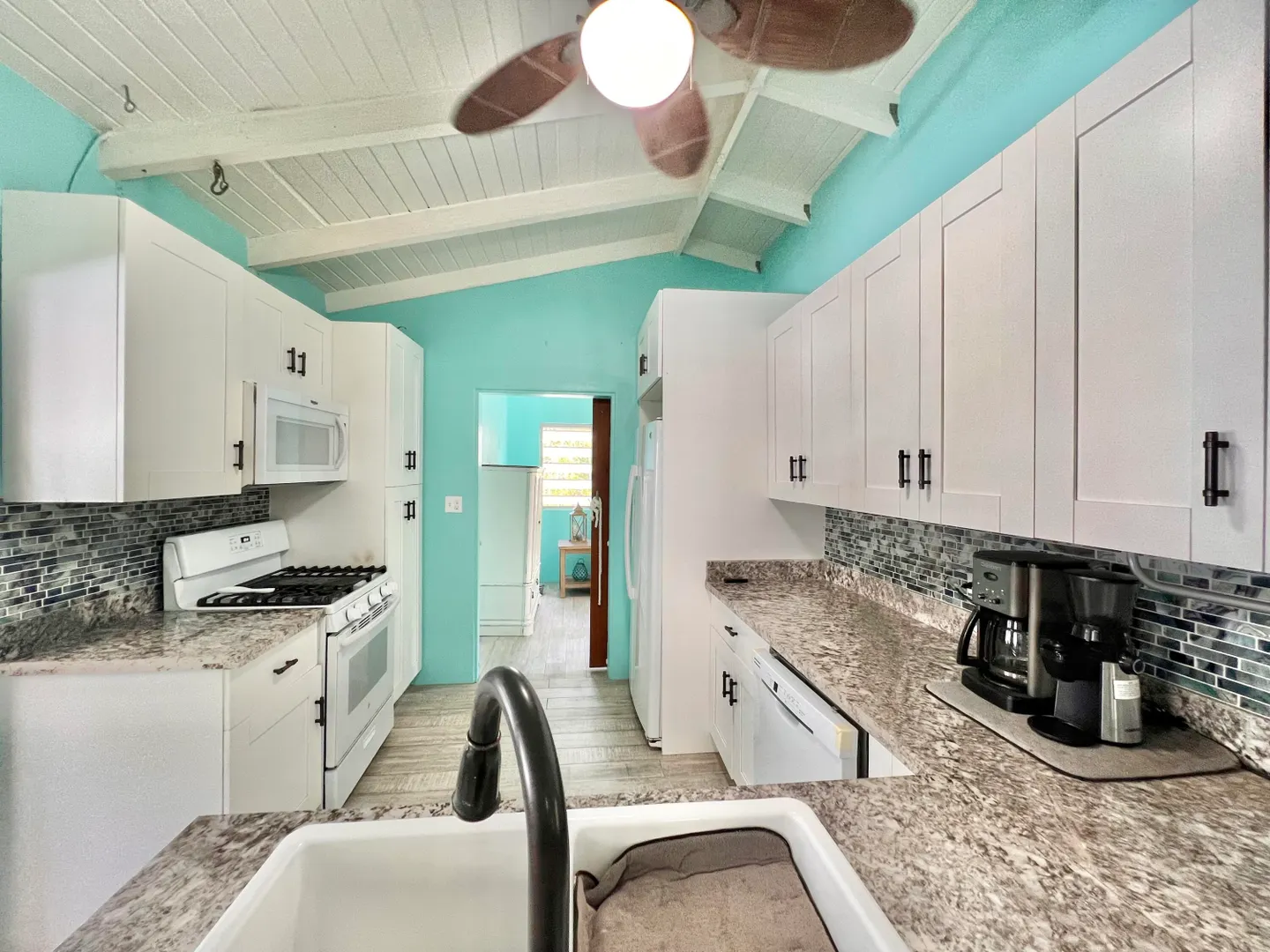 This three bedroom two bathroom island villa with beautiful upgrades and lush tropical landscaping is a the perfect home for anyone looking for a serene and comfortable lifestyle! Located on a dead end street, this property offers a private and peaceful oasis away from the noise and hustle of the mid-island location, yet is so close to all your conveniences. The interior of the house is spacious and inviting with fresh design elements and quality finishes that includes updated flooring and an open kitchen concept finished with white cabinetry and granite countertops. The two updated bathrooms were finished with custom tile work and modern vanities and fixtures. The large living room, with tall cathedral ceilings, boasts large windows that let in plenty of natural light, highlighting