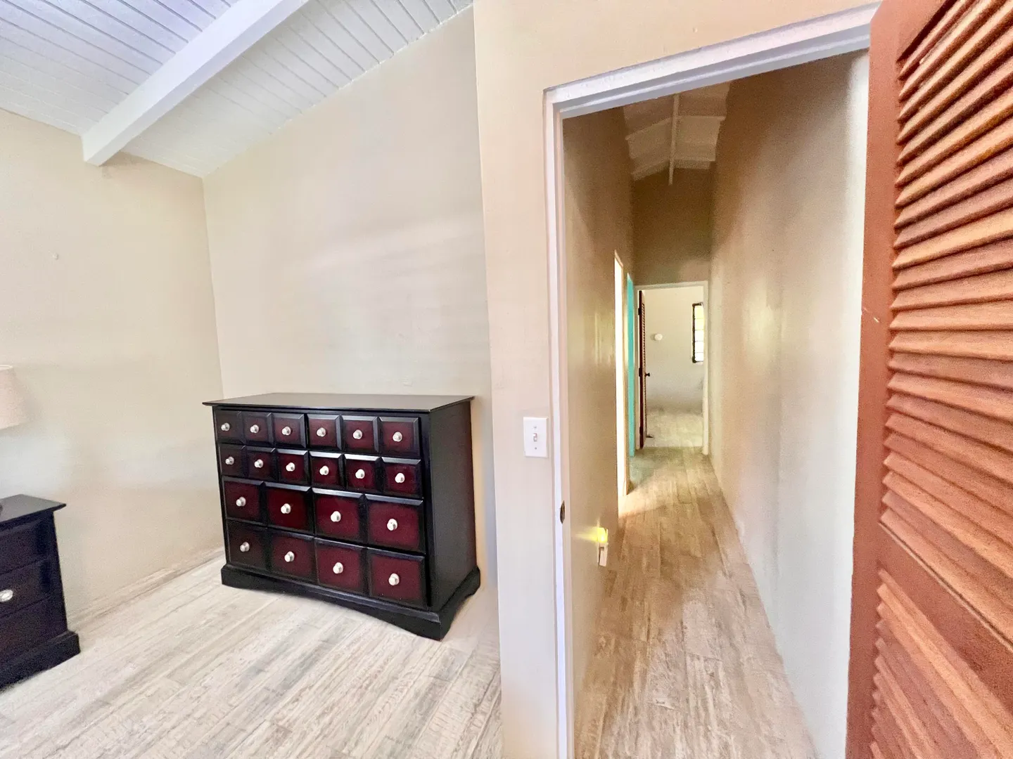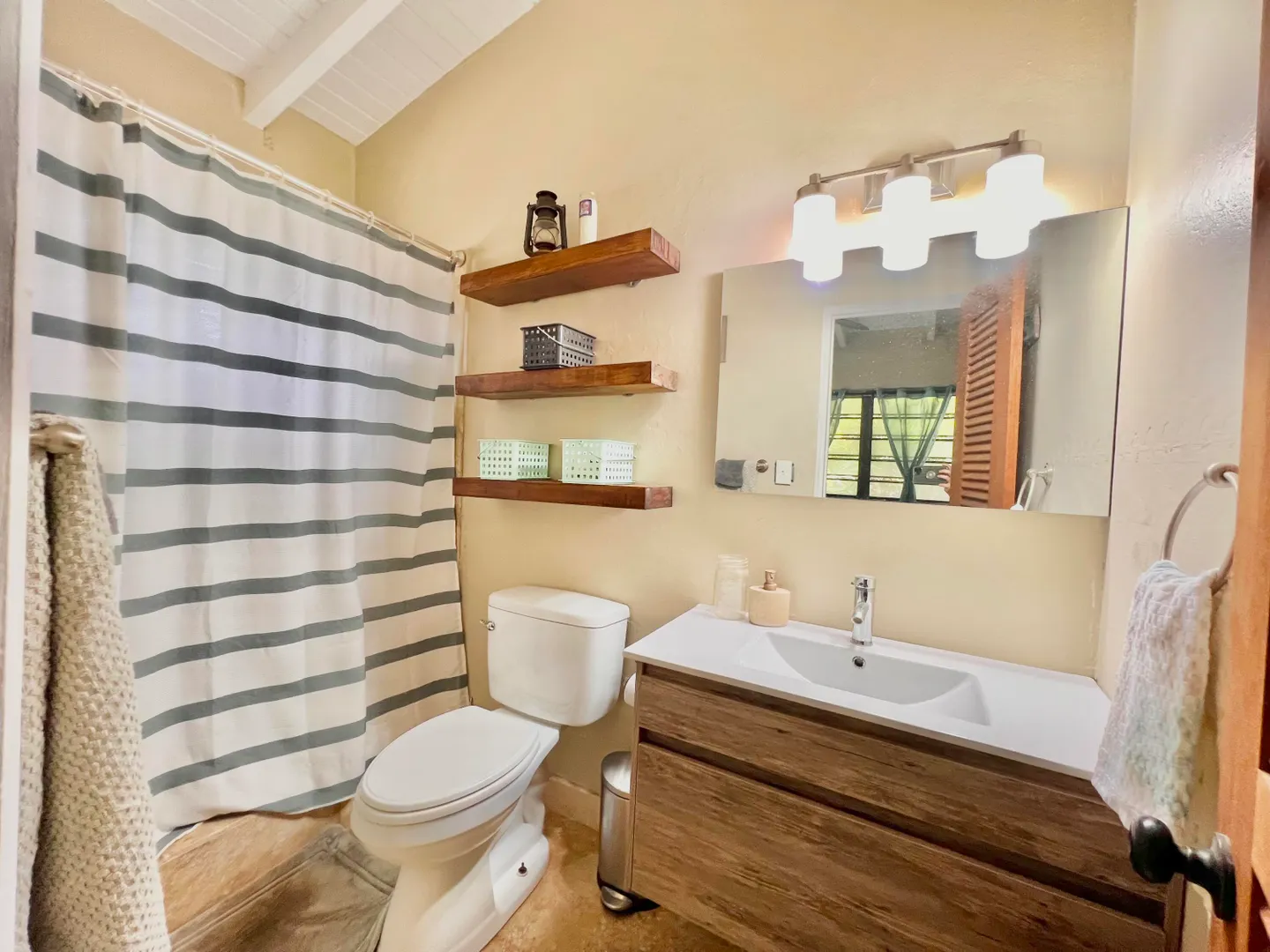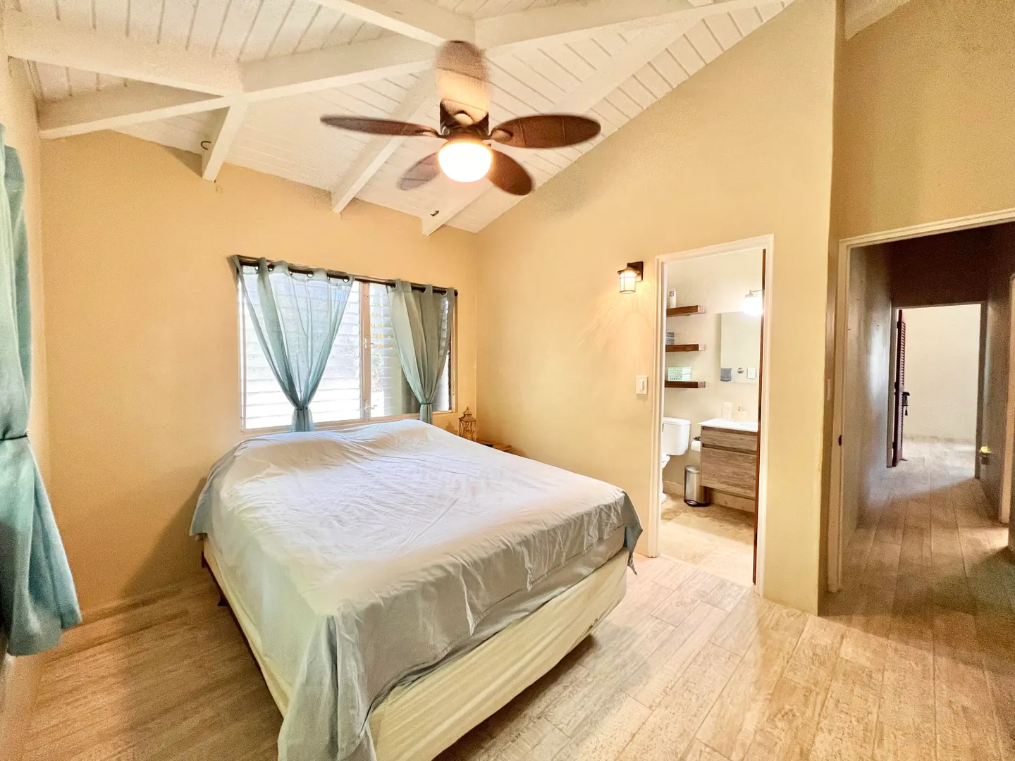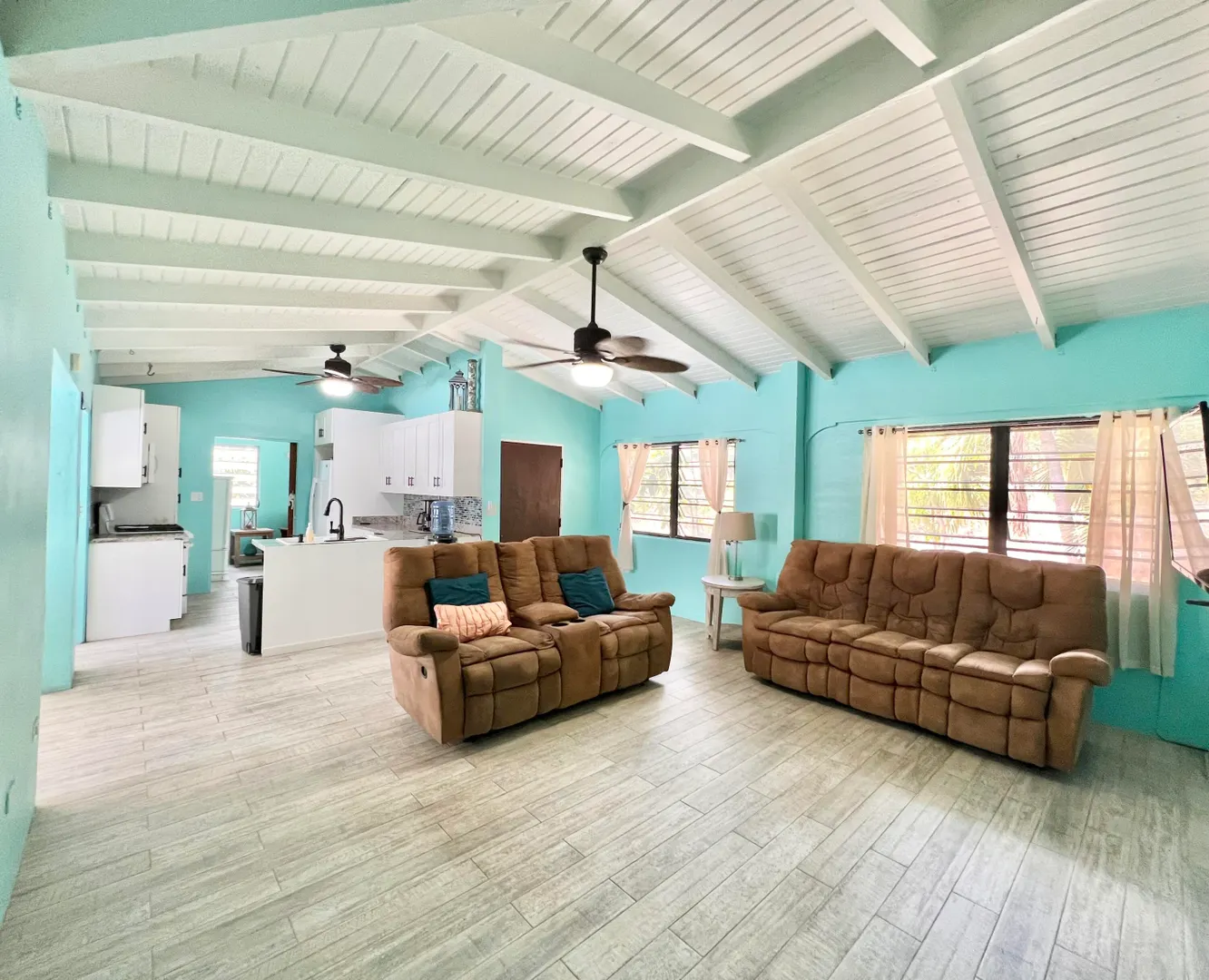 This three bedroom two bathroom island villa with beautiful upgrades and lush tropical landscaping is a the perfect home for anyone looking for a serene and comfortable lifestyle! Located on a dead end street, this property offers a private and peaceful oasis away from the noise and hustle of the mid-island location, yet is so close to all your conveniences. The interior of the house is spacious and inviting with fresh design elements and quality finishes that includes updated flooring and an open kitchen concept finished with white cabinetry and granite countertops. The two updated bathrooms were finished with custom tile work and modern vanities and fixtures. The large living room, with tall cathedral ceilings, boasts large windows that let in plenty of natural light, highlighting