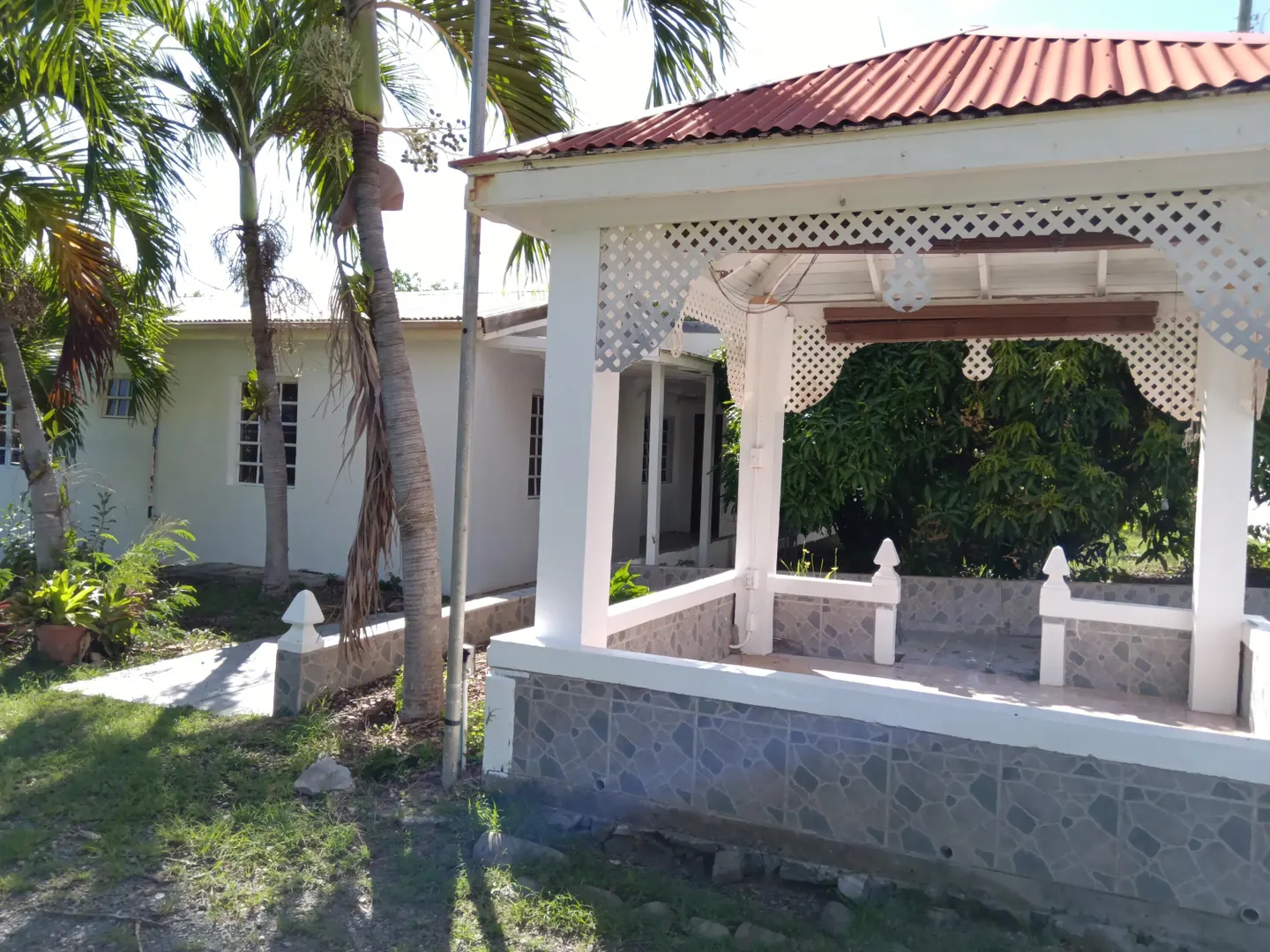 ''Charming 3-bedroom, 1-bath home located in Catherine's Rest Community, surrounded by lush tropical flora and fruit trees, with the added bonus of a 1-bedroom, 1-bath adjacent apartment/studio suite. Live in one side and rent out the other! This move-in ready home offers the convenience of being just minutes from Christiansted, Sunny Isles, and Centerline Road. Enjoy the serenity of an idyllic island home equipped with solar water heating, a gazebo for entertaining, and a spacious yard perfect for outdoor events, barbecues, or social gatherings.This is a charming three bedroom one bath home located in Catherine's Rest Community surrounded by tropical flora and fruit trees with an extra bonus of a 1 Bedroom 1 Bath adjacent apartment/studio suite. Live on one side and rent out the other.