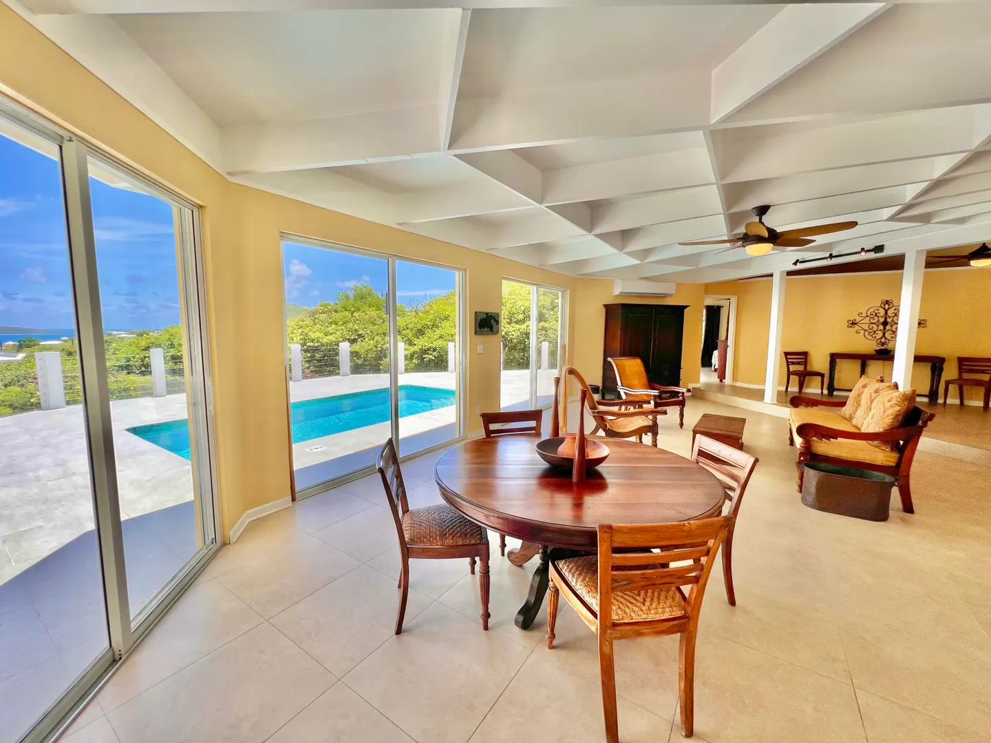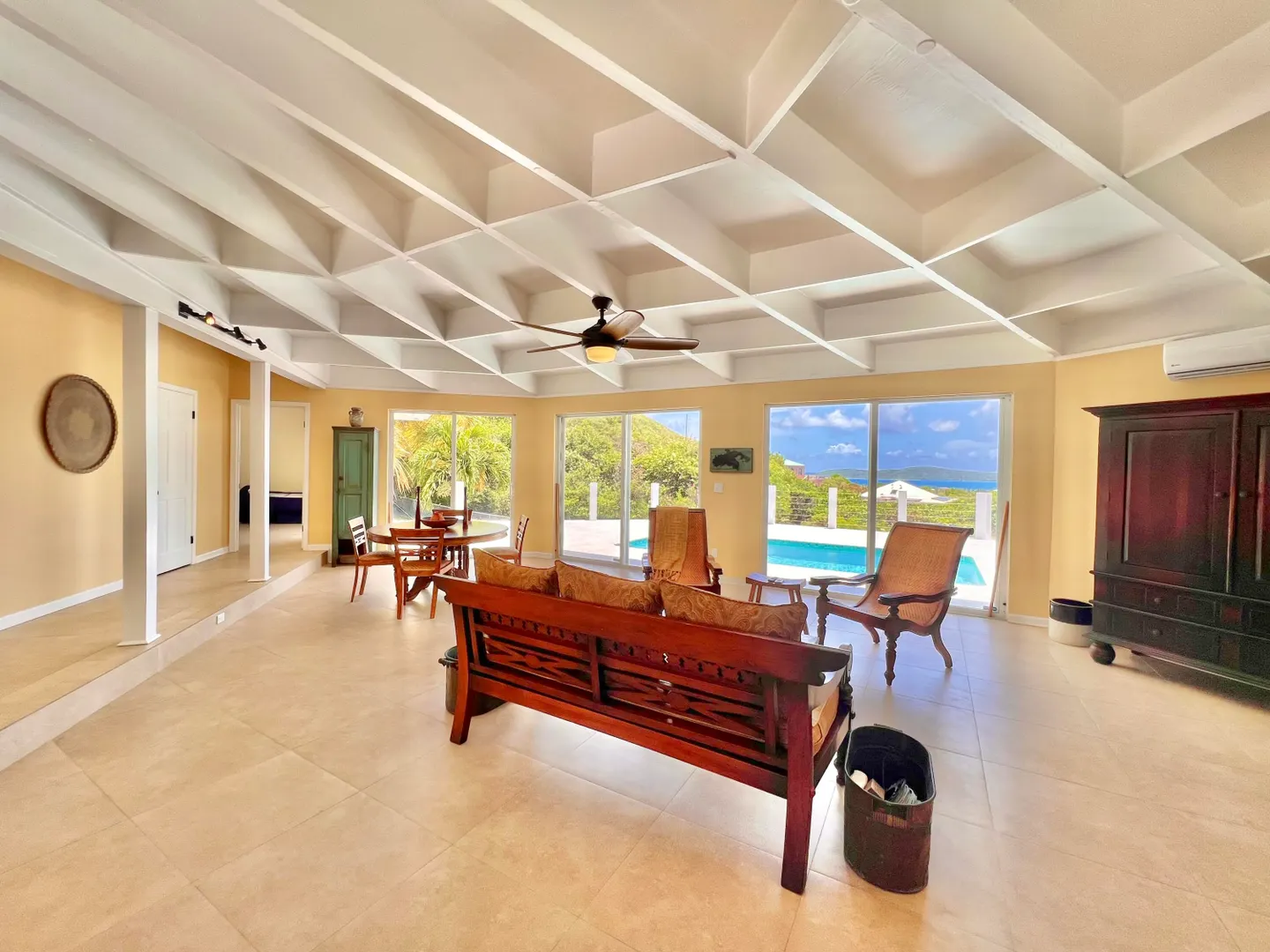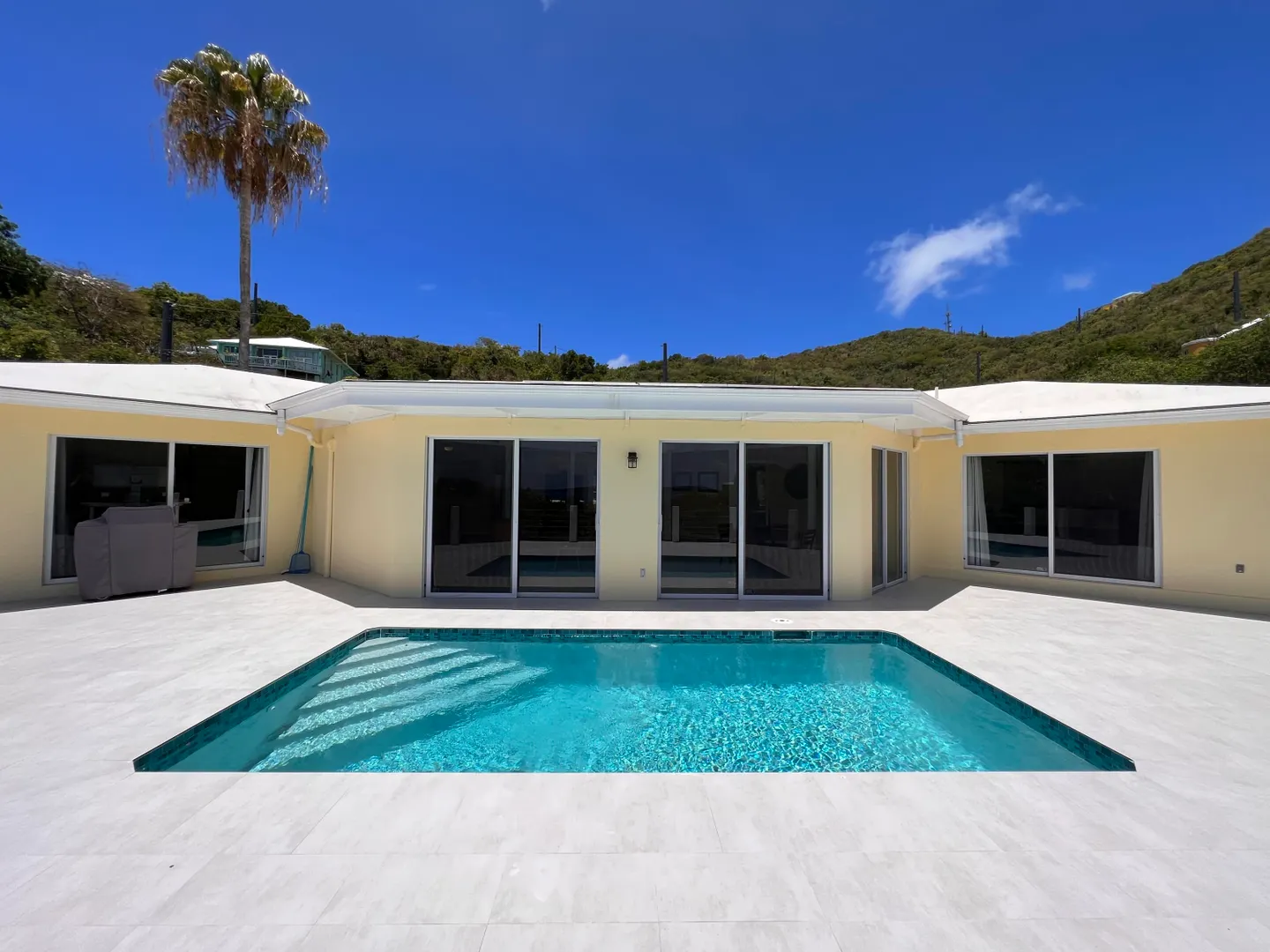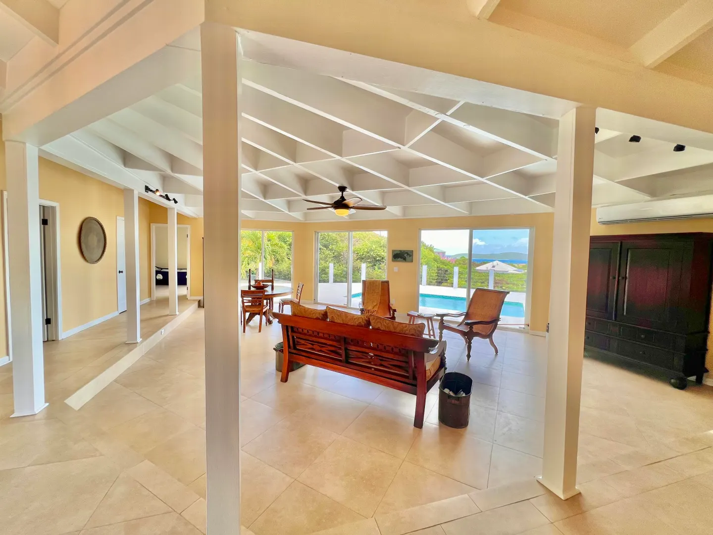 Discover the ultimate Caribbean retreat at Coral Reef Villa, a stunning three-bedroom, two and a half-bath home with SOLAR net-metering, a pool and a one-bedroom recently renovated apartment. Located on the east end with straight-on Buck Island views and a refreshing salt-water swimming pool, this move-in ready villa embodies the very essence of Caribbean living, complete with high-quality finishes and expert craftsmanship throughout. The V-shaped design seamlessly connects indoor and outdoor living spaces, immersing you in spectacular views from every angle. All bedrooms are situated under one roof, framing the living room and newly poured concrete pool deck. Step into the beautiful kitchen complete with Italia granite countertops, stainless steel appliances, and custom cabinetry.