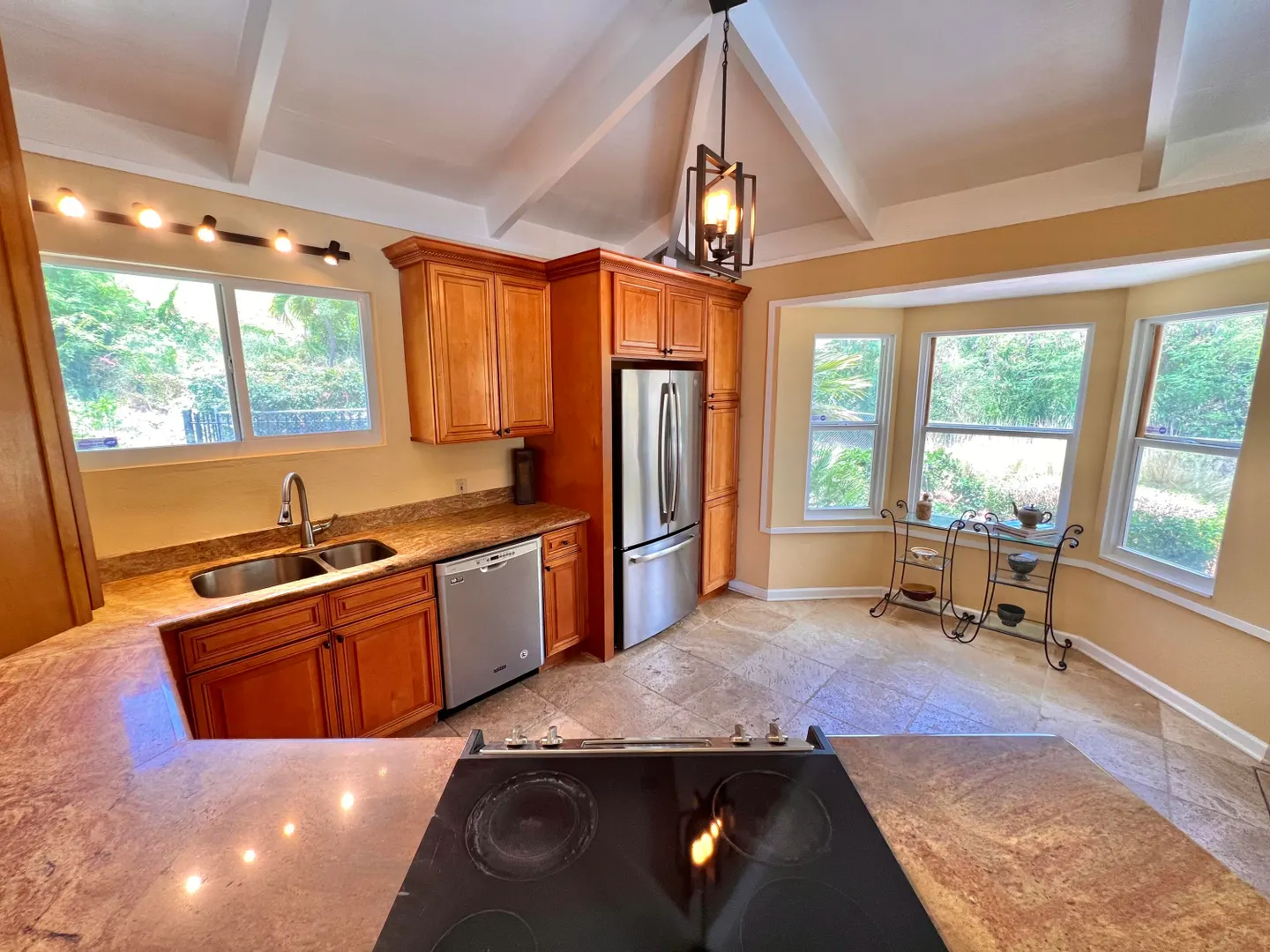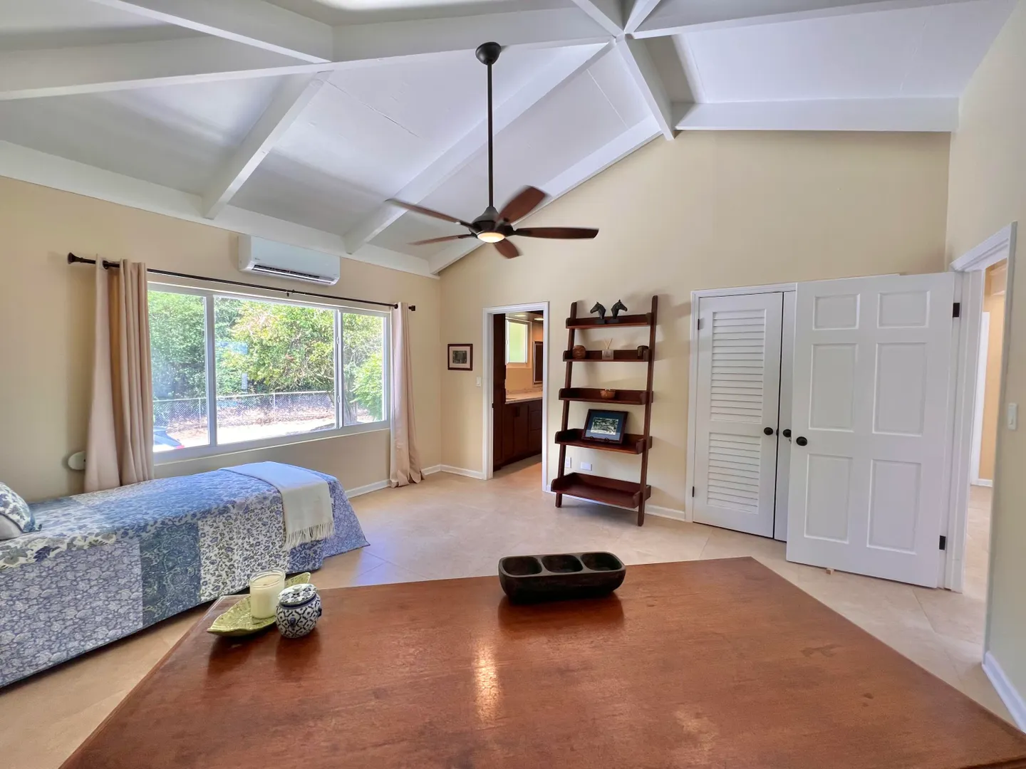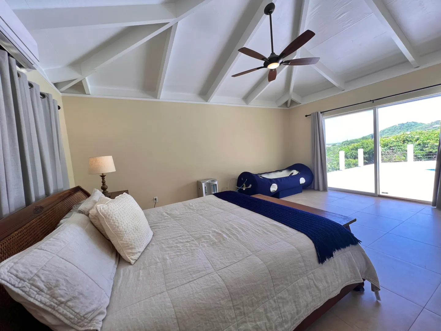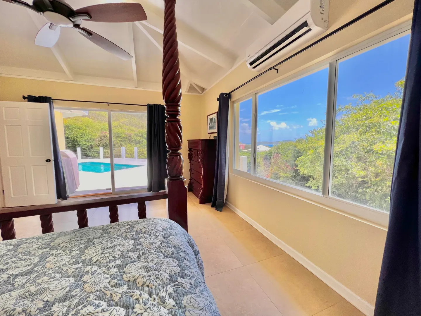 Discover the ultimate Caribbean retreat at Coral Reef Villa, a stunning three-bedroom, two and a half-bath home with SOLAR net-metering, a pool and a one-bedroom recently renovated apartment. Located on the east end with straight-on Buck Island views and a refreshing salt-water swimming pool, this move-in ready villa embodies the very essence of Caribbean living, complete with high-quality finishes and expert craftsmanship throughout. The V-shaped design seamlessly connects indoor and outdoor living spaces, immersing you in spectacular views from every angle. All bedrooms are situated under one roof, framing the living room and newly poured concrete pool deck. Step into the beautiful kitchen complete with Italia granite countertops, stainless steel appliances, and custom cabinetry.