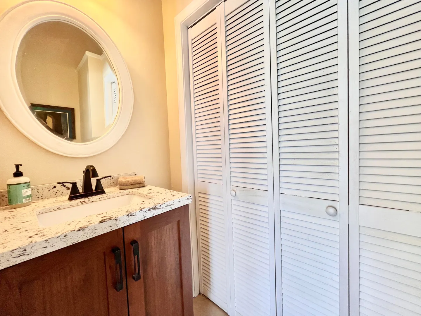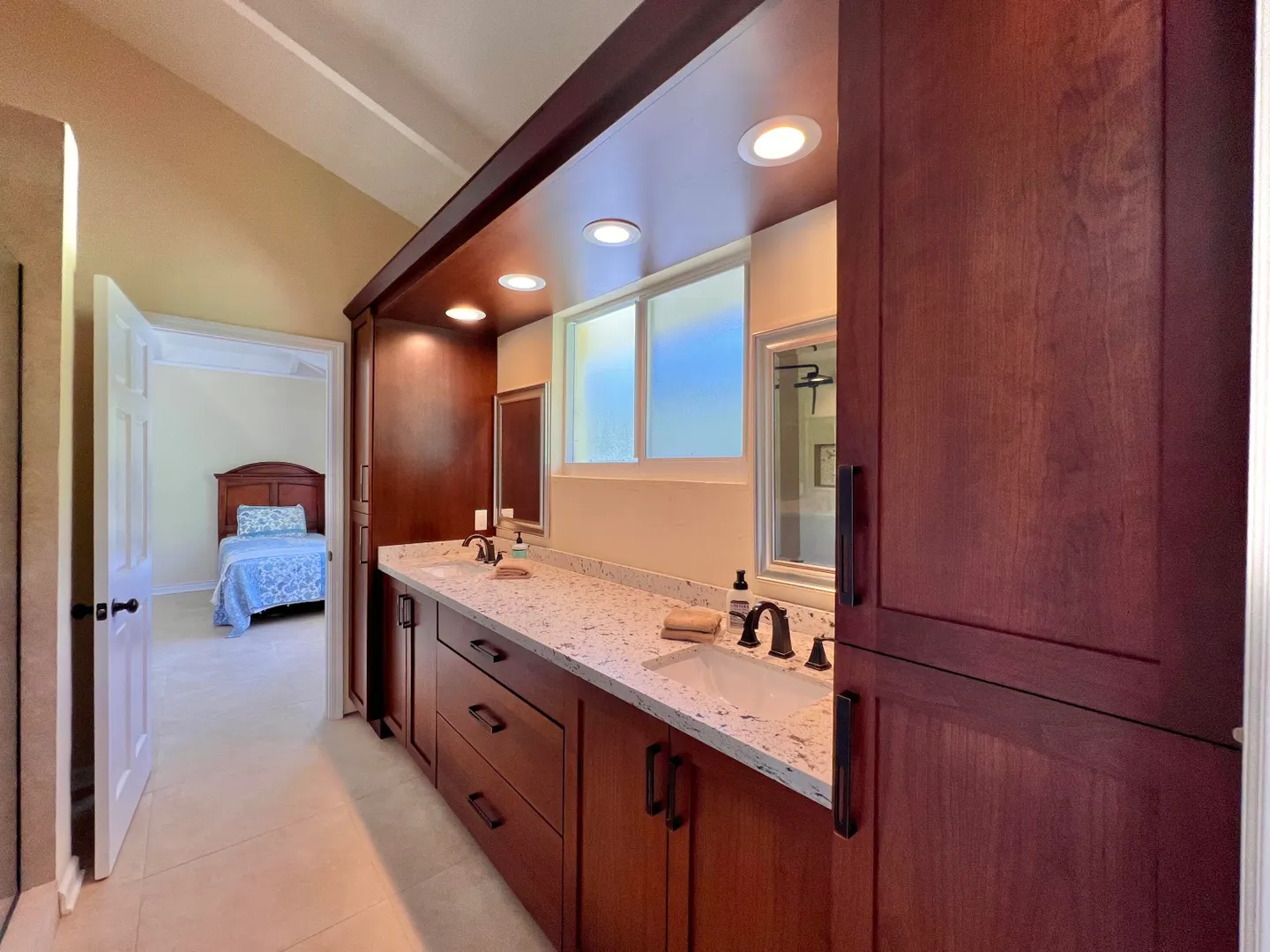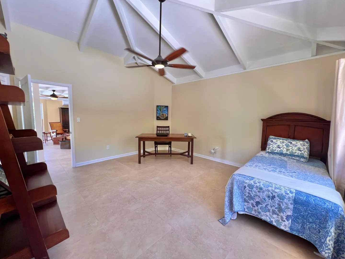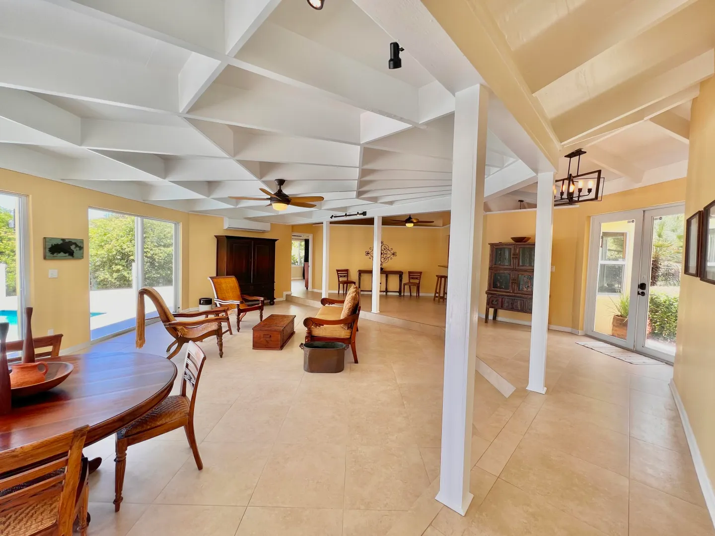 Discover the ultimate Caribbean retreat at Coral Reef Villa, a stunning three-bedroom, two and a half-bath home with SOLAR net-metering, a pool and a one-bedroom recently renovated apartment. Located on the east end with straight-on Buck Island views and a refreshing salt-water swimming pool, this move-in ready villa embodies the very essence of Caribbean living, complete with high-quality finishes and expert craftsmanship throughout. The V-shaped design seamlessly connects indoor and outdoor living spaces, immersing you in spectacular views from every angle. All bedrooms are situated under one roof, framing the living room and newly poured concrete pool deck. Step into the beautiful kitchen complete with Italia granite countertops, stainless steel appliances, and custom cabinetry.