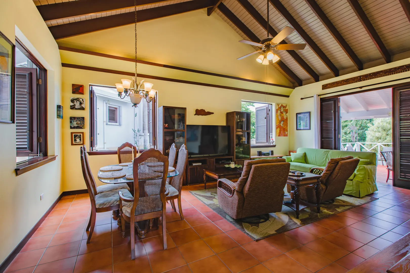 Escape to paradise at Sweet Lime Villas, where privacy and tranquility meet. This 2-story, 2 bedroom, 2 bath freestanding condo villa is nestled within the breathtaking landscapes of an 18-hole Robert Trent Jones golf course, surrounded by the lush tropical foliage this area is famous for. Owner occupied & maintained; it is located at the end of a cul-de-sac for maximum greenspace & privacy. Other amenities; vaulted ceilings, upper & lower decks for plenty of outdoor dining & living, automatic propane generator, extra storage, tankless water heater, 5 burner gas stove, split A/C units, ceiling fans & accordion hurricane shutters.Sweet Lime Villas is located at Carambola ,just a short drive to Carambola Beach Resort or Cane Bay for diving, beaches and restaurants.