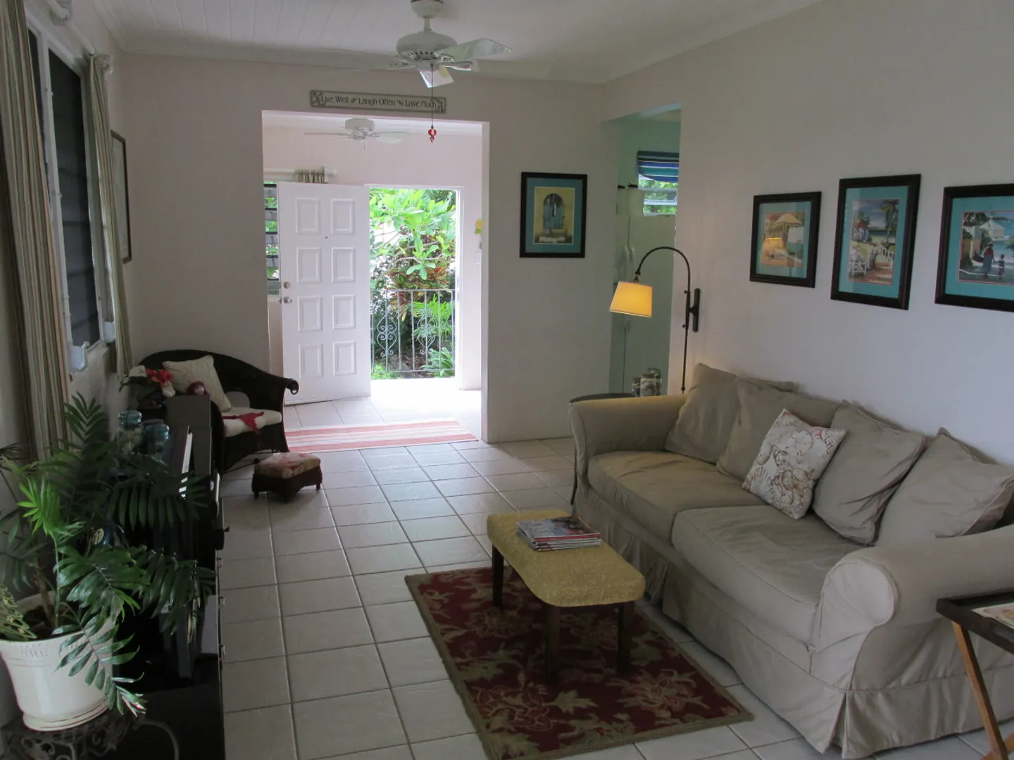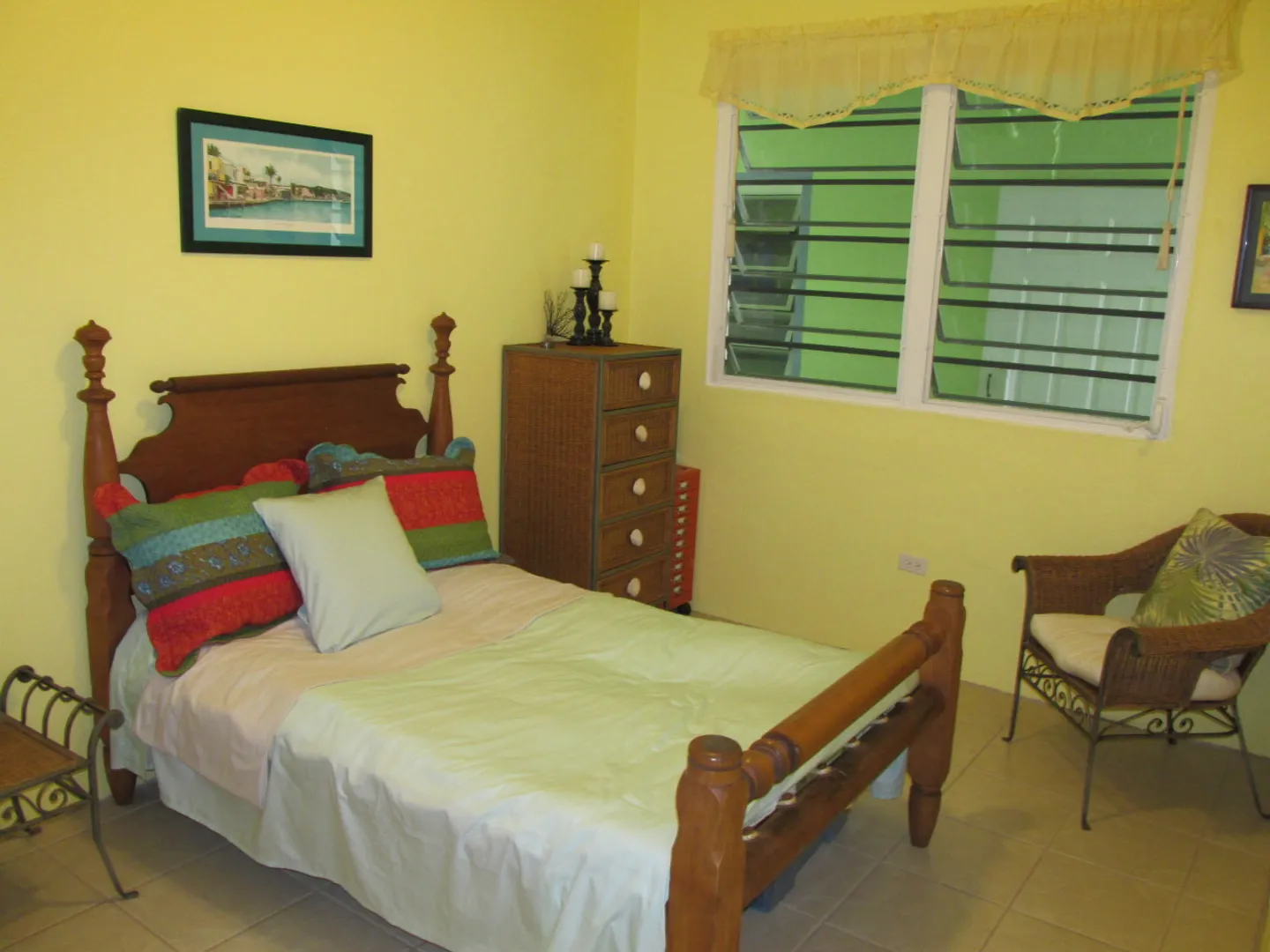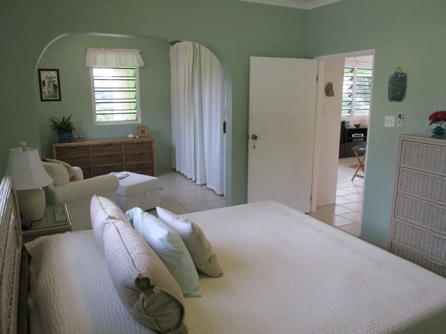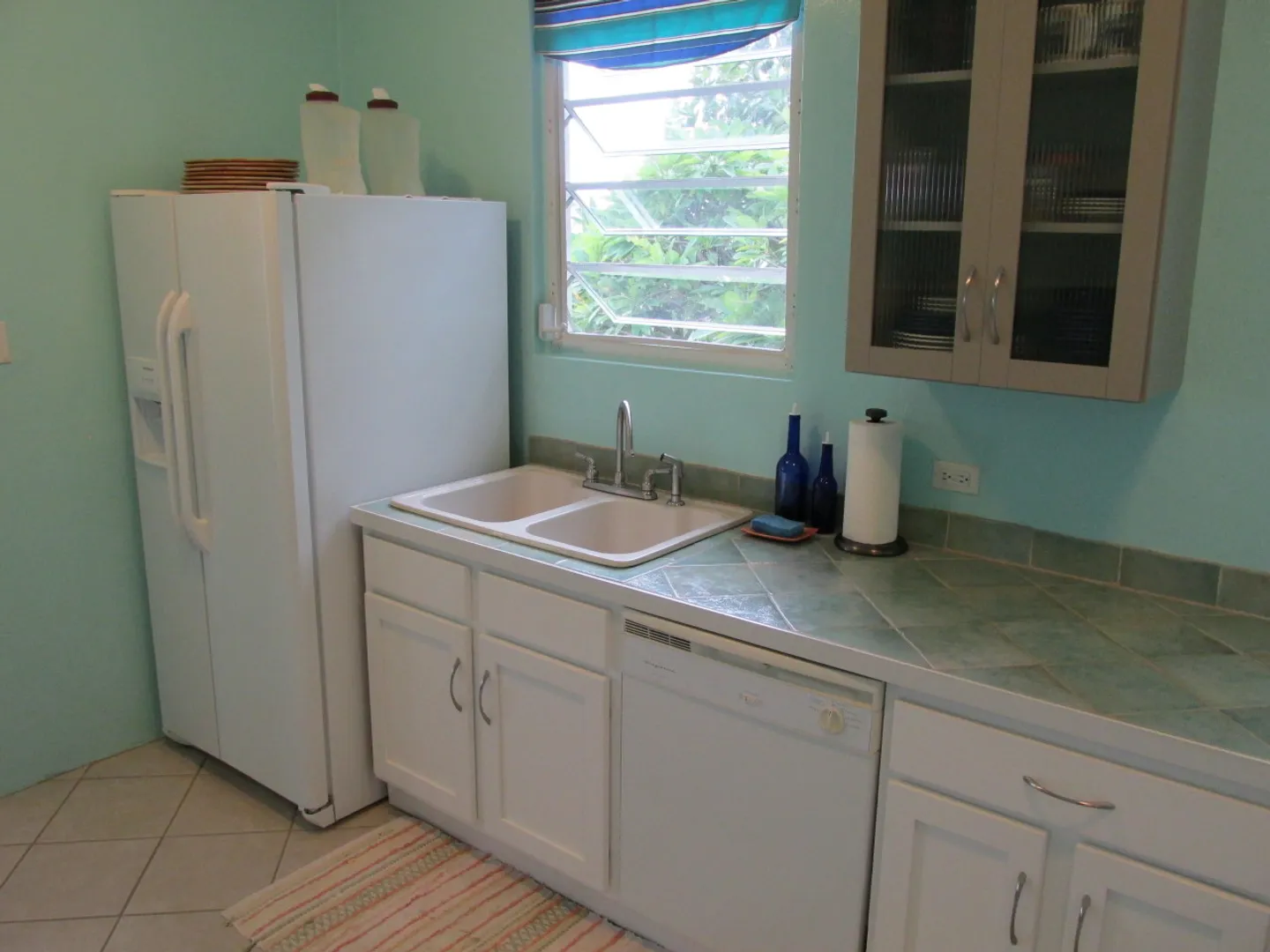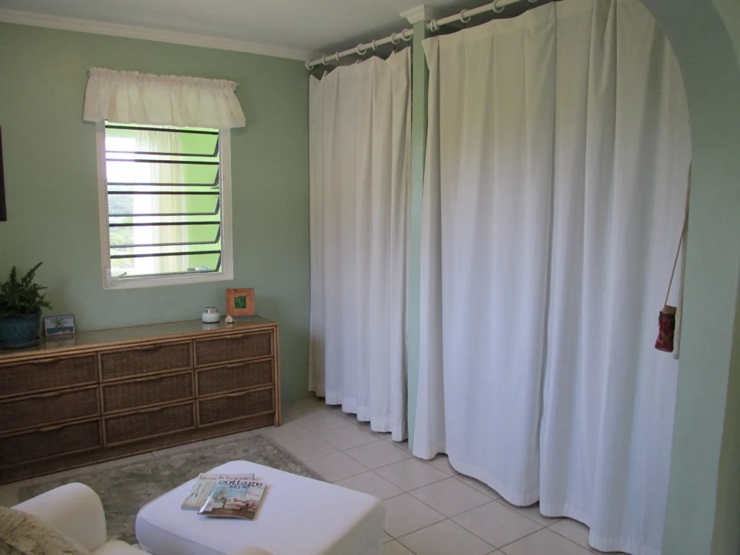 This is a great family home on a large fenced & cleared lot with south shore ocean views, tons of fruit trees AND potential rental income from the apartment. Renovated throughout, including new kitchens, bathrooms and all new plumbing and electrical. This house is super neat and clean. If you're looking for a place that needs ZERO TLC, then this is it! See Docs for all the great property features. -Upstairs main house is 2 bedrooms with third bedroom in rental apartment or guest quarters below -Optional city water hook up…great to fill your cistern if you run out of water instead of delivery service -Option to run city water to apartment while upstairs runs on cistern for separation of water usage -Water filtration system with large sediment, small sediment, charcoal and UV -Upstairs and downstairs wired for BOTH satellite and Innovative -Two separate meters for apartment and main house -Both the apartment and the main house are wired with a transfer switch for a generator -All new plumbing and electric in 2005 -Concrete driveway with lots of parking and carport -Terraced garden area with drip irrigation -Fully fenced, cleared yard with many varieties of trees: bay leaf, sugar apple, coconuts,yellow plum, custard apple, mango, two types of bananas, blood orange, local lime, avacodo (not bearing yet), seagrape, gnip tree, royal palms, flamboyants -Large mechanical room -Large laundry room -Very large master bedroom with sitting area -Very large closet/storage in apartment -80 gallon solar hot water system upstairs -Crown molding throughout upstairs -High Efficiency split A/C’s in both upstairs bedrooms -Extremely efficient with compact flourescents in each light fixture -WAPA averages 13 kw per day with monthly bills during 2012 averaging $180 per month -Fully fenced dog run (42x18) with running water -portable a/c in downstairs -Hurricane shutters are combination of aluminum panel and wood shutters -Newly paved neighborhood roads