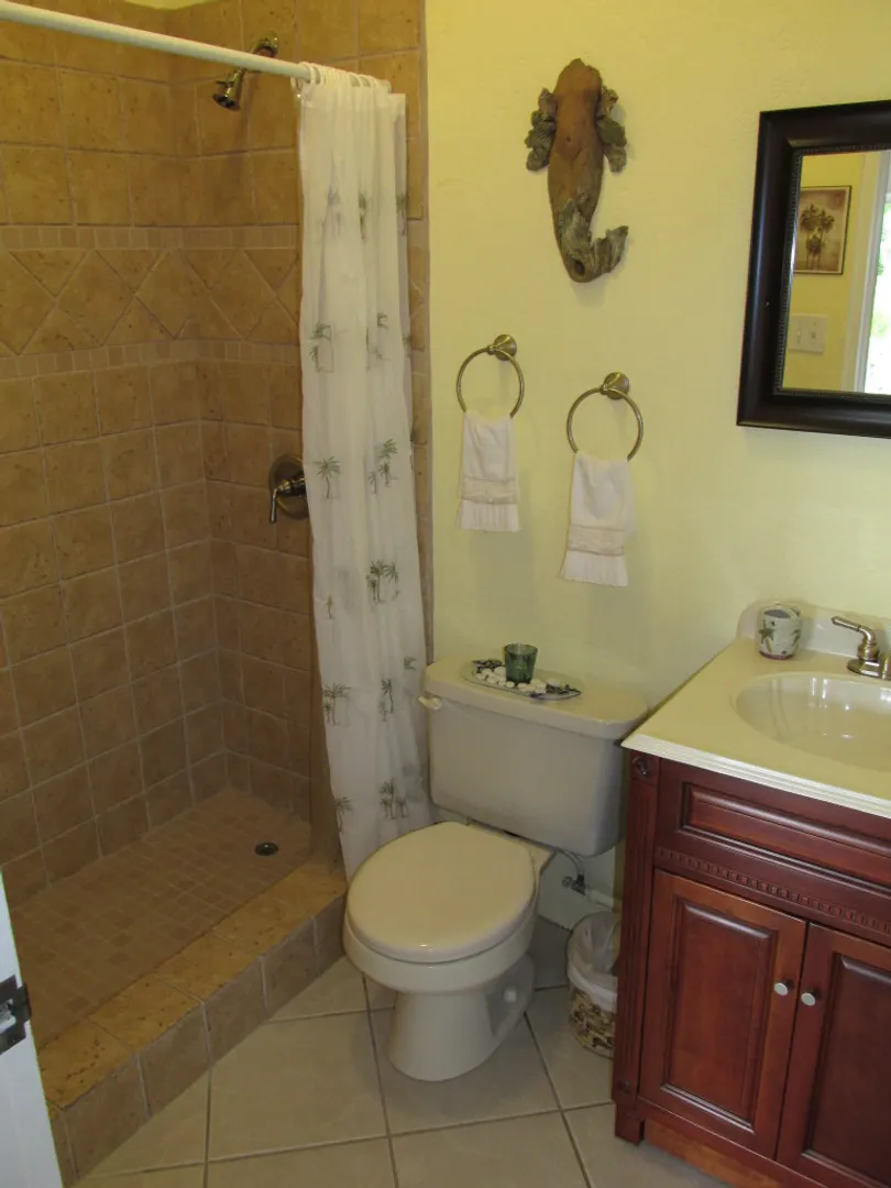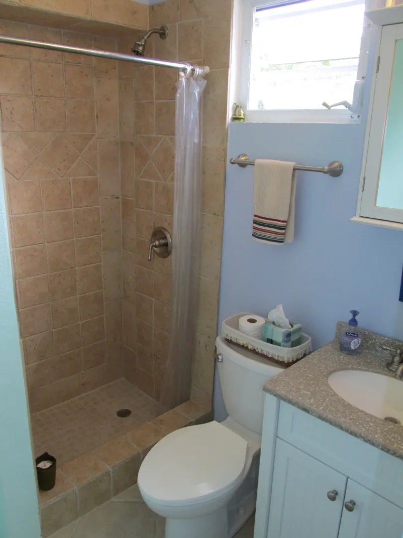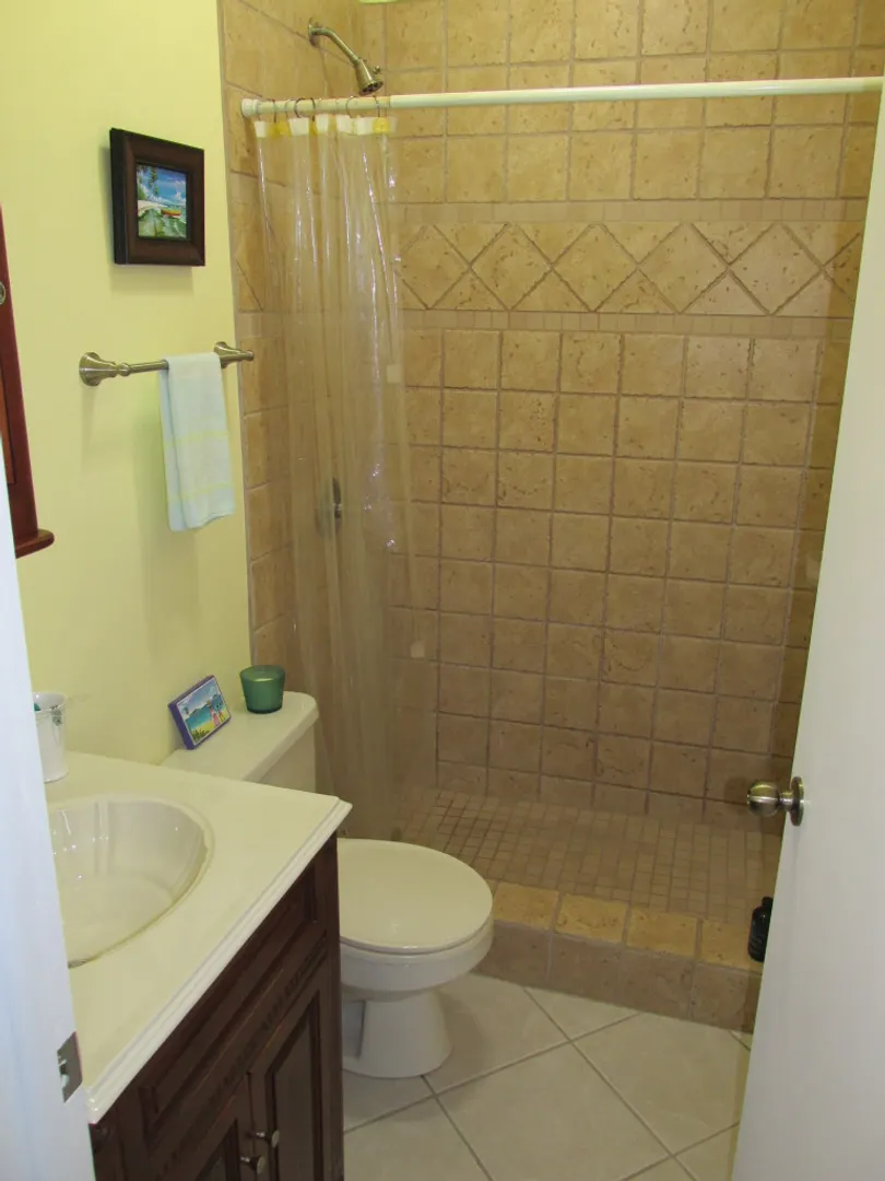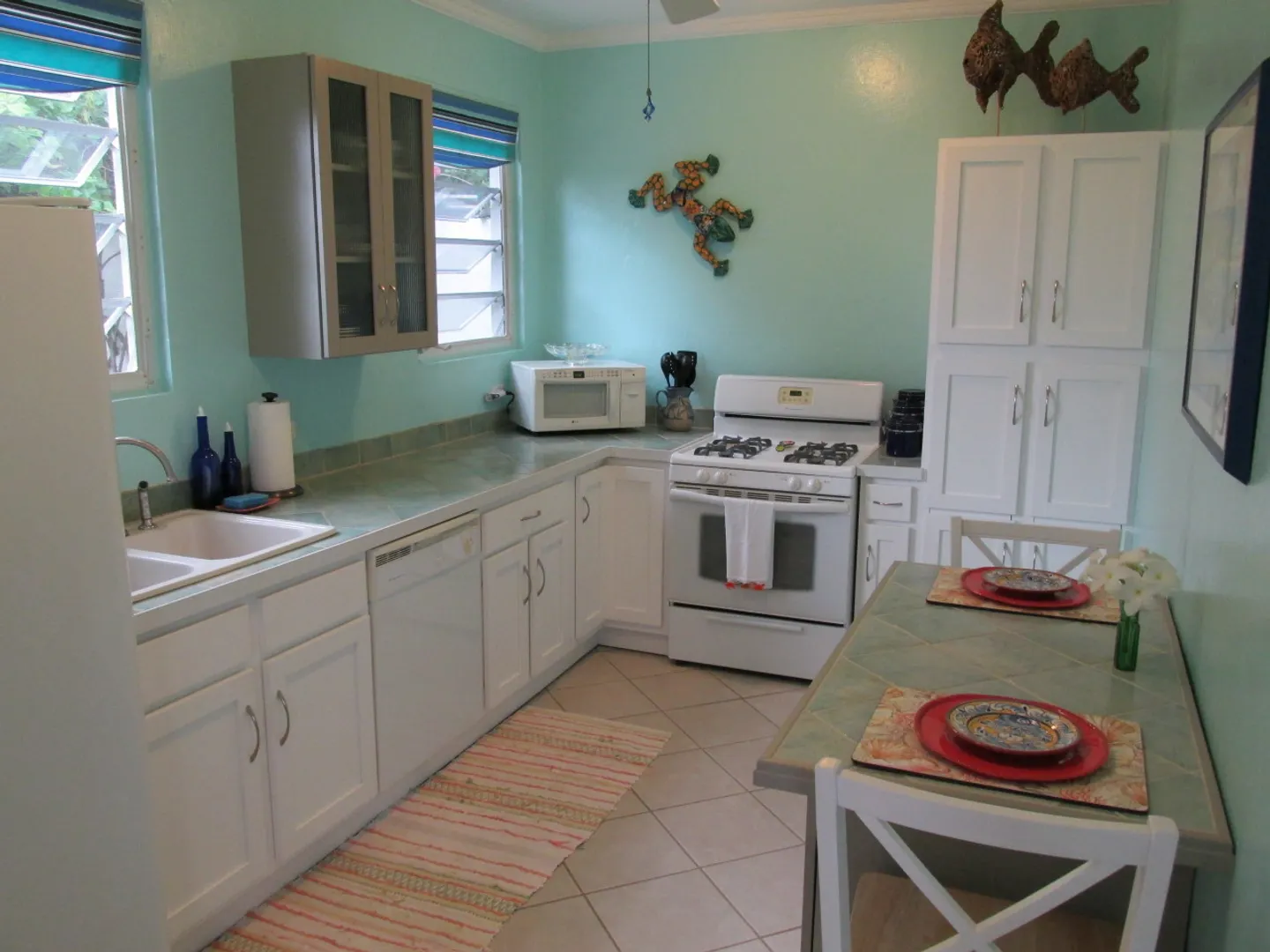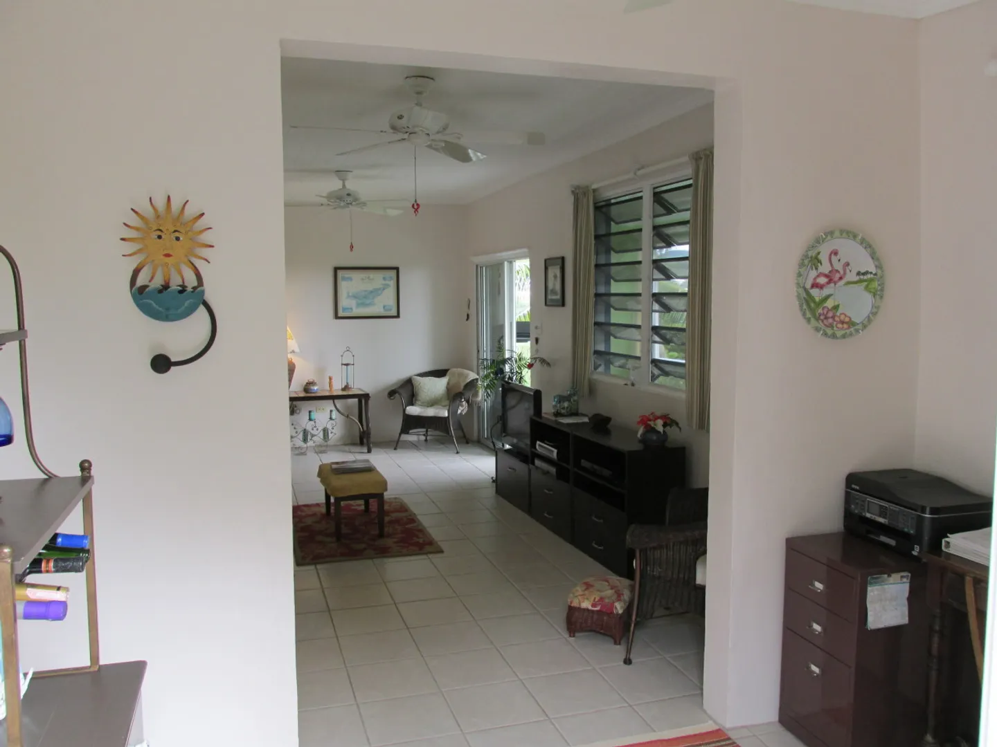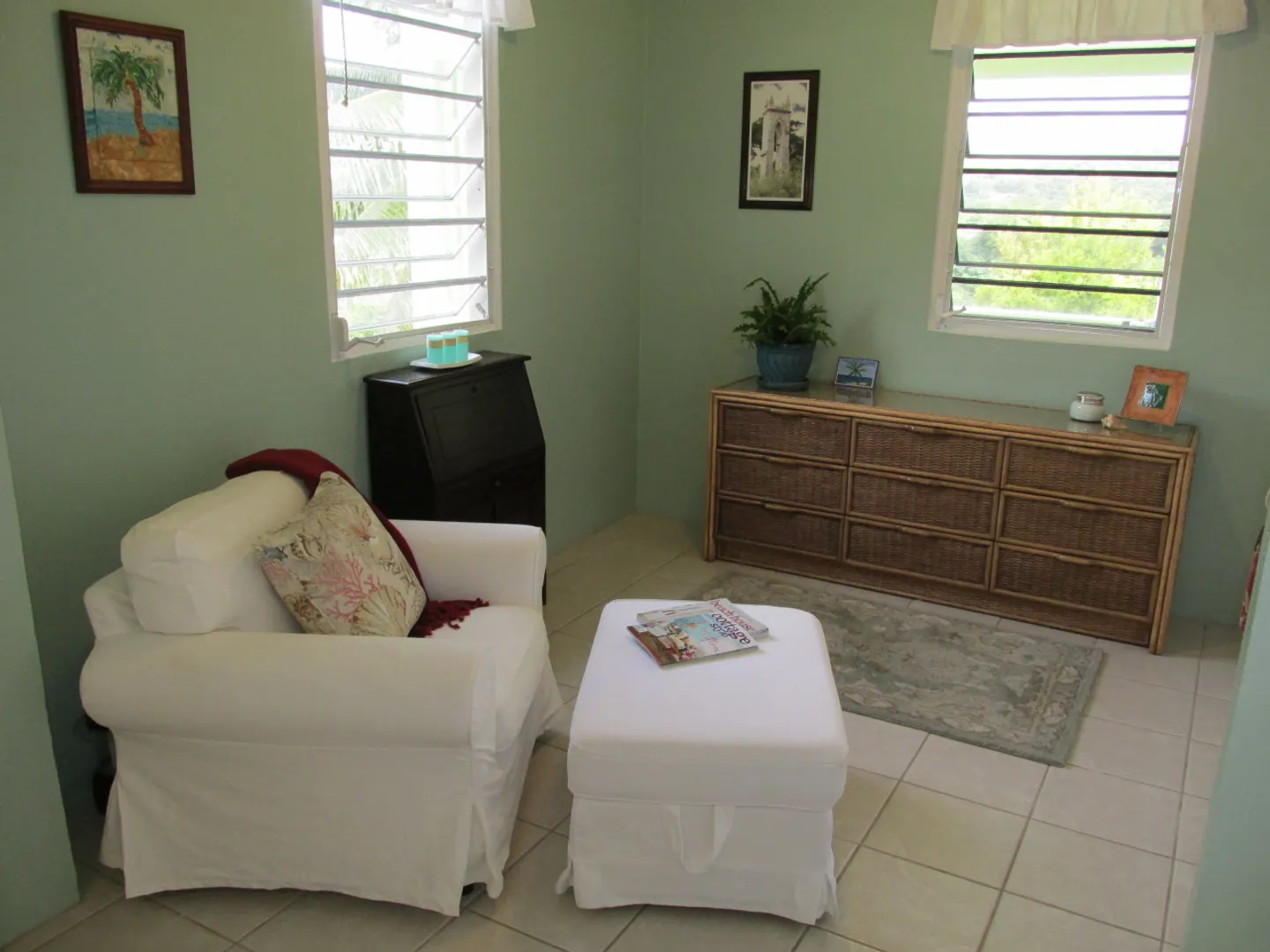 This is a great family home on a large fenced & cleared lot with south shore ocean views, tons of fruit trees AND potential rental income from the apartment. Renovated throughout, including new kitchens, bathrooms and all new plumbing and electrical. This house is super neat and clean. If you're looking for a place that needs ZERO TLC, then this is it! See Docs for all the great property features. -Upstairs main house is 2 bedrooms with third bedroom in rental apartment or guest quarters below -Optional city water hook up…great to fill your cistern if you run out of water instead of delivery service -Option to run city water to apartment while upstairs runs on cistern for separation of water usage -Water filtration system with large sediment, small sediment, charcoal and UV -Upstairs and downstairs wired for BOTH satellite and Innovative -Two separate meters for apartment and main house -Both the apartment and the main house are wired with a transfer switch for a generator -All new plumbing and electric in 2005 -Concrete driveway with lots of parking and carport -Terraced garden area with drip irrigation -Fully fenced, cleared yard with many varieties of trees: bay leaf, sugar apple, coconuts,yellow plum, custard apple, mango, two types of bananas, blood orange, local lime, avacodo (not bearing yet), seagrape, gnip tree, royal palms, flamboyants -Large mechanical room -Large laundry room -Very large master bedroom with sitting area -Very large closet/storage in apartment -80 gallon solar hot water system upstairs -Crown molding throughout upstairs -High Efficiency split A/C’s in both upstairs bedrooms -Extremely efficient with compact flourescents in each light fixture -WAPA averages 13 kw per day with monthly bills during 2012 averaging $180 per month -Fully fenced dog run (42x18) with running water -portable a/c in downstairs -Hurricane shutters are combination of aluminum panel and wood shutters -Newly paved neighborhood roads