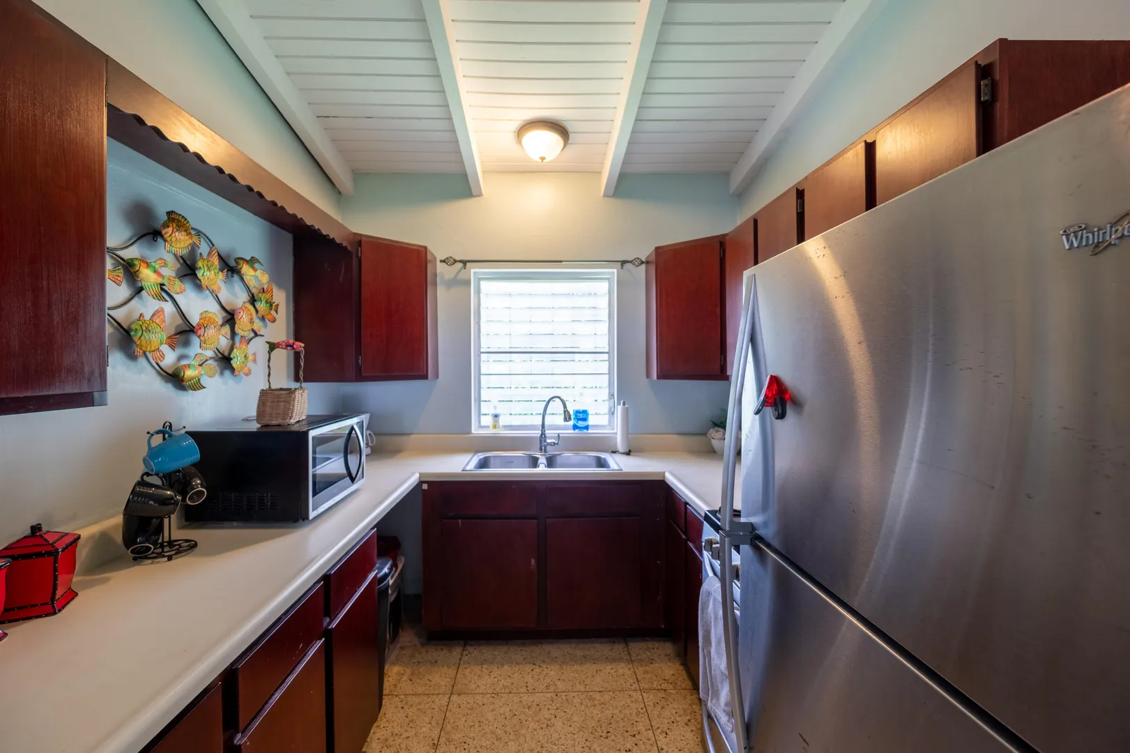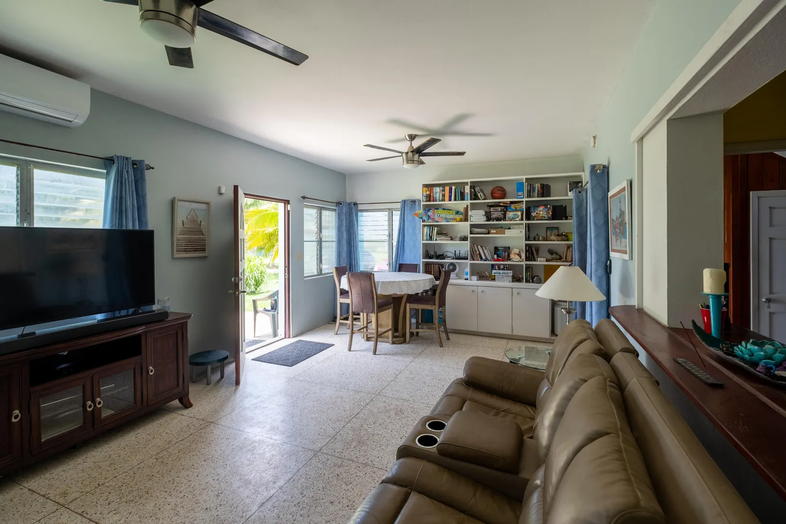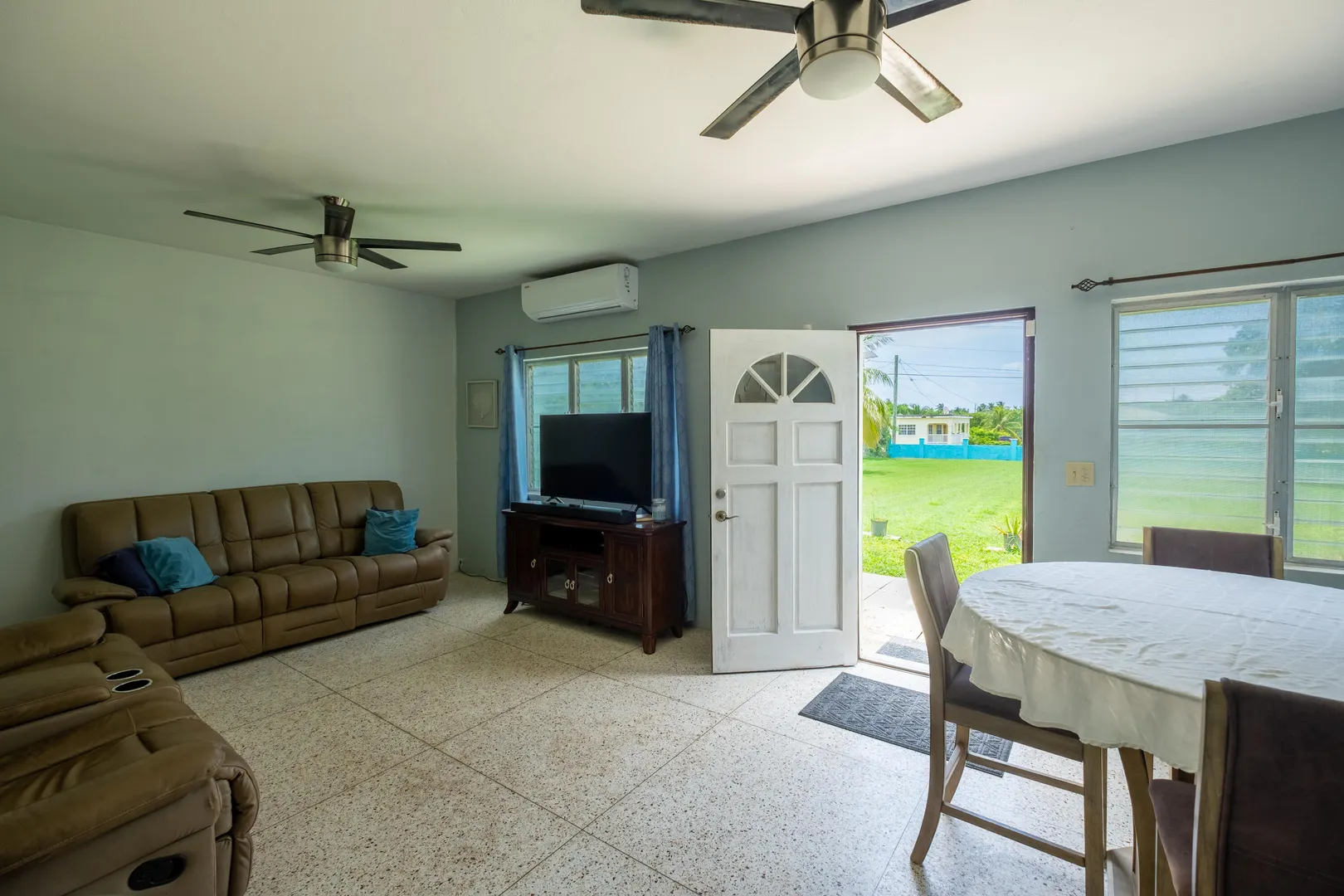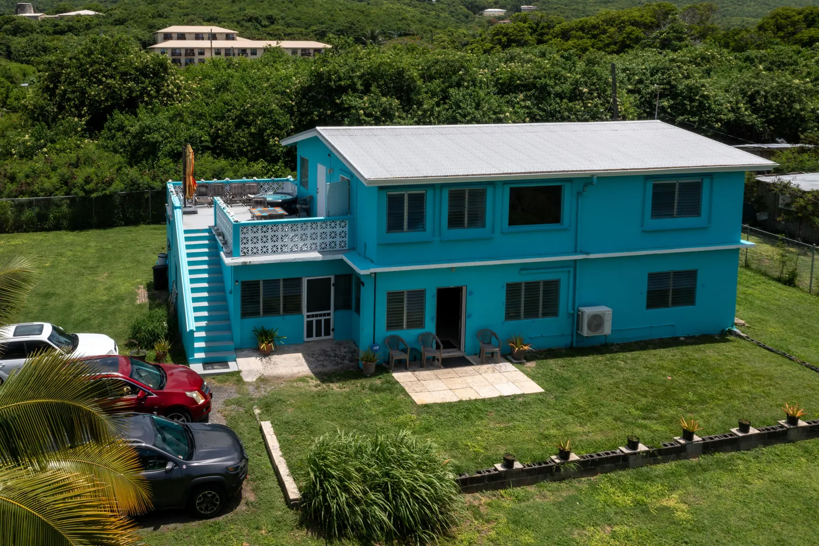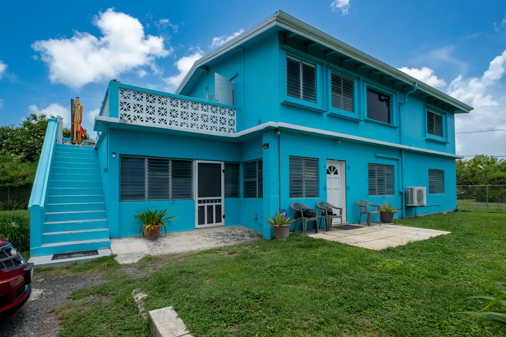 This stunning multi-unit home offers a unique blend of investment opportunity and island-living. Situated on a generous 1.2-acre lot and zoned R3, this property provides endless possibilities for business, expansion, or additional dwelling units.Upstairs Unit: Currently being used as a short term rental, the upper unit features 2 spacious bedrooms and 1 modern bathroom. Guests will love the private entrance and outdoor patio, ensuring a seamless and enjoyable stay. The updated kitchen features mahogany cabinetry and sleek finishes to complement the recently remodeled bathroom. Gorgeous terrazzo floors add a touch of elegance and ease of maintenance.Downstairs Unit: Owner-occupied, the lower unit mirrors the charm and sophistication of the upstairs.
