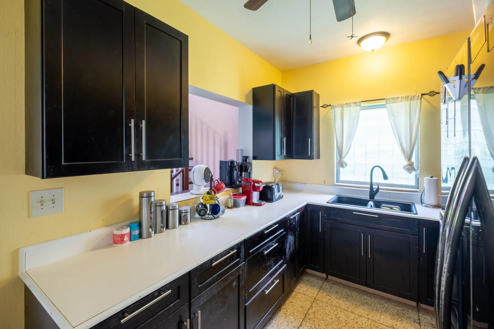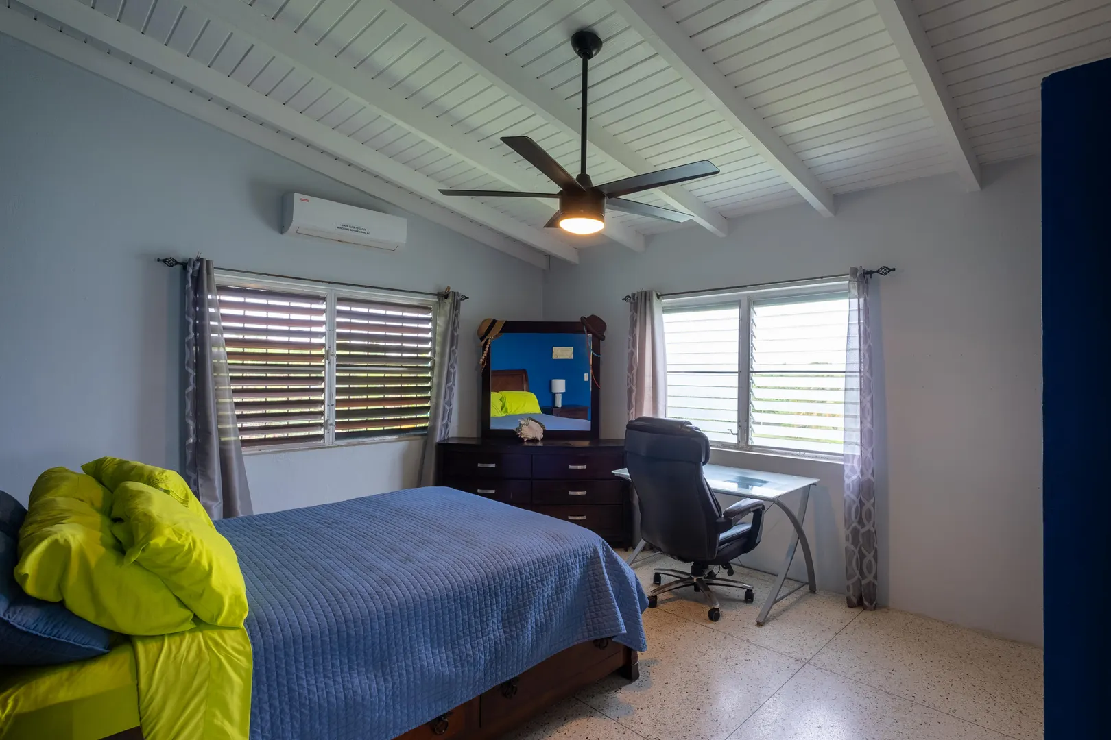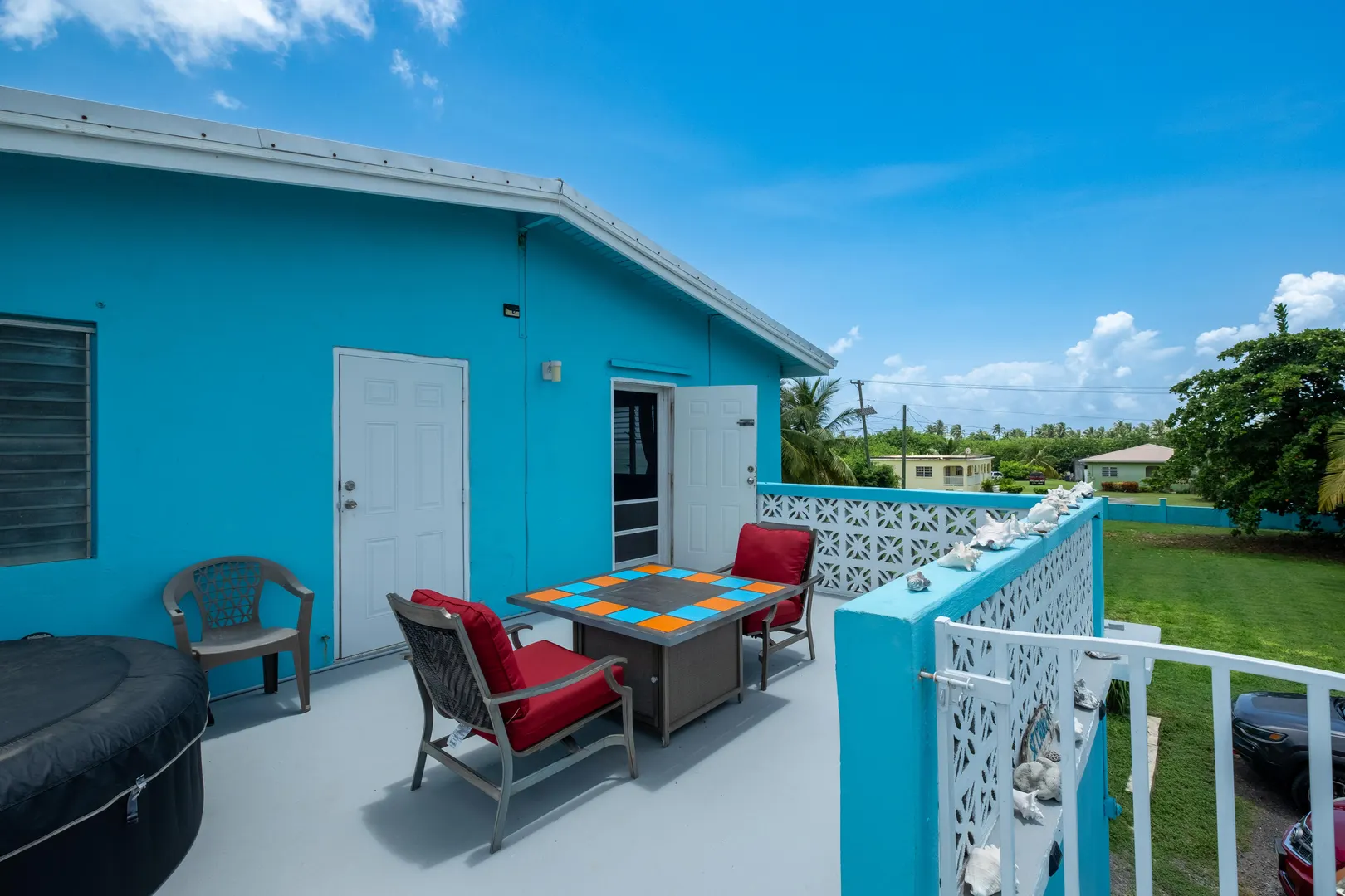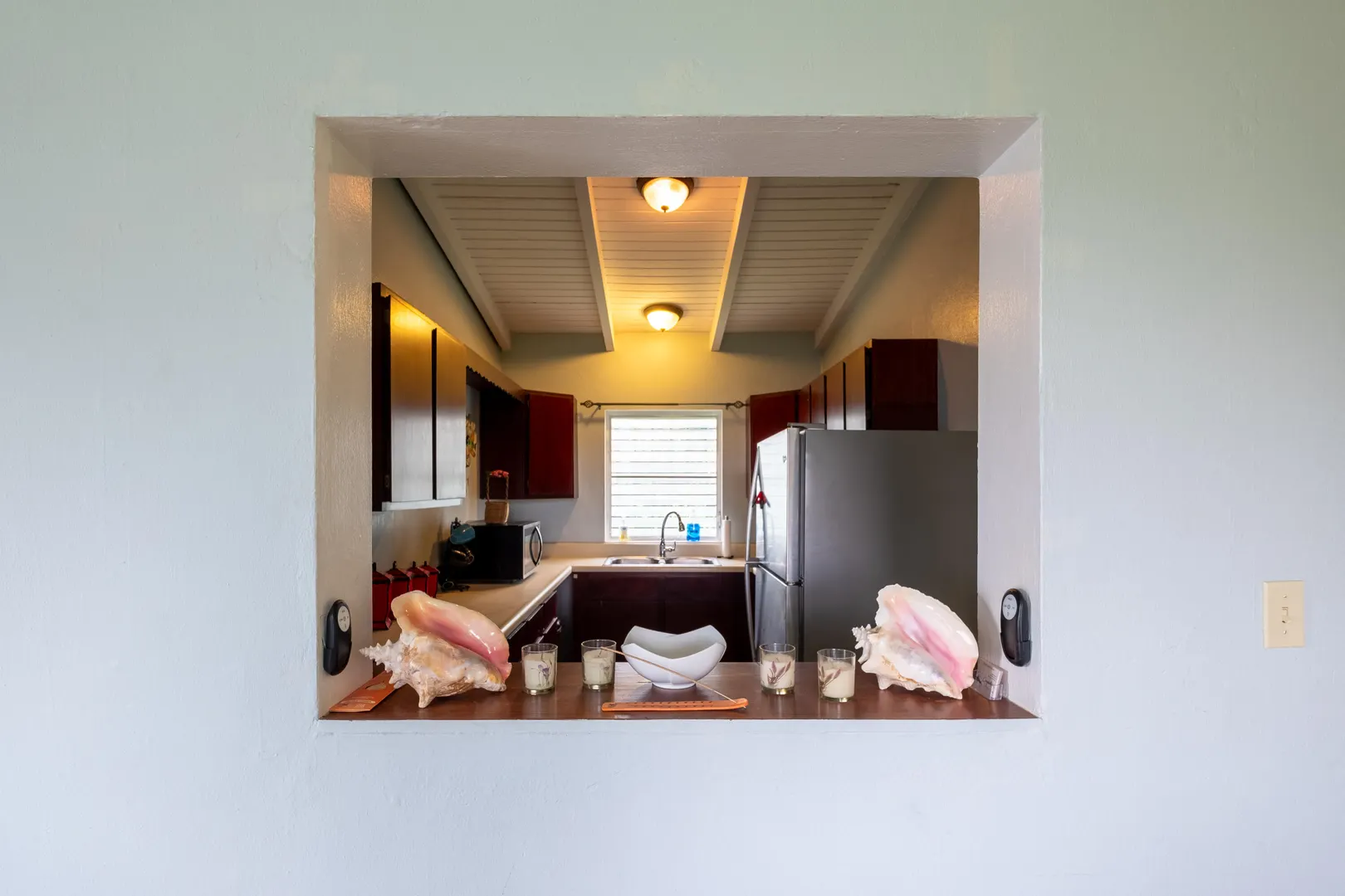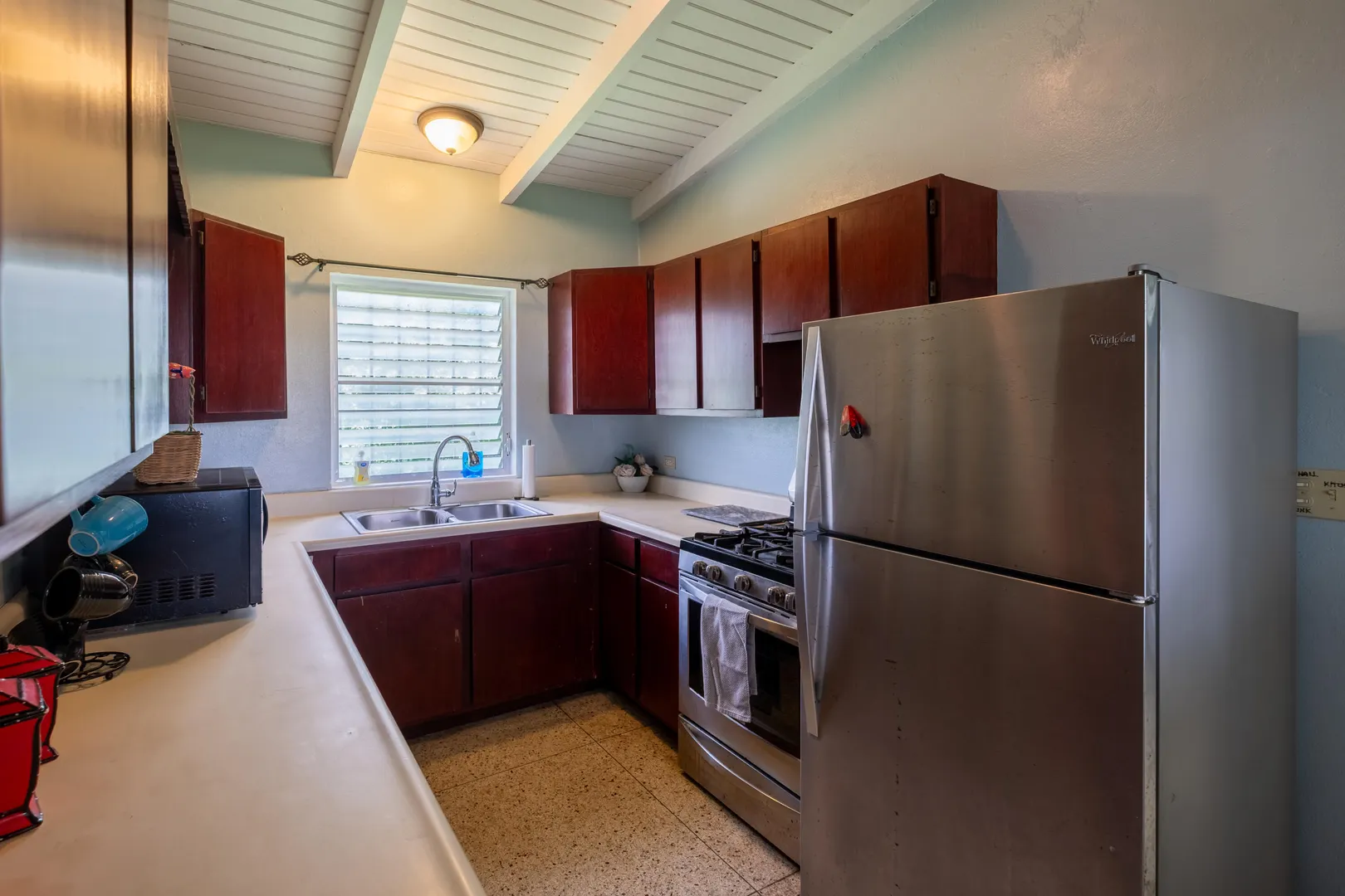 This stunning multi-unit home offers a unique blend of investment opportunity and island-living. Situated on a generous 1.2-acre lot and zoned R3, this property provides endless possibilities for business, expansion, or additional dwelling units.Upstairs Unit: Currently being used as a short term rental, the upper unit features 2 spacious bedrooms and 1 modern bathroom. Guests will love the private entrance and outdoor patio, ensuring a seamless and enjoyable stay. The updated kitchen features mahogany cabinetry and sleek finishes to complement the recently remodeled bathroom. Gorgeous terrazzo floors add a touch of elegance and ease of maintenance.Downstairs Unit: Owner-occupied, the lower unit mirrors the charm and sophistication of the upstairs.