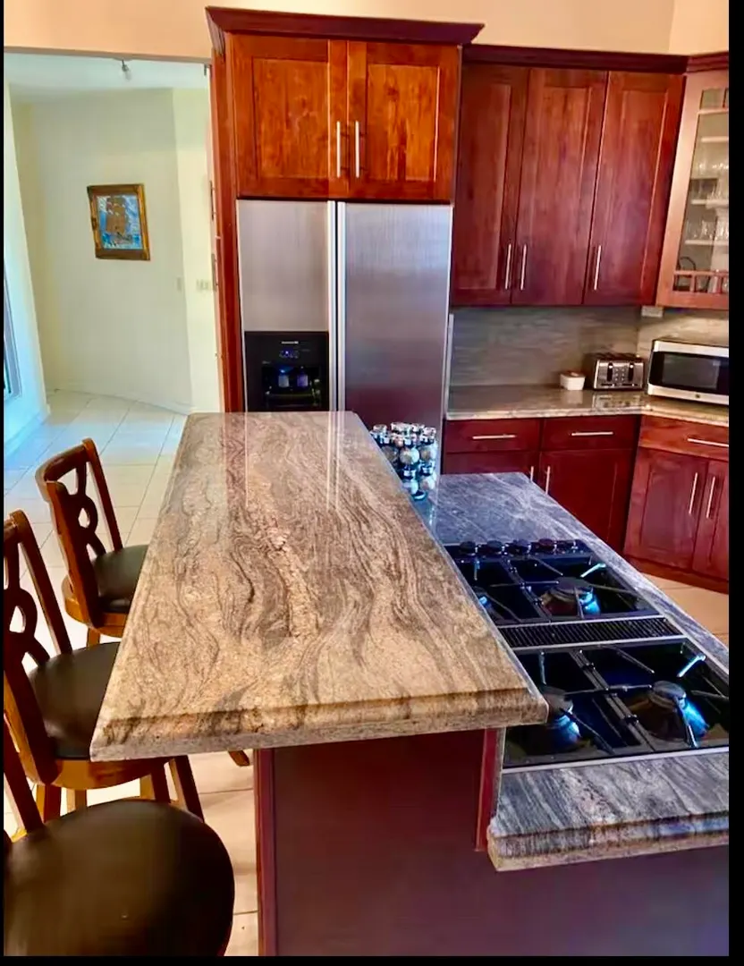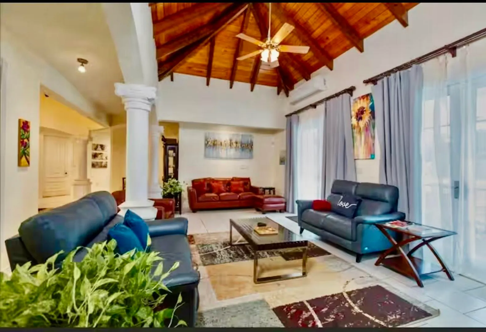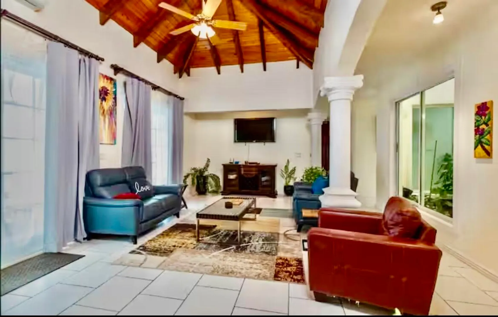 Discover the tranquility of this spectacular retreat, perfectly designed for both private enjoyment and shared experiences with family and friends. Ideally located near the highlights of St. Croix, the property offers easy access to pristine beaches, cultural landmarks, and unforgettable Caribbean adventures.This beautifully furnished home features four spacious bedrooms and three and a half bathrooms, along with a private one-bedroom apartment that is ideal for generating rental income or hosting guests. Surrounded by lush fruit trees, the residence offers dual views of rolling green hills and the sparkling Caribbean Sea. From the property, you can take in breathtaking vistas of Salt River Bay National Historical Park, where history and nature combine in spectacular fashion.