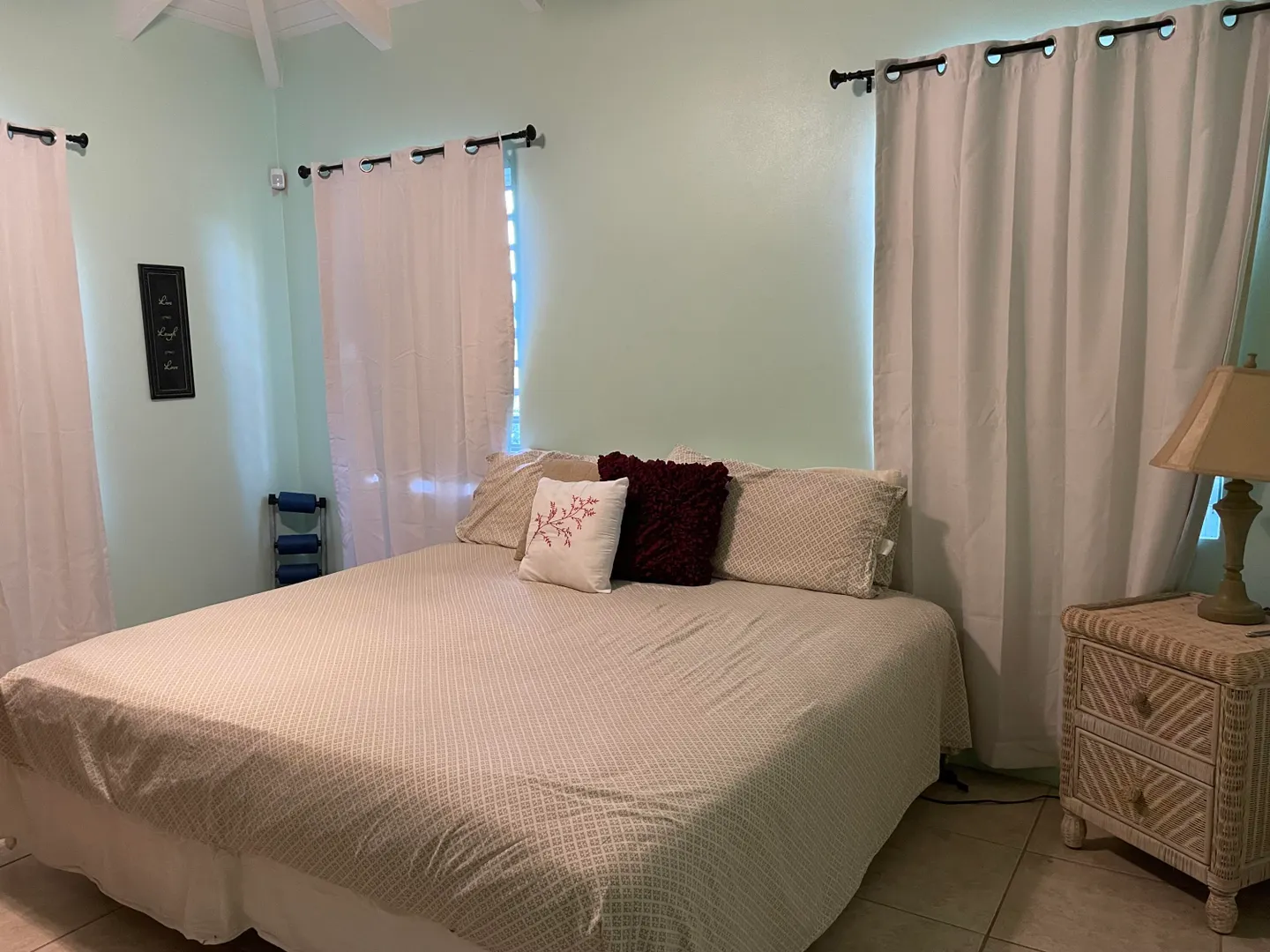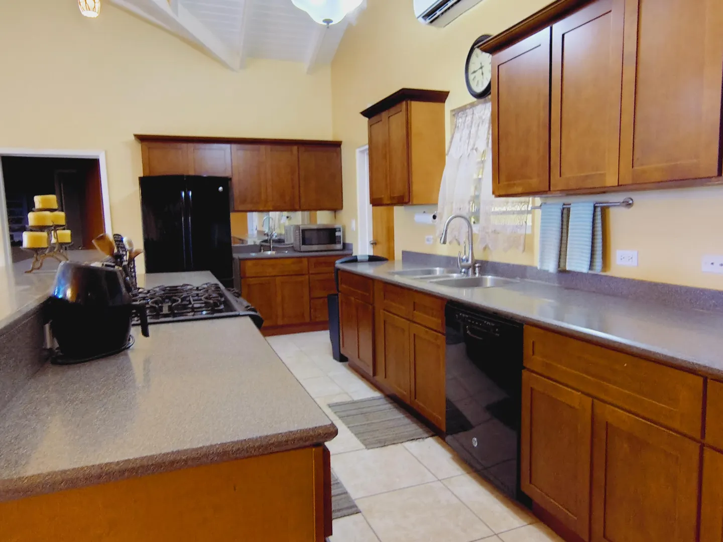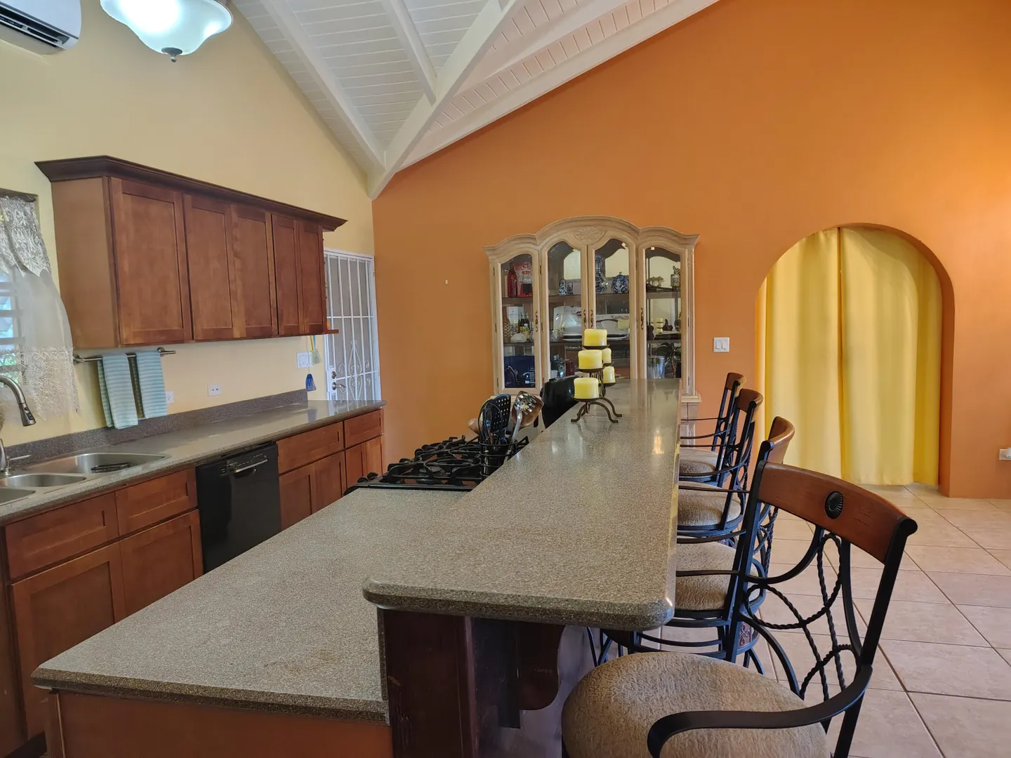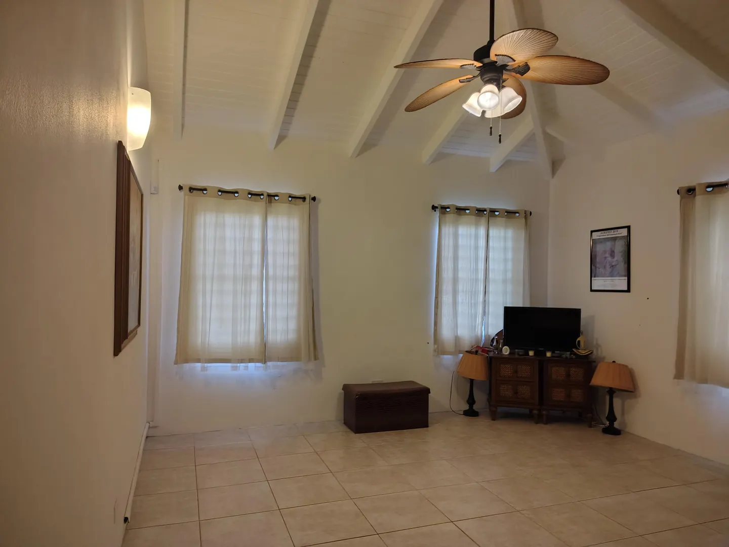 Recently painted three‑bedroom, two‑bath home offers a bright welcome from the moment you step in. High ceilings throughout enhance natural light and create an open, airy atmosphere. Tropical‑style ceiling fans with sculpted leaf blades add comfort and character to all three bedrooms. The primary suite sits privately to one side with a walk‑in closet and modern double‑vanity bathroom. The kitchen connects conveniently to the laundry area, and a 14 KW generator with a propane tank provides reliable backup power. Out back, a small garden area and a mature ackee tree, iconic to Jamaica add charm and cultural appeal to the yard.