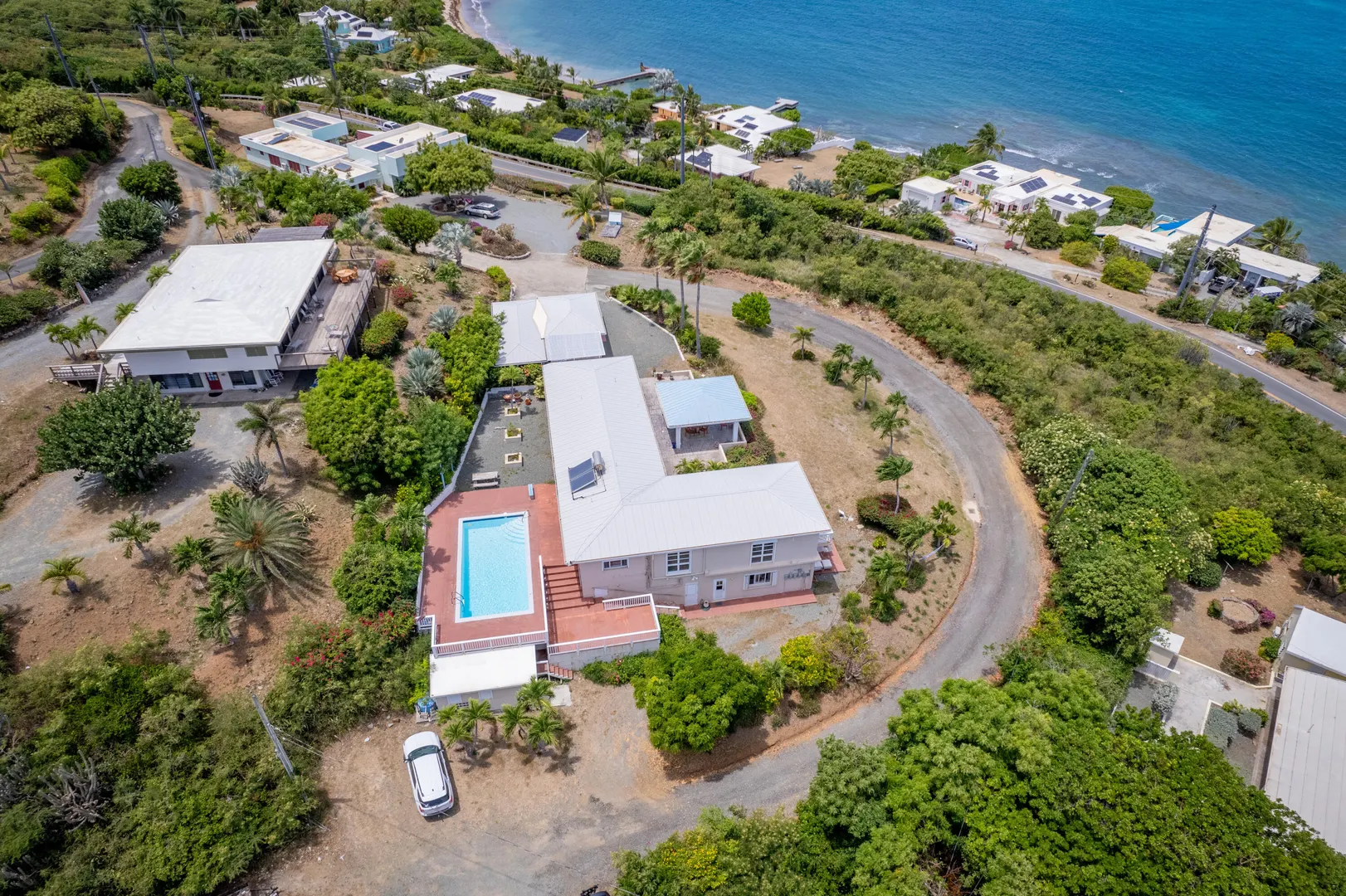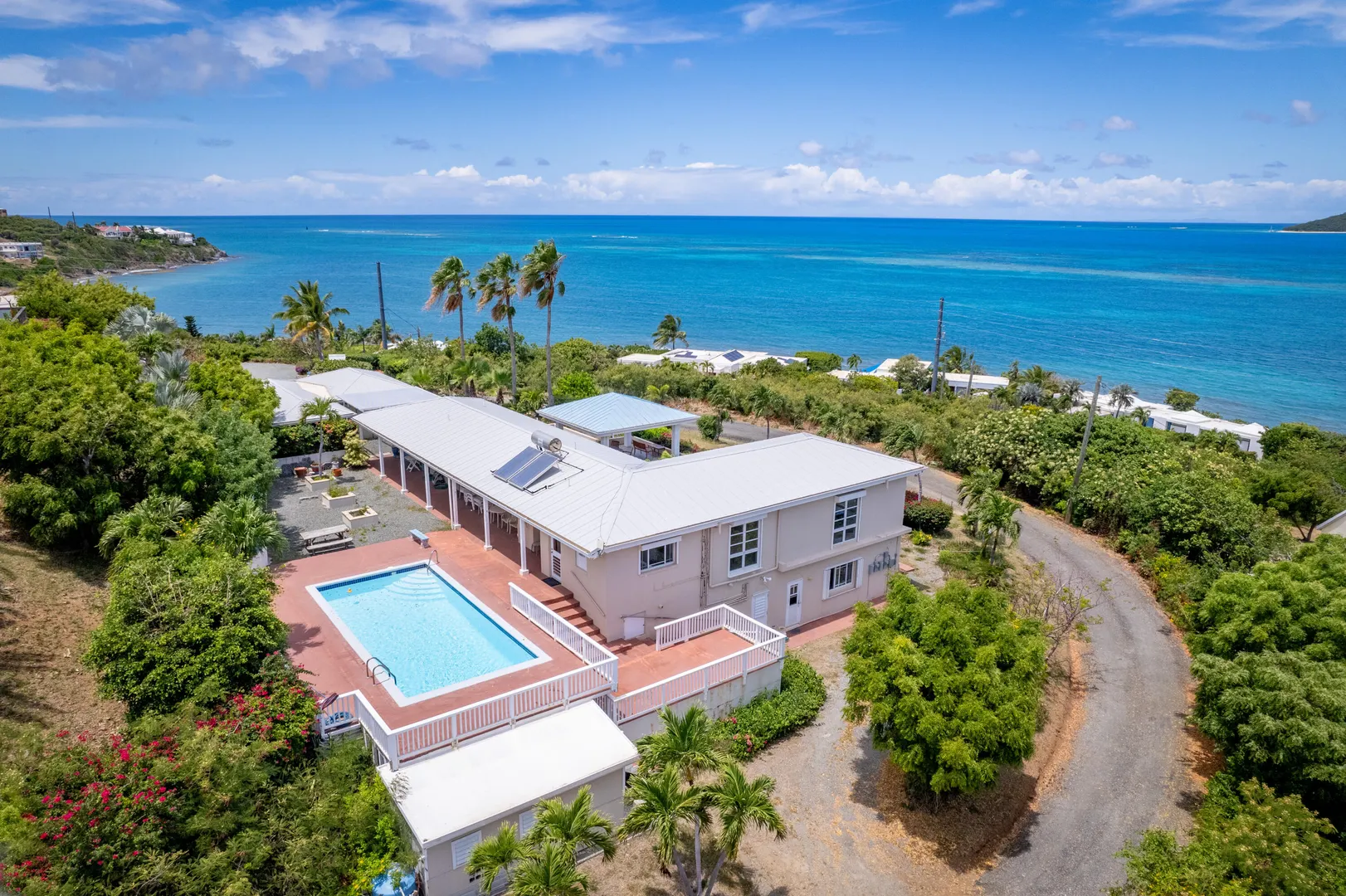 Casa del Mar! Perched on a gentle slope overlooking the blues of the Caribbean Sea and Buck Island, a special villa awaits its next owner. This beautiful villa offers 3-bedroom, 3.5-bathrooms on the main level with a studio apartment below the living area with its own access and separately metered. The stunning Buck Island views from all bedrooms and the front gallery are incredible. The refreshing pool with walk-around pool deck is perfect for entertaining and enjoying our sunny days. Located on the point of a ridgeline, in the coveted Cotton Valley Shores neighborhood, this exclusive villa enjoys the refreshing trade winds that keep the air cool and comfortable year-round. The spacious layout of the property provides ample room for entertaining, with open living spaces that flow