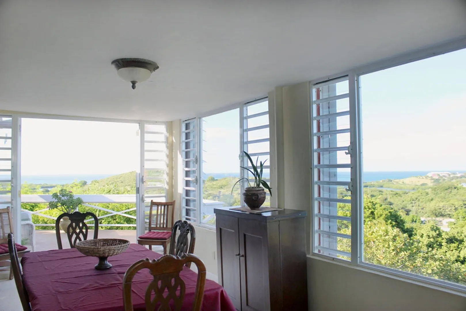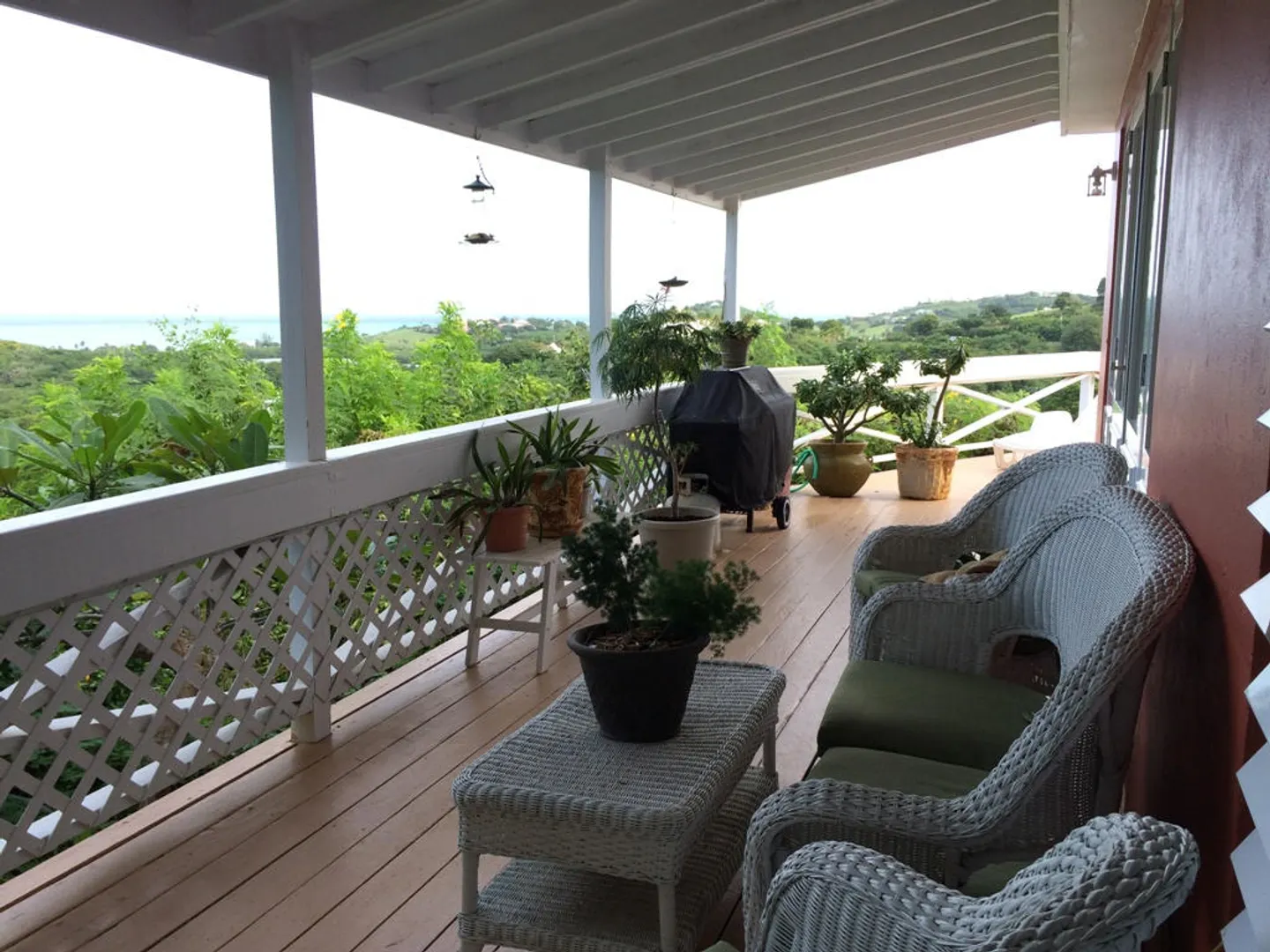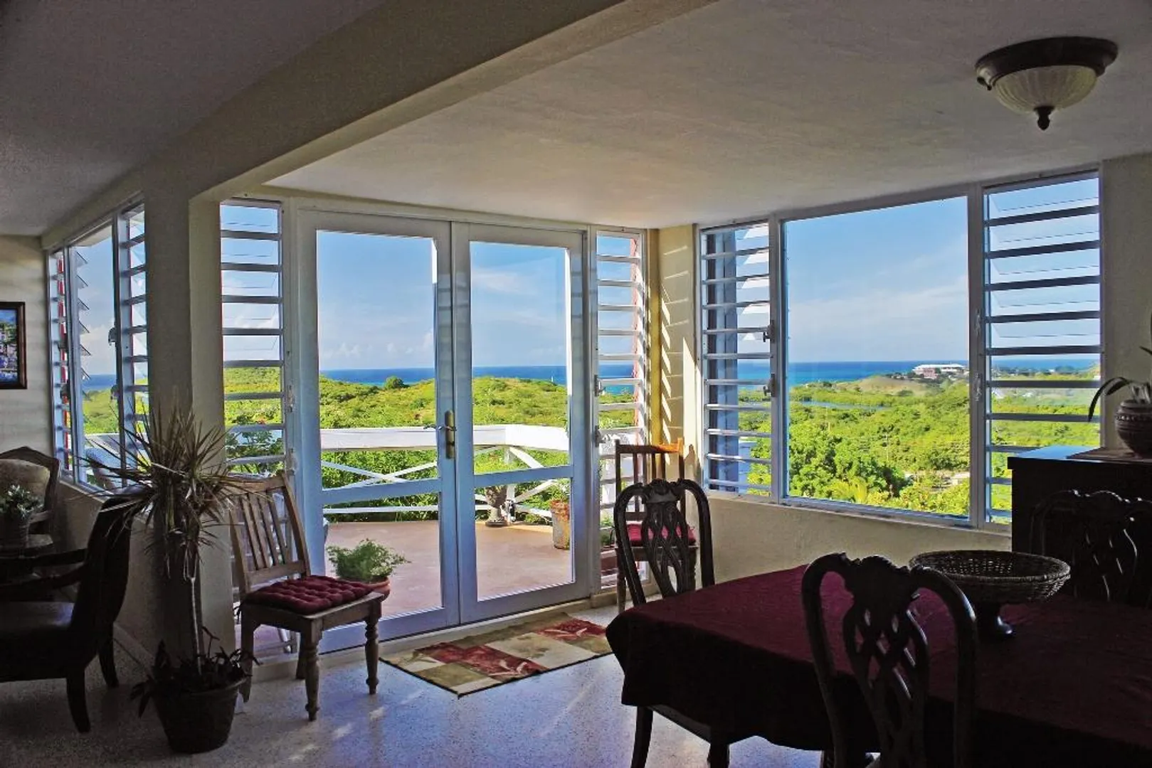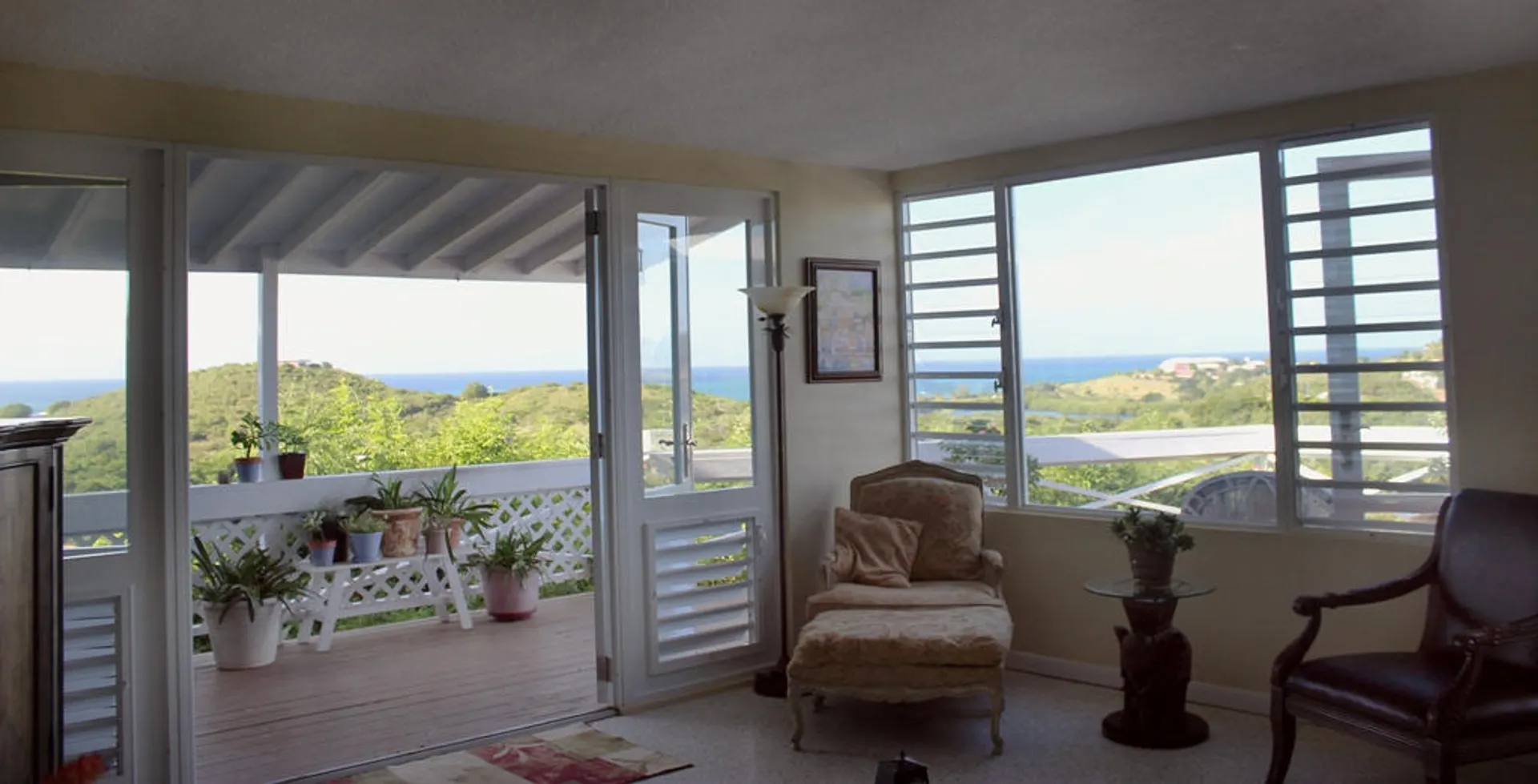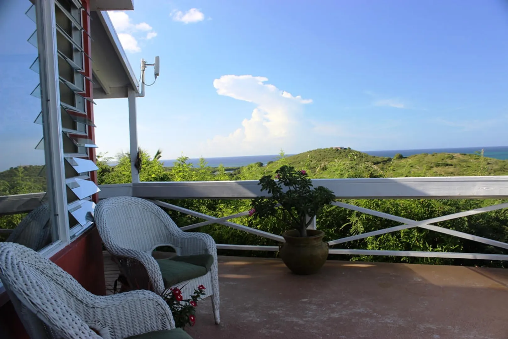 Two magnificent flamboyant trees flank the concrete driveway that leads to this affordable three-bedroom, two-bath home with million dollar panoramic views from Christiansted Harbor to the rolling hills of the Buccaneer golf course. On the crest of the hill in Boetzberg, the location receives cooling easterly trade winds and has a good sized kid and pet friendly rear yard.The home has a large deck/patio area which is wonderful for enjoying the sea view and watching sailboats below. There is a covered portion for relaxing in the shade or dining al fresco and areas that get sun if you want to just catch some rays. The entire deck area has French doors connecting it to the main living area for great flow and easy entertaining. Finish the downstairs apartment and you'll add room for overflow guests, an older parent or a rental unit for extra income. Is also well suited for an in home office or art studio. Plumbing and electrical have been roughed in already. CONSTRUCTION DETAILS: The bulk of the home is concrete including the roof with the exception of the utility room and master bedroom sitting areas which are wood. The downstairs will add an additional 585 square feet of living space when finished. The corners and floor of the downstairs are poured concrete and there is reinforced rebar in the corners as well. RECENT NOTABLE MAINTENANCE - All new doors and windows with impact resistant security glass were added in 2010. - Roof power washed and sealed by Clear Water with 3 year guarantee in November 2013 - Cistern was drained, cleaned, and sealed June, 2010 OTHER INFORMATION: * The property has city trash pickup two times per week. * The 5-kilowatt generator on manual switch runs everything in the house except the washer, dryer and hot water heater. * There is a tri-cartridge water treatment system * The home has a cistern and access to city water as well. The lower level of the home only has access to city water. * No known active homeowners' association. FULL PROPERTY DESCRIPTION: Plot 53 Estate Boetzberg, East End Quarter "A", St. Croix USVIcomprised of 0.3301 US acres more or less as more fully shown on OLG drawing no. 1229-C dated 1/29/63 "House is on Plot 53" Plot 85 and Plot 90 Estate Saint Peters, East End Quarter "A", St. Croix USVI comprised of 0.0123 and 0.0239 US acres more or less, respectively as more fully shown on OLG drawing no. 5136 dated 3/18/99 East End Quarter "A", St. Croix USVI ITEMS THAT ARE NOT INCLUDED: -1 Book Shelf in Bedroom #3 -Sleigh Bed in Bedroom #3 -2 Book Shelves in Bedroom #2 -Half Moon Table in Hallway -Writers Desk in Master Bedroom Sitting Room -All Framed Artwork -All Items in Apartment are not included with the exception of Toilet, Shower, and Stove.
