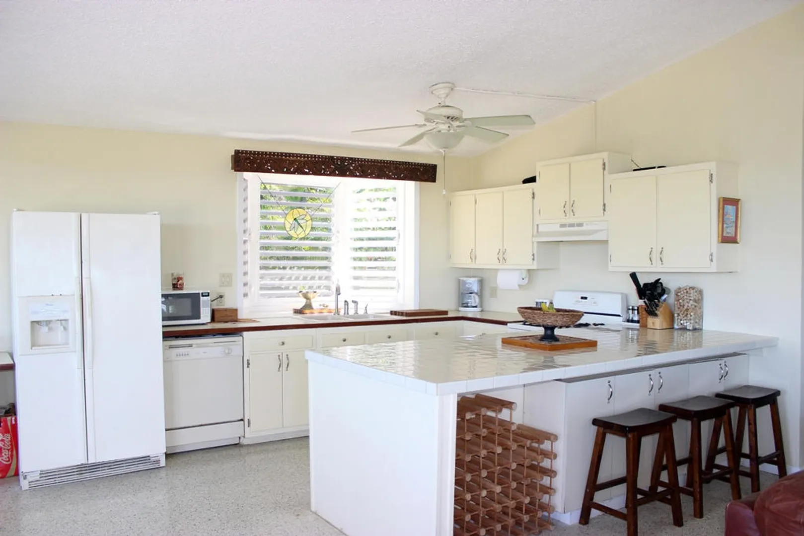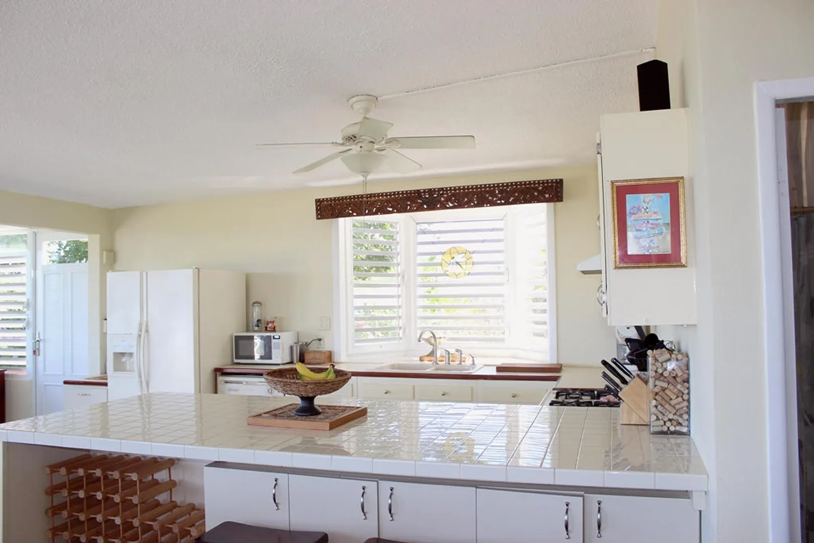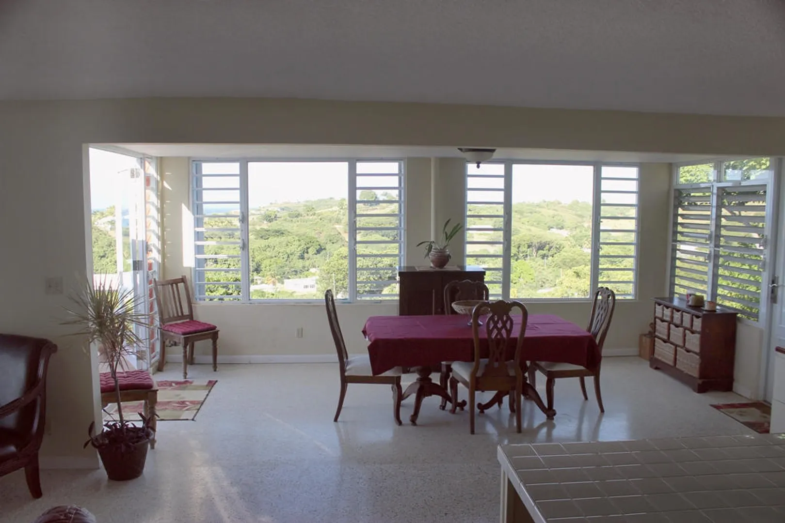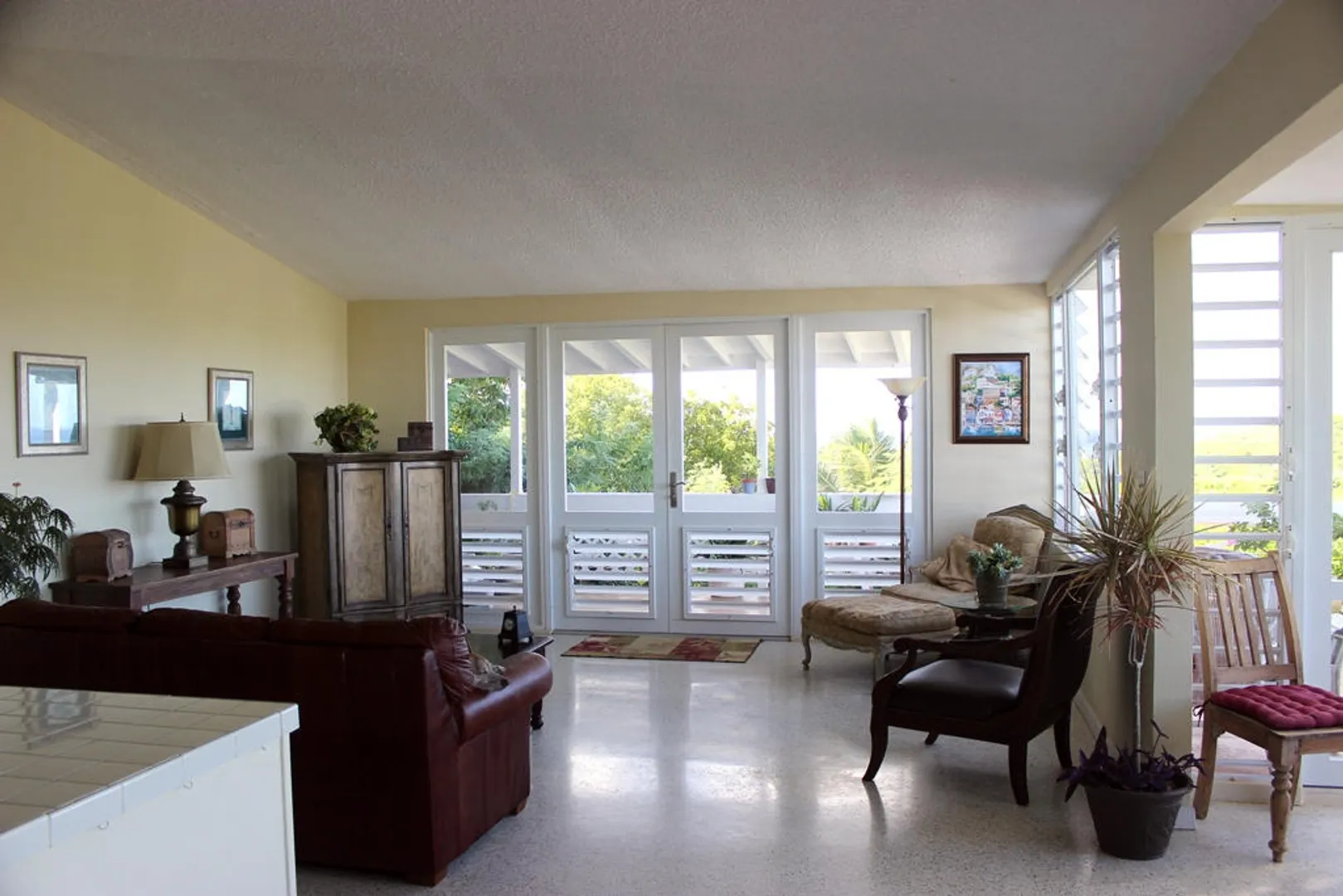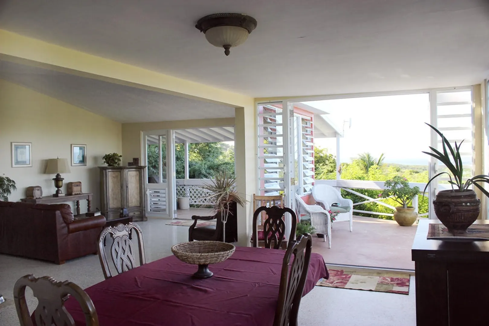 Two magnificent flamboyant trees flank the concrete driveway that leads to this affordable three-bedroom, two-bath home with million dollar panoramic views from Christiansted Harbor to the rolling hills of the Buccaneer golf course. On the crest of the hill in Boetzberg, the location receives cooling easterly trade winds and has a good sized kid and pet friendly rear yard.The home has a large deck/patio area which is wonderful for enjoying the sea view and watching sailboats below. There is a covered portion for relaxing in the shade or dining al fresco and areas that get sun if you want to just catch some rays. The entire deck area has French doors connecting it to the main living area for great flow and easy entertaining. Finish the downstairs apartment and you'll add room for overflow guests, an older parent or a rental unit for extra income. Is also well suited for an in home office or art studio. Plumbing and electrical have been roughed in already. CONSTRUCTION DETAILS: The bulk of the home is concrete including the roof with the exception of the utility room and master bedroom sitting areas which are wood. The downstairs will add an additional 585 square feet of living space when finished. The corners and floor of the downstairs are poured concrete and there is reinforced rebar in the corners as well. RECENT NOTABLE MAINTENANCE - All new doors and windows with impact resistant security glass were added in 2010. - Roof power washed and sealed by Clear Water with 3 year guarantee in November 2013 - Cistern was drained, cleaned, and sealed June, 2010 OTHER INFORMATION: * The property has city trash pickup two times per week. * The 5-kilowatt generator on manual switch runs everything in the house except the washer, dryer and hot water heater. * There is a tri-cartridge water treatment system * The home has a cistern and access to city water as well. The lower level of the home only has access to city water. * No known active homeowners' association. FULL PROPERTY DESCRIPTION: Plot 53 Estate Boetzberg, East End Quarter "A", St. Croix USVIcomprised of 0.3301 US acres more or less as more fully shown on OLG drawing no. 1229-C dated 1/29/63 "House is on Plot 53" Plot 85 and Plot 90 Estate Saint Peters, East End Quarter "A", St. Croix USVI comprised of 0.0123 and 0.0239 US acres more or less, respectively as more fully shown on OLG drawing no. 5136 dated 3/18/99 East End Quarter "A", St. Croix USVI ITEMS THAT ARE NOT INCLUDED: -1 Book Shelf in Bedroom #3 -Sleigh Bed in Bedroom #3 -2 Book Shelves in Bedroom #2 -Half Moon Table in Hallway -Writers Desk in Master Bedroom Sitting Room -All Framed Artwork -All Items in Apartment are not included with the exception of Toilet, Shower, and Stove.
