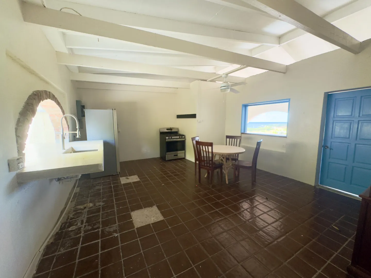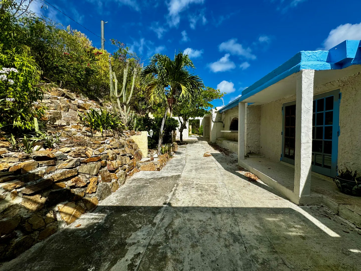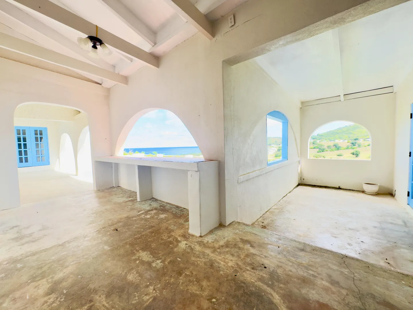 Welcome to your dream oasis waiting for you with the opportunity to finish the renovations exactly as you envision! The main home features three bedrooms with ensuite bathrooms, all with picturesque views over The Reef golf course and to The St. Croix Yacht Club. The efficiency apartment has a private entrance with the potential for equally impressive views. The generously sized primary bedroom and second bedroom's French doors open up to an inviting open gallery, creating a seamless connection between indoor and outdoor living spaces. The kitchen features open pass-throughs to both the entry courtyard and the gallery. This thoughtful design not only enhances the flow of natural light but also makes entertaining a breeze.