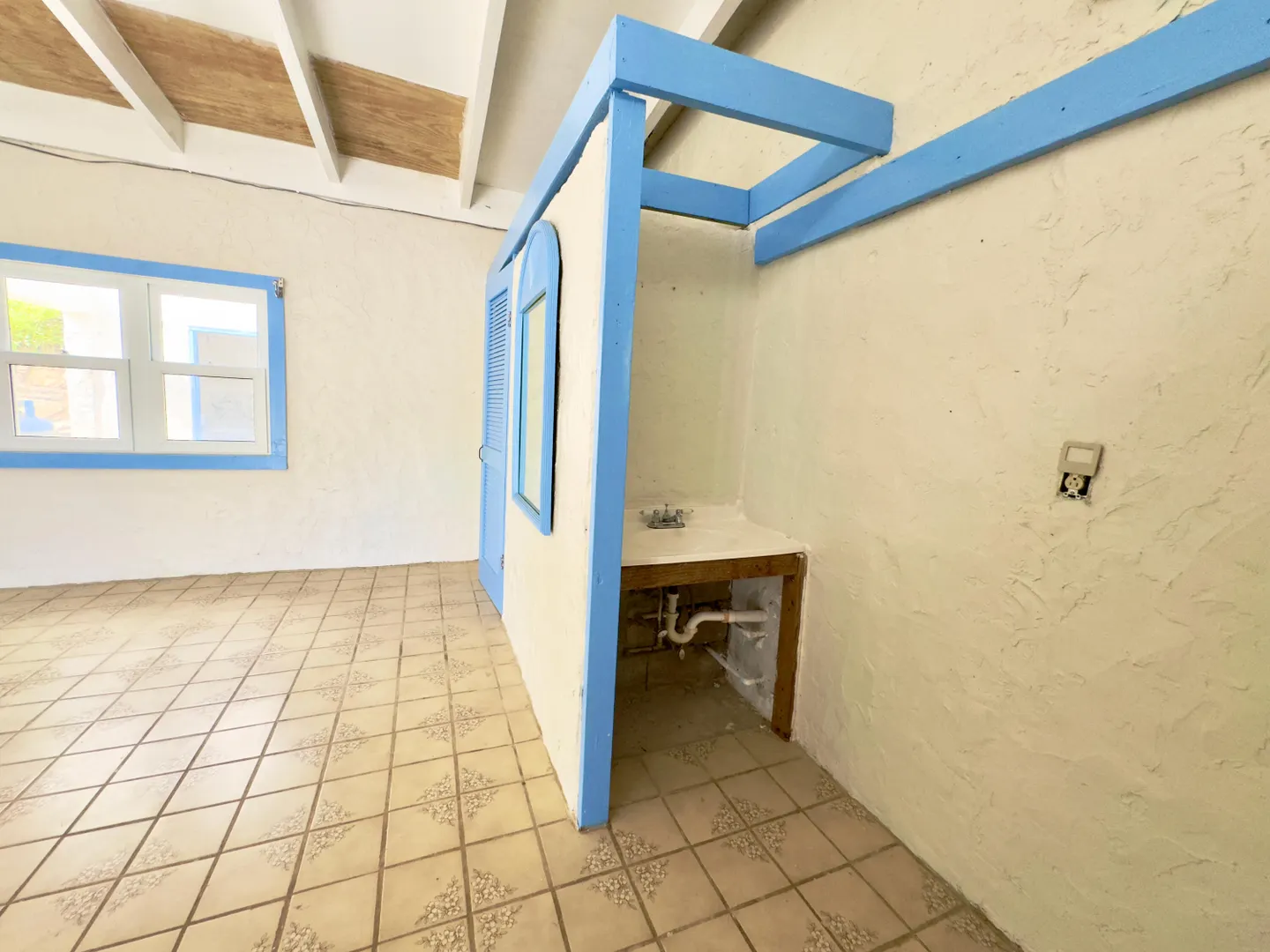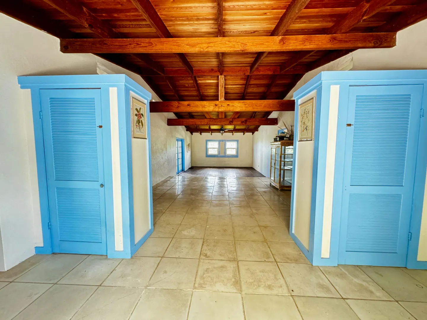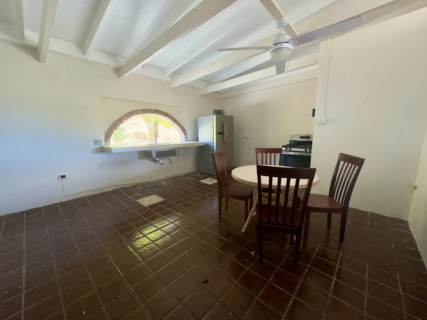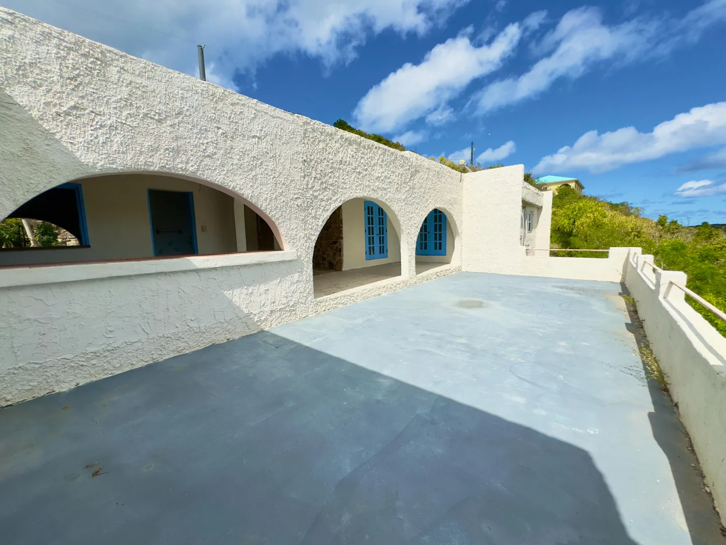 Welcome to your dream oasis waiting for you with the opportunity to finish the renovations exactly as you envision! The main home features three bedrooms with ensuite bathrooms, all with picturesque views over The Reef golf course and to The St. Croix Yacht Club. The efficiency apartment has a private entrance with the potential for equally impressive views. The generously sized primary bedroom and second bedroom's French doors open up to an inviting open gallery, creating a seamless connection between indoor and outdoor living spaces. The kitchen features open pass-throughs to both the entry courtyard and the gallery. This thoughtful design not only enhances the flow of natural light but also makes entertaining a breeze.
