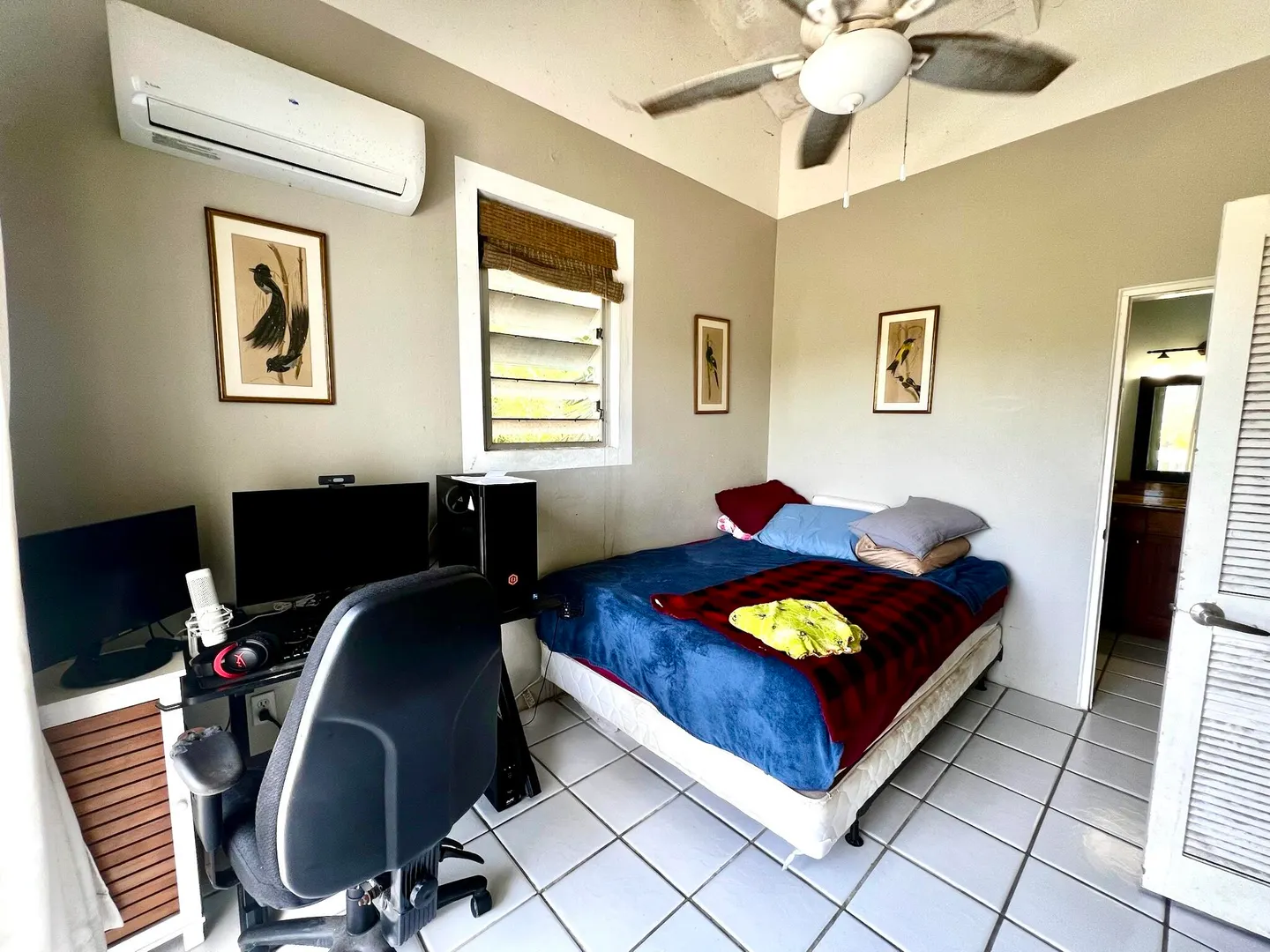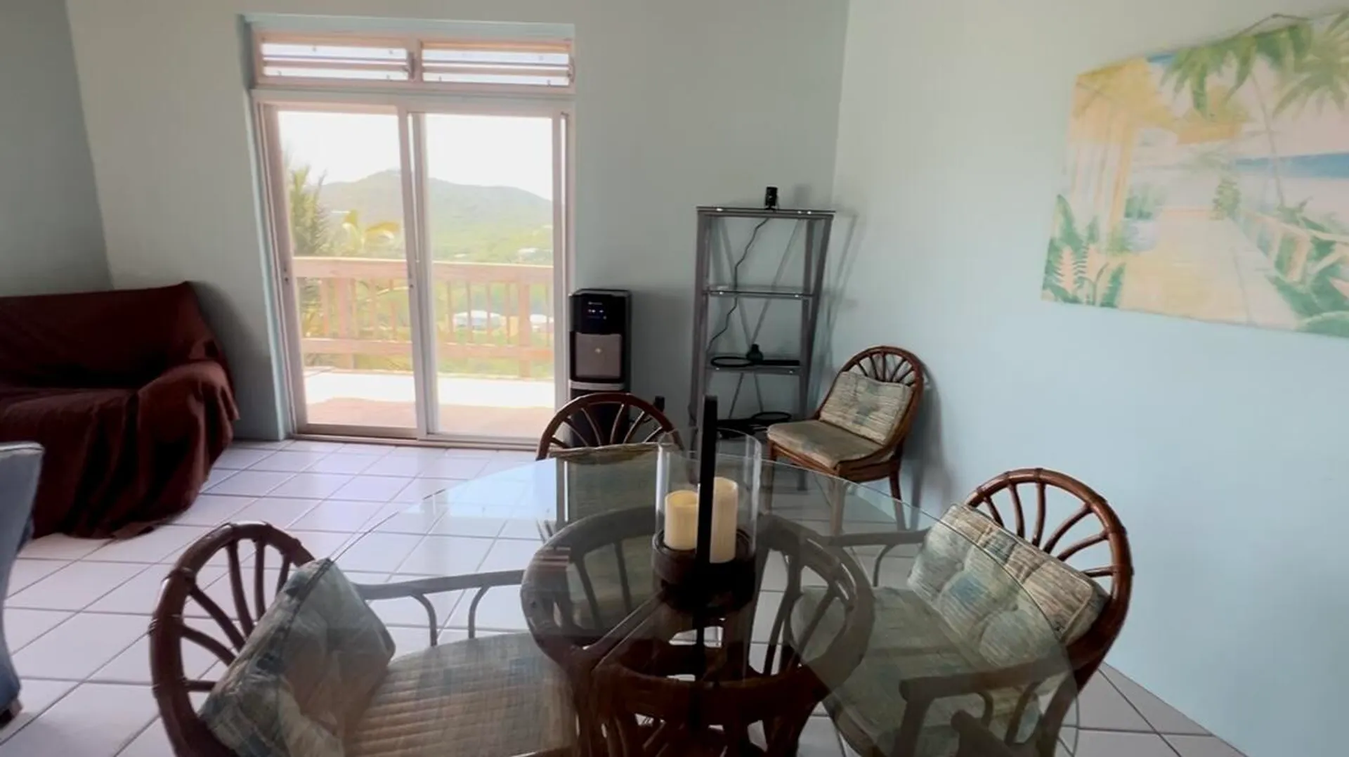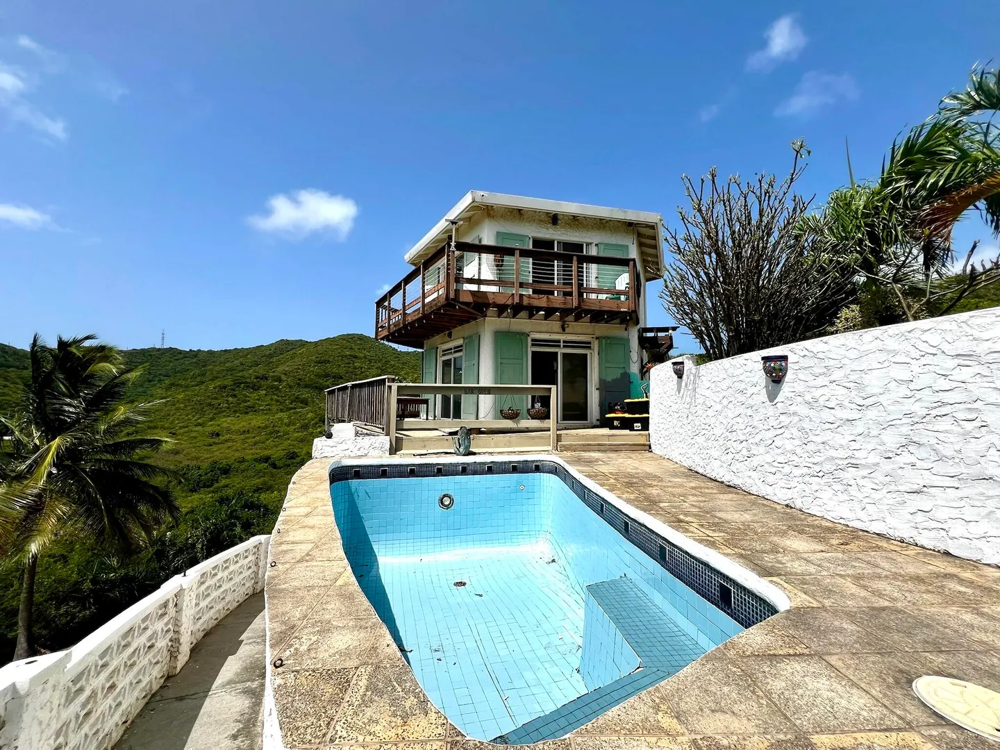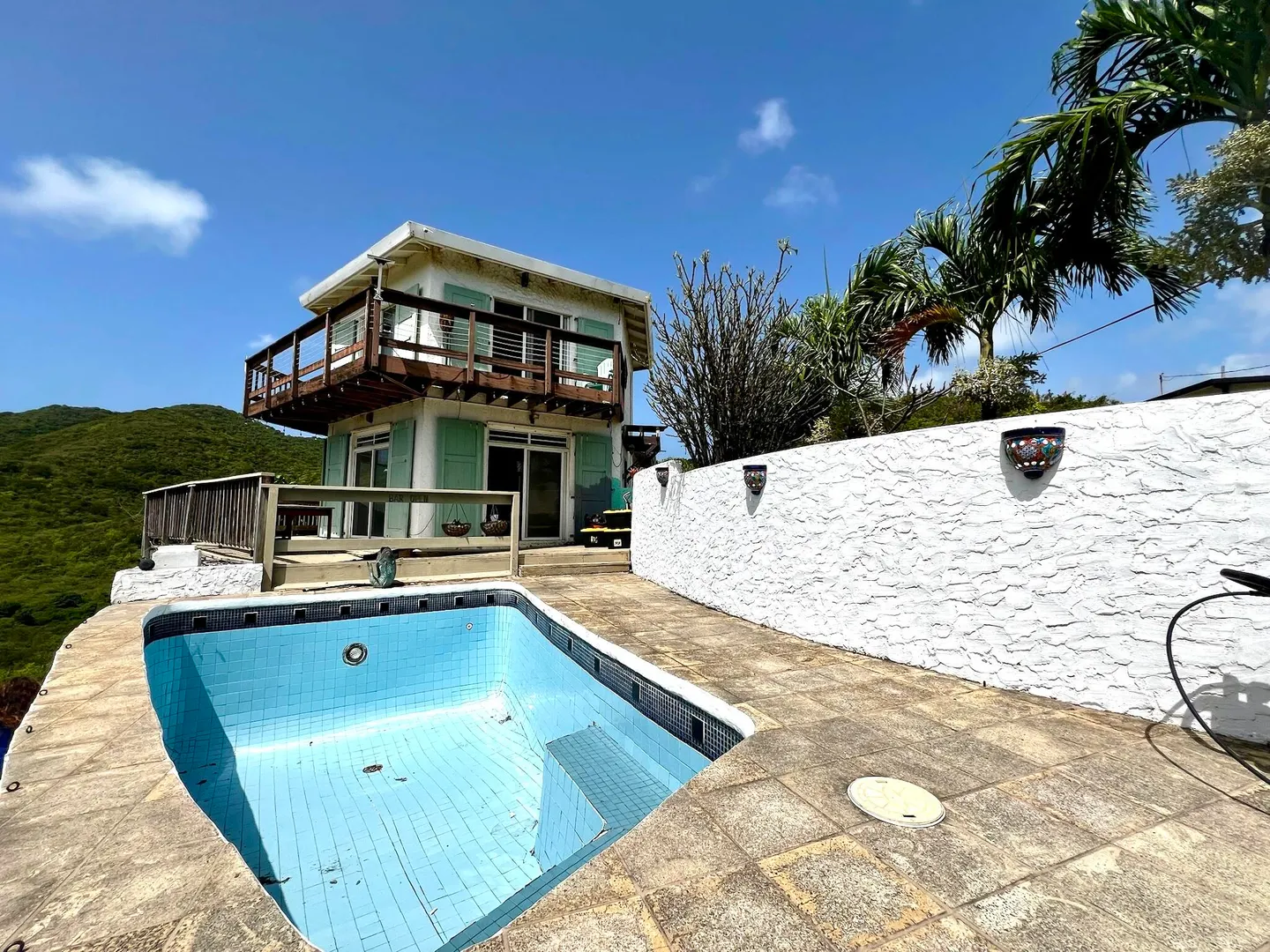This spacious East End property located on half an acre is uniquely suited for anyone with a large family or seeking a vacation rental, corporate retreat, multi-family dwelling, separate space for rental income or plenty of room to stretch out and relax in paradise. The 2623 sq ft 3BR/3BA main house has views of Buck Island, the iconic Cotton Valley sugar mill and gorgeous green valley views. The main house with soaring cypress ceilings has a large living/dining/kitchen area that opens to the fun pool deck offering panoramic views including Buck Island. On this same level there are two bedrooms and two baths (one en suite with granite countertop and mahogany and the other has a unique open atrium) and each bedroom opens to the deck and views. The primary suite, on the upper level,complete with a full bath and walk-in closet, is accessed via spiral staircase and spans the top level of the main house. You'll feel like royalty taking in the sweeping sea and pastoral views from the private bedroom's wrap-around deck.