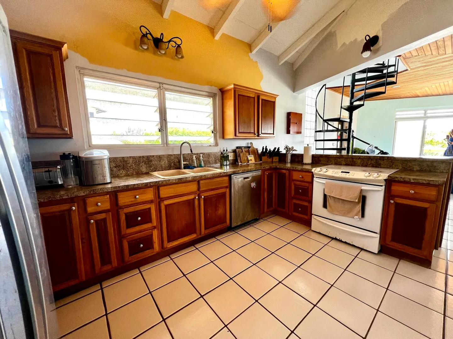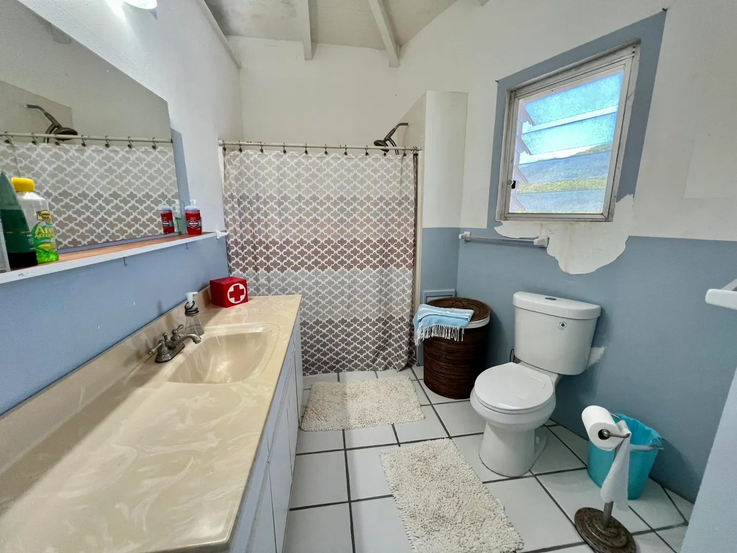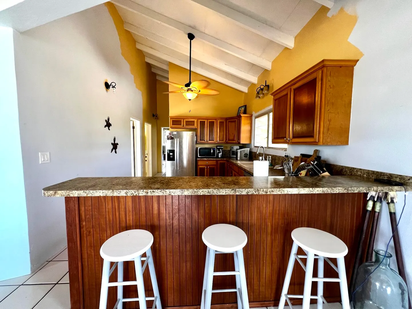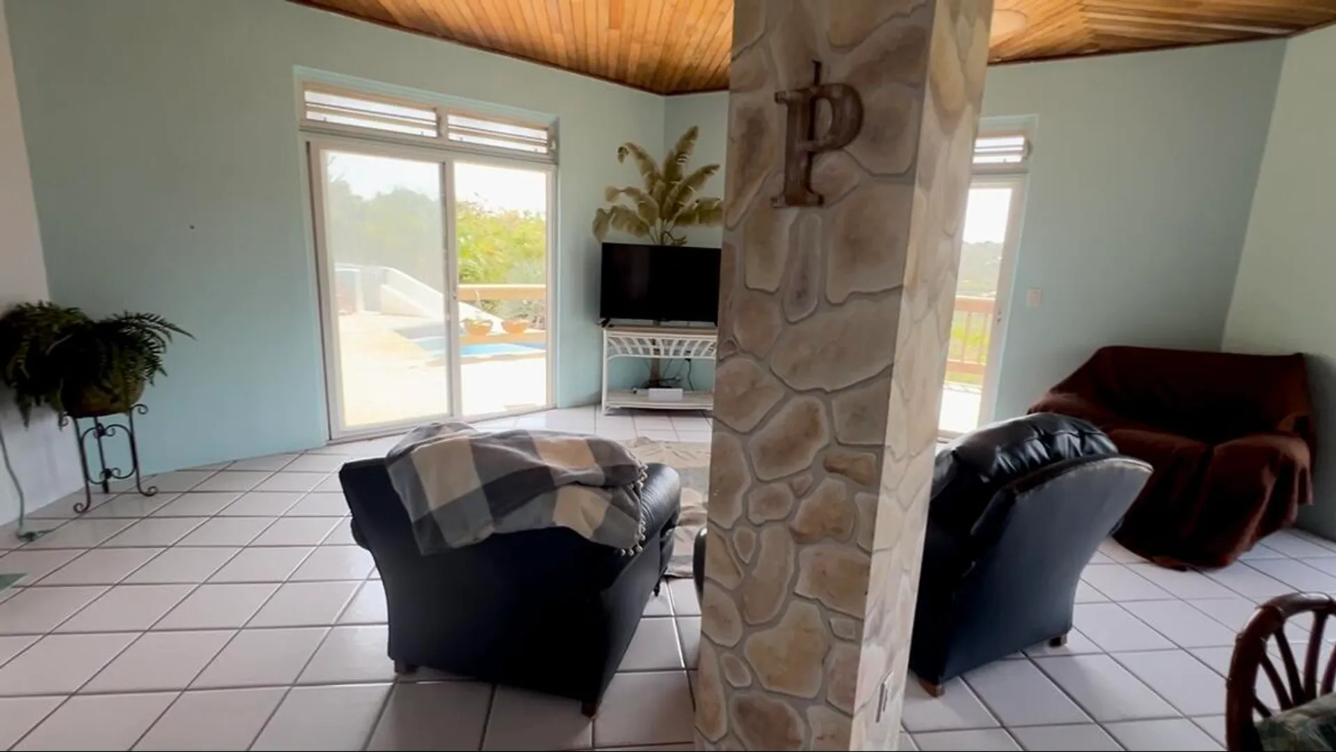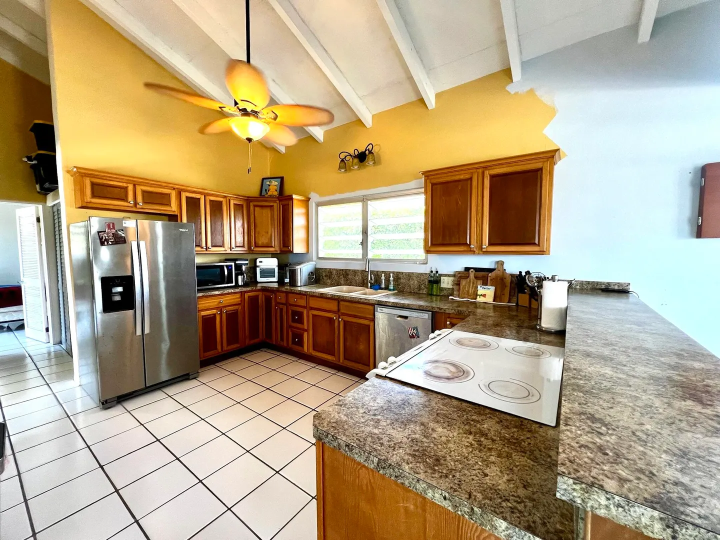 This spacious East End property located on half an acre is uniquely suited for anyone with a large family or seeking a vacation rental, corporate retreat, multi-family dwelling, separate space for rental income or plenty of room to stretch out and relax in paradise. The 2623 sq ft 3BR/3BA main house has views of Buck Island, the iconic Cotton Valley sugar mill and gorgeous green valley views. The main house with soaring cypress ceilings has a large living/dining/kitchen area that opens to the fun pool deck offering panoramic views including Buck Island. On this same level there are two bedrooms and two baths (one en suite with granite countertop and mahogany and the other has a unique open atrium) and each bedroom opens to the deck and views. The primary suite, on the upper level,complete with a full bath and walk-in closet, is accessed via spiral staircase and spans the top level of the main house. You'll feel like royalty taking in the sweeping sea and pastoral views from the private bedroom's wrap-around deck.