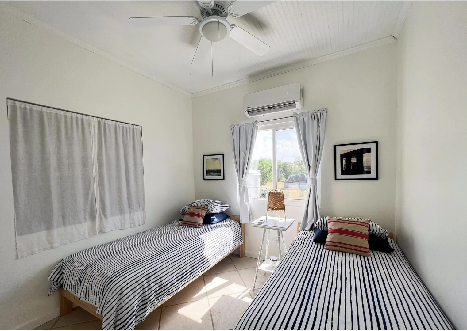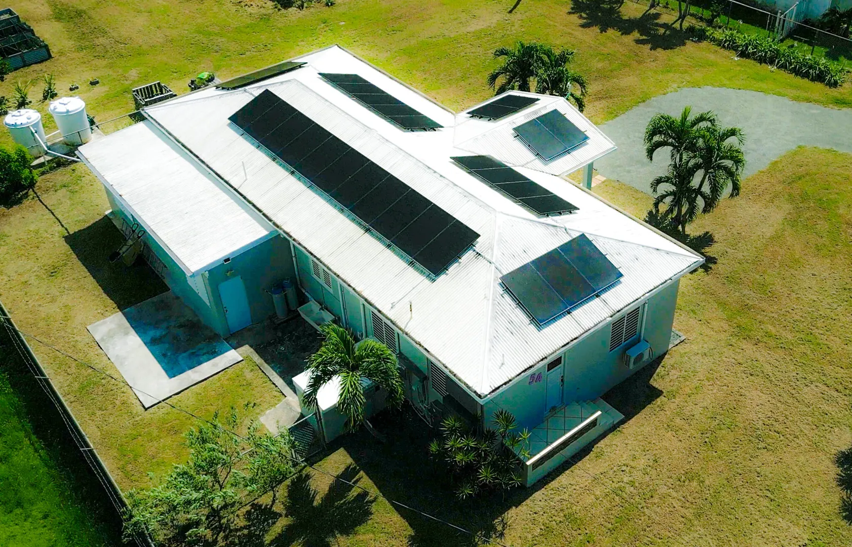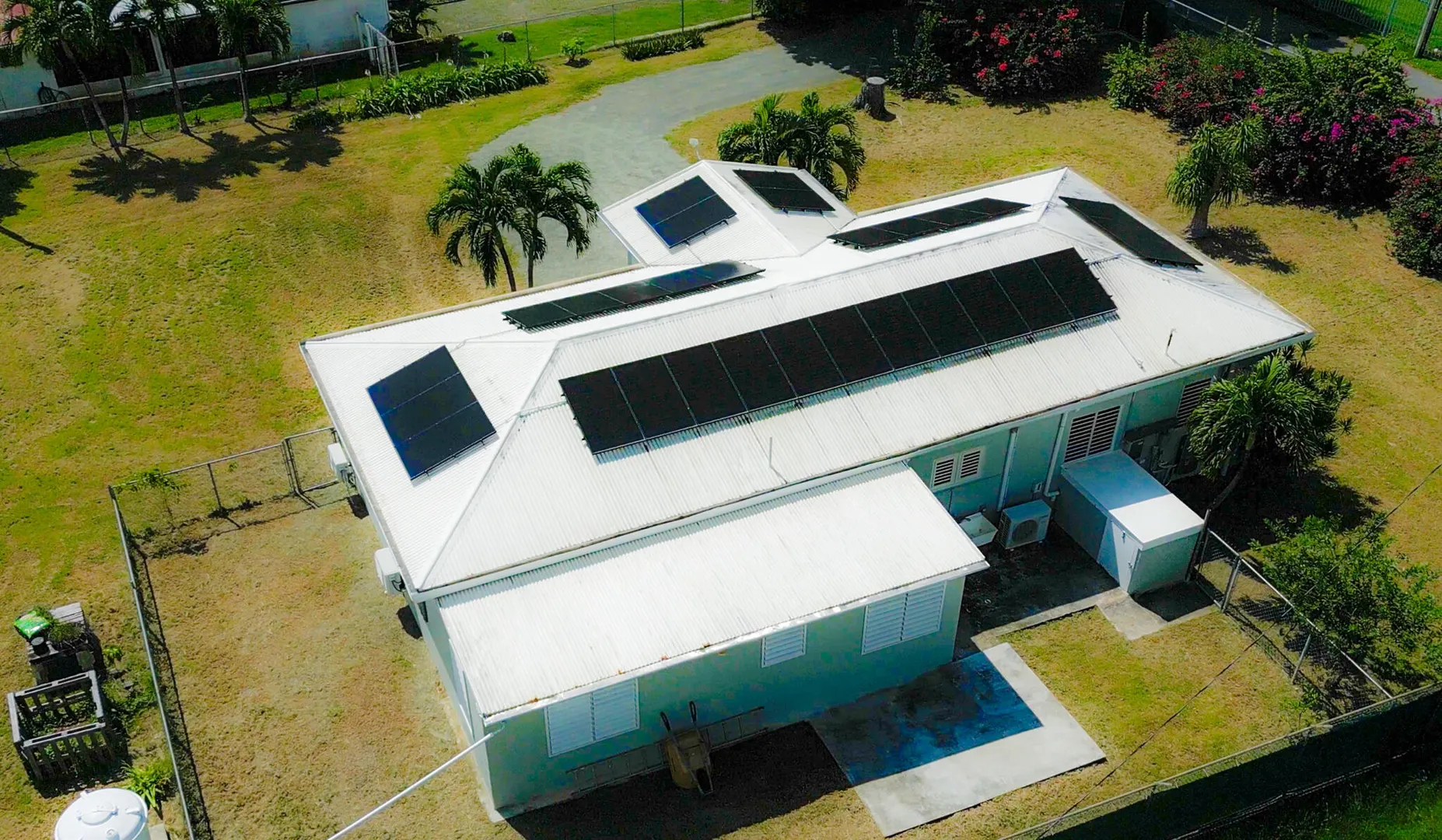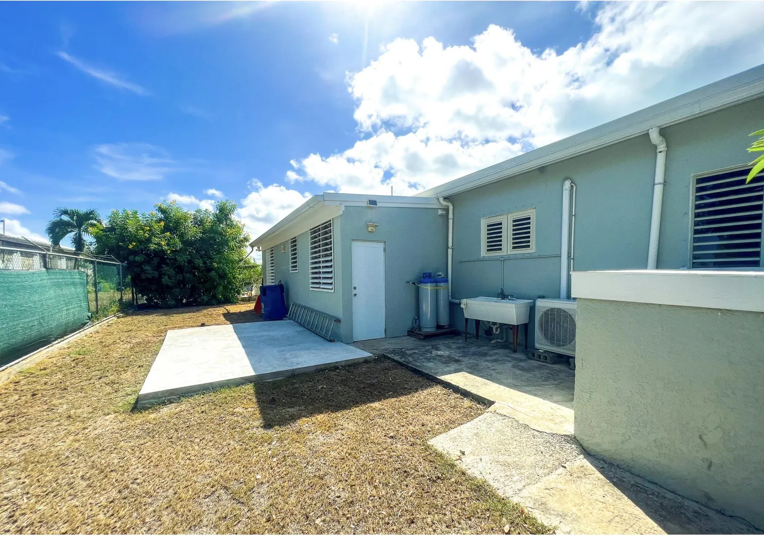 Nestled just outside Frederiksted town, this stunning 3-bedroom, 2-bathroom home offers a serene lifestyle on a private, fully fenced acre. It features extensive updates, including brand-new electrical wiring, a cutting-edge Enphase solar system with battery backup for off grid sustainable living, and modern appliances. The fully air-conditioned interior is complemented by new fans, light fixtures, and many windows that bring natural light into the home.Ideal for those with a green thumb, the property is outfitted with two compost beds, three raised garden beds, and two 600-gallon water buffalos. The 20x9 two-chambered cistern provides ample water storage, supplemented by an old cistern reserved for gardening. Flowering and fruiting plants add to the lush, tropical setting.Pet lovers will appreciate the double fencing that ensures a safe space for furry friends.