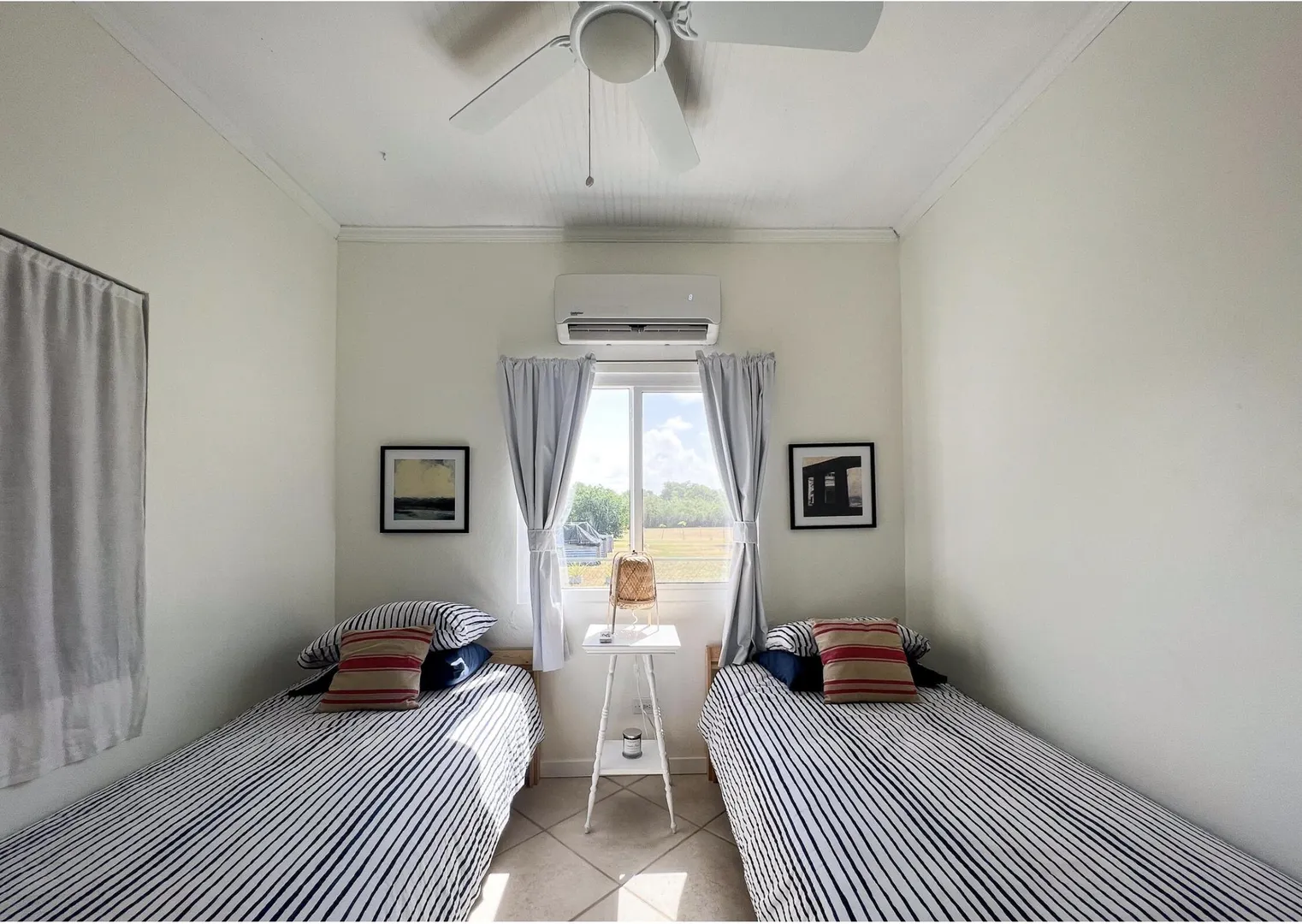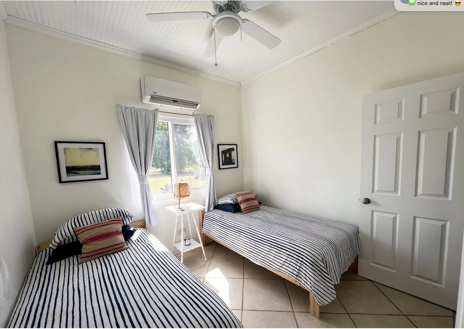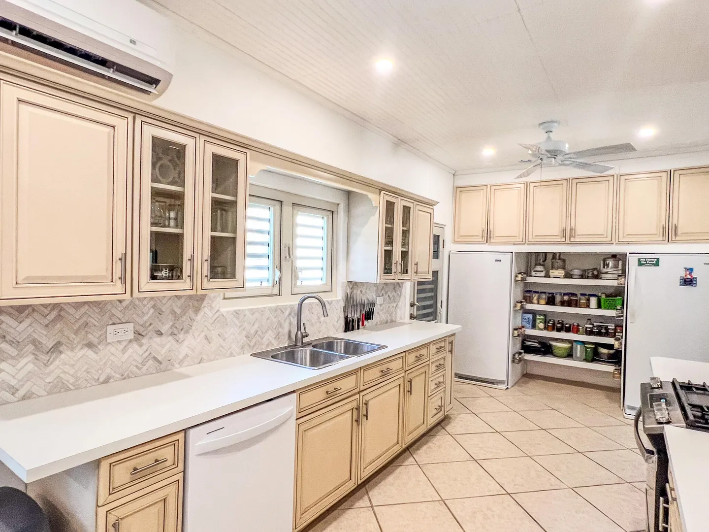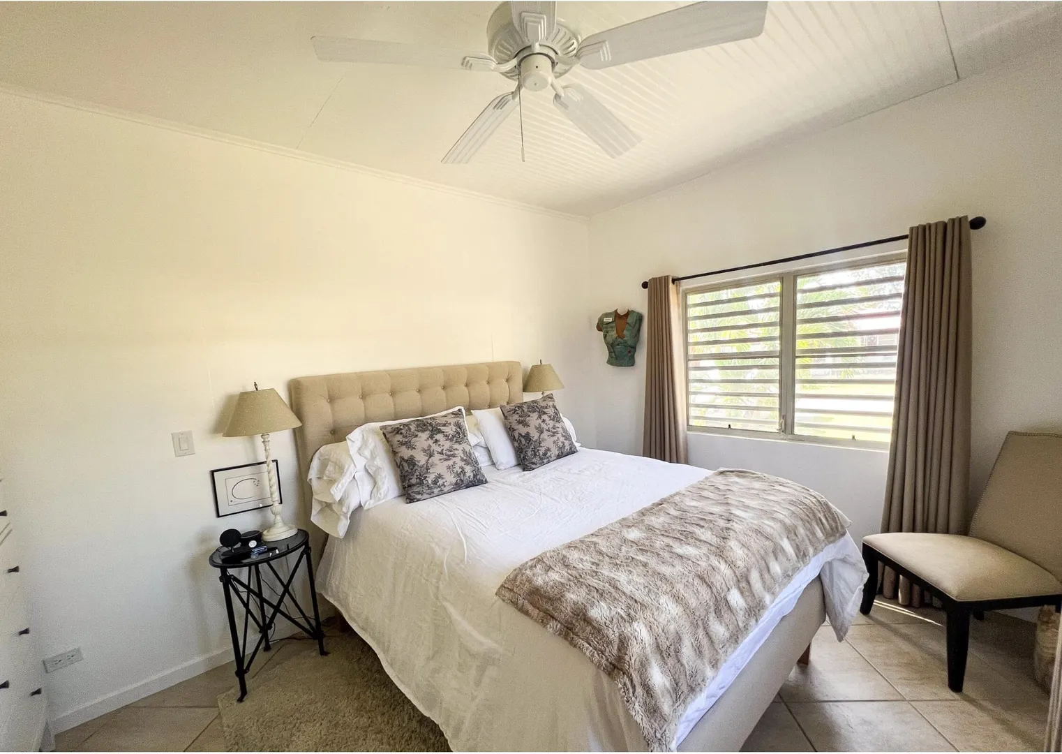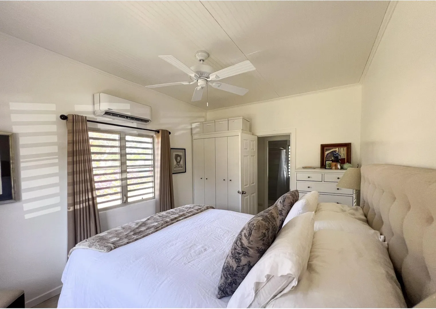 Nestled just outside Frederiksted town, this stunning 3-bedroom, 2-bathroom home offers a serene lifestyle on a private, fully fenced acre. It features extensive updates, including brand-new electrical wiring, a cutting-edge Enphase solar system with battery backup for off grid sustainable living, and modern appliances. The fully air-conditioned interior is complemented by new fans, light fixtures, and many windows that bring natural light into the home.Ideal for those with a green thumb, the property is outfitted with two compost beds, three raised garden beds, and two 600-gallon water buffalos. The 20x9 two-chambered cistern provides ample water storage, supplemented by an old cistern reserved for gardening. Flowering and fruiting plants add to the lush, tropical setting.Pet lovers will appreciate the double fencing that ensures a safe space for furry friends.
