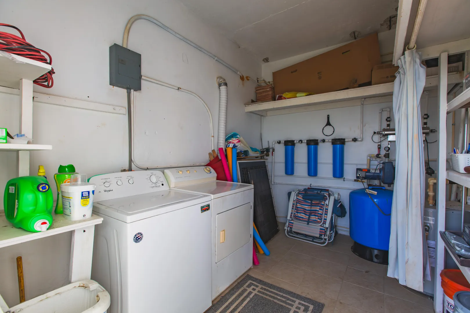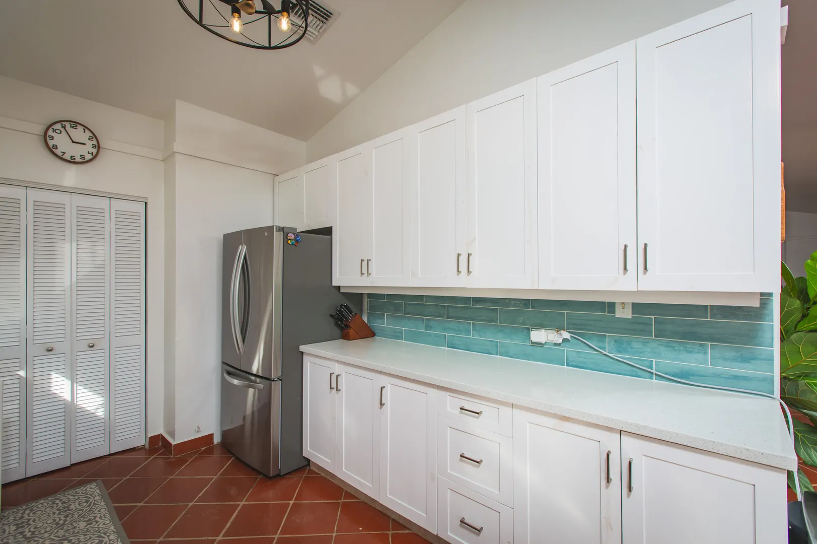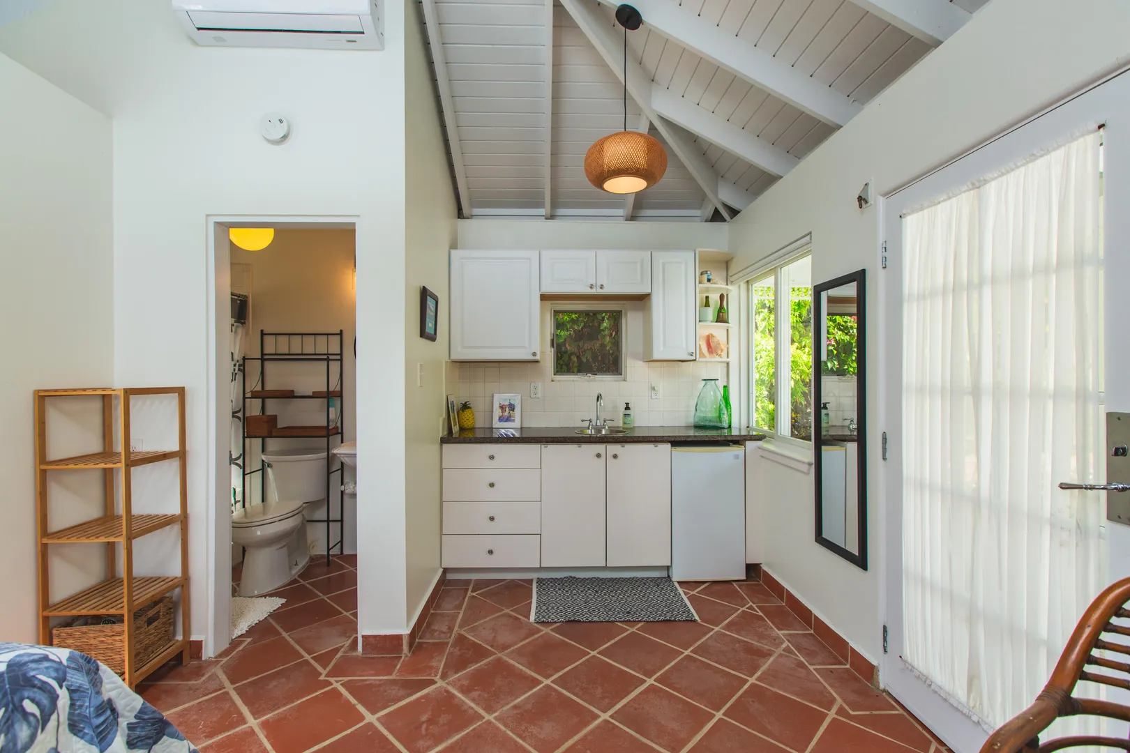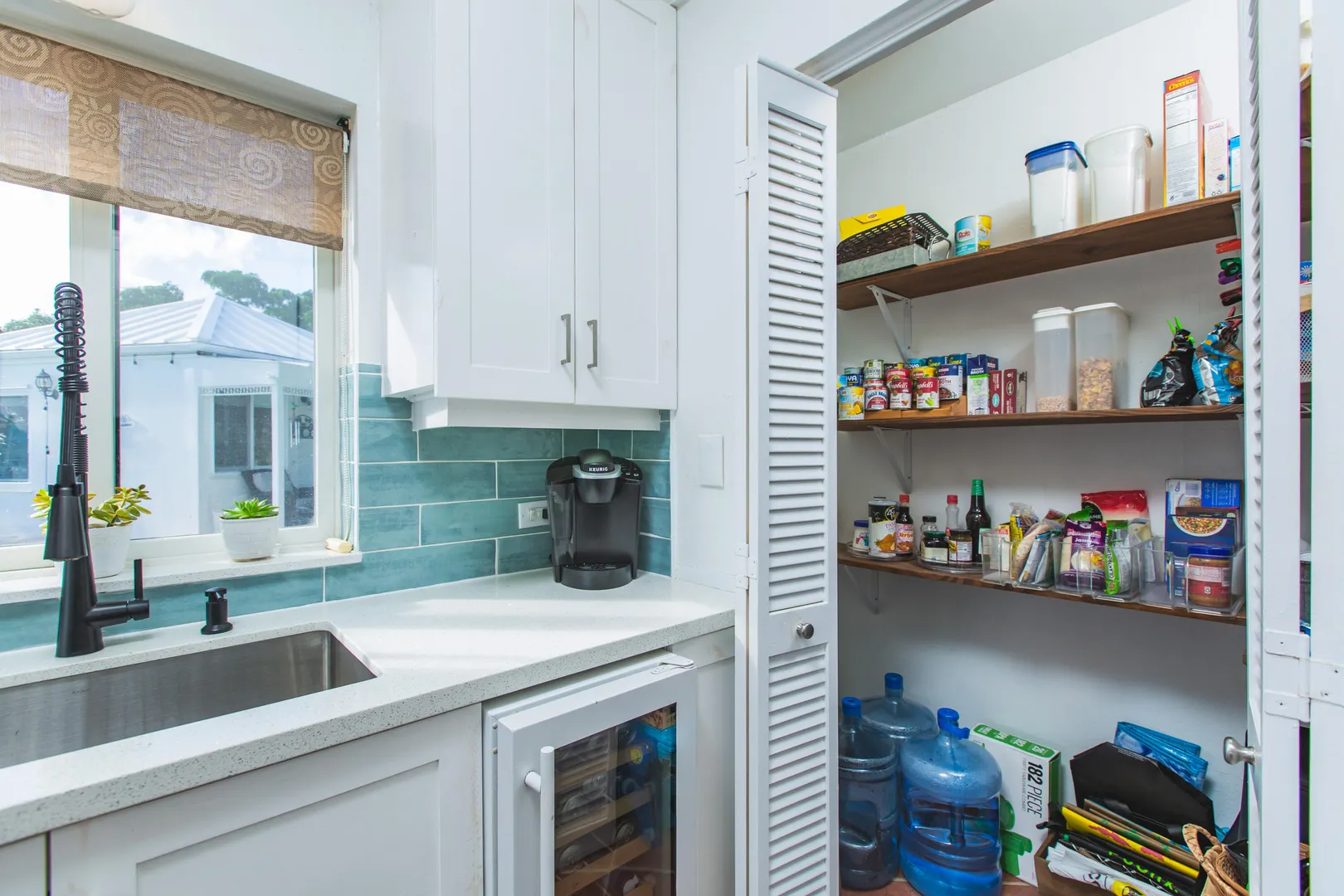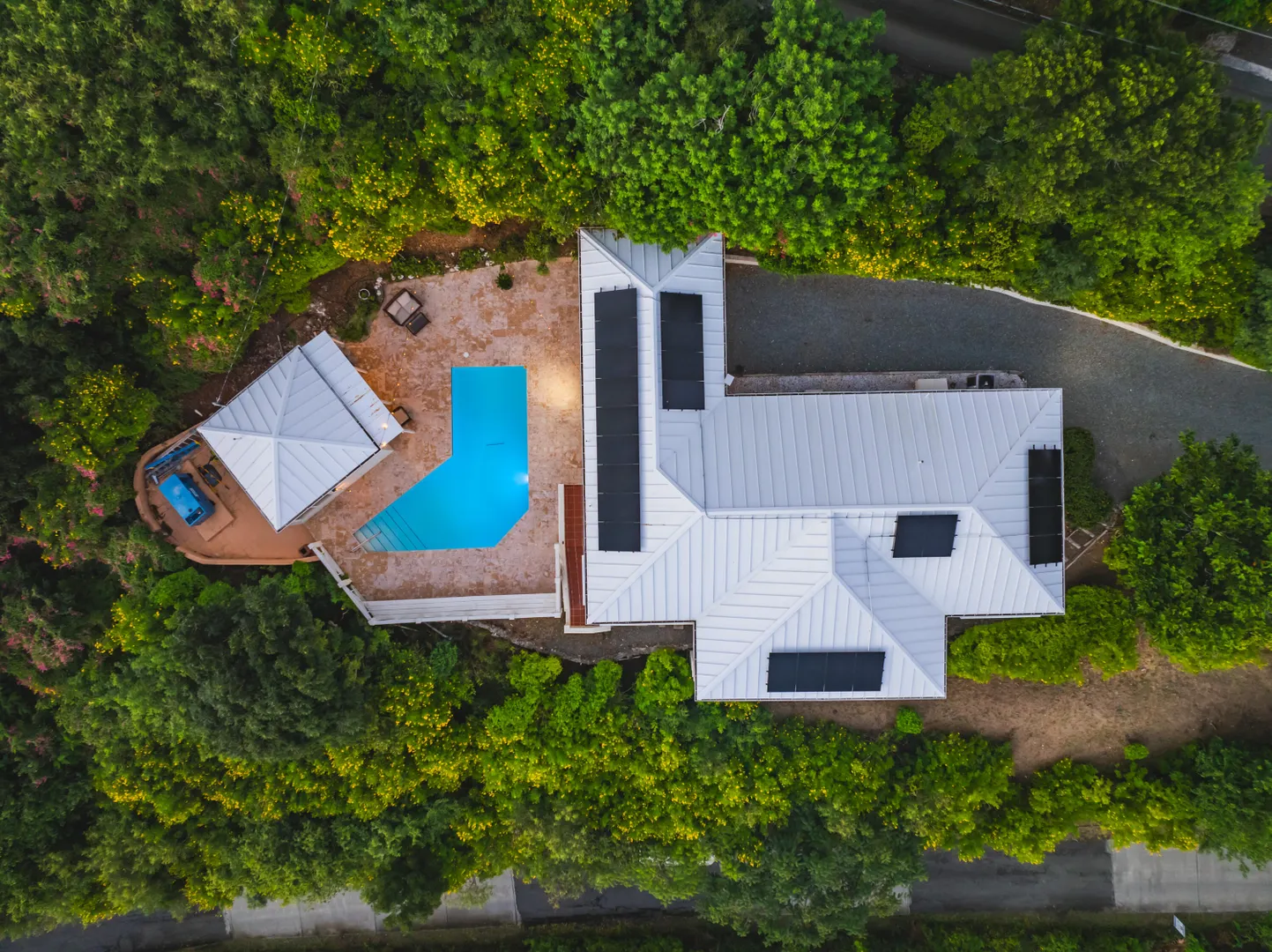 Nestled in the leafy enclave of Maggie Hill is this furnished, turn-key, 2 bedroom, 2 bath home with a pool, solar, central AC and mini splits, a studio cottage, lush landscaping and sweeping views of the South Shore. Gorgeous ocean blues fill the open floor plan through huge windows that line the entire southern exposure of the home. A terraced front yard filled with trees, perfect for dogs - the entire property has been fully fenced. Meticulously maintained....the Sellers have completed a multitude of improvements in the short time, they have owned the property - a full list of improvements is in the documents section. Perfect as a first or second home or turnkey vacation rental! (continued)The kitchen features new appliances, new backsplash tile, granite countertops, a separate wine fridge and a large pantry. The kitchen has a west facing door for easy access to the pool and grill when entertaining. The dining table with upholstered bench provides for comfy and relaxing meals while starring out at the ocean. There is enough seating for more than 10 people comfortably at this window seat bench/dining area. There are many areas to lounge in this home. The spacious covered deck off the two living rooms has lots of cozy seating for ocean gazing or watching the activity down at Divi. The second living room leads to two bedrooms, both with their own bathroom. The primary bedroom has a large seating area, its own exit to the driveway, a walk-in closet and a dressing room between the ensuite bathroom and closet -any clotheshorse dream come true. The guest bathroom has been redone.