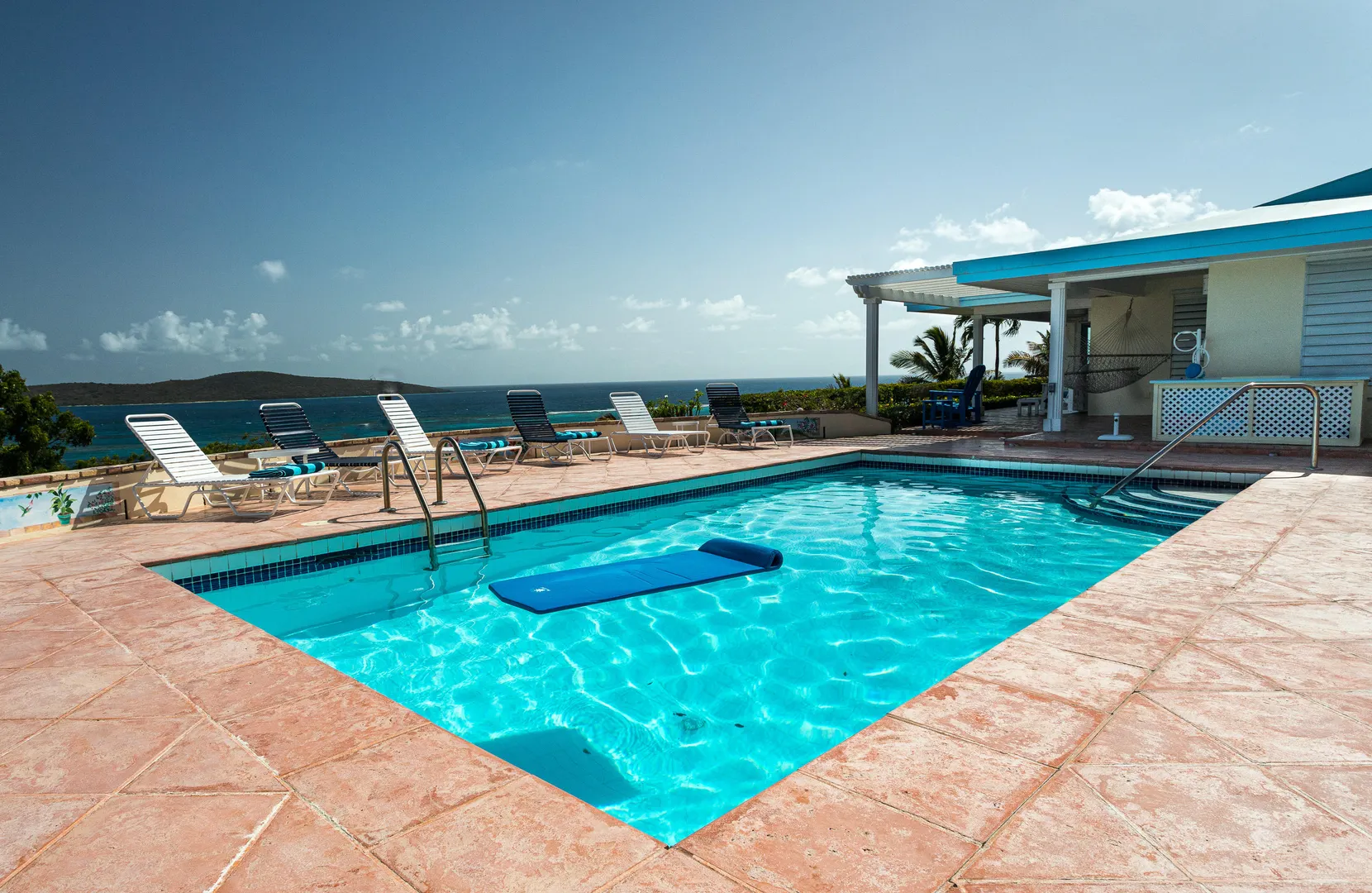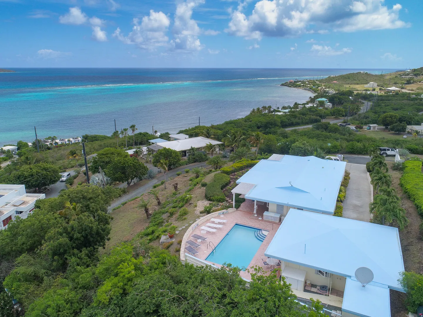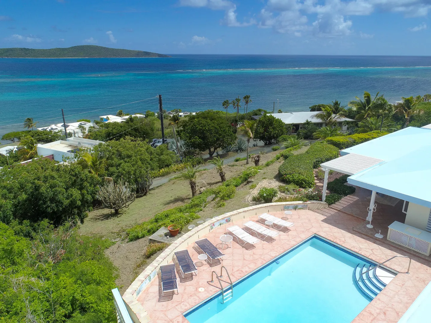 Views! Views! and more Views from every room! ''Reef Watch'' is perched on a hill over looking the beautiful Buck island with views of the BVI's on a clear day! The 2 bedroom en suite bathroom main house has a Caribbean Sea viewpoint from every room of the house as does the separate 1/1 pool cottage. The pool has vast area of space for outdoor living and entertaining while taking in the amazing scenery. The house has been meticulously maintained with a long and very successful vacation rental history. New propane 17 KW generator with automatic transfer switch. Lawn irrigation system.