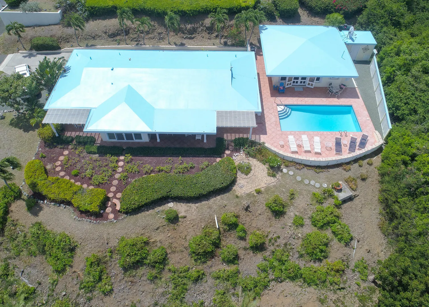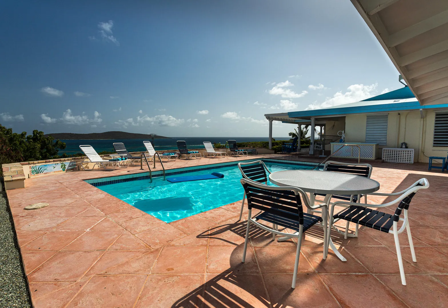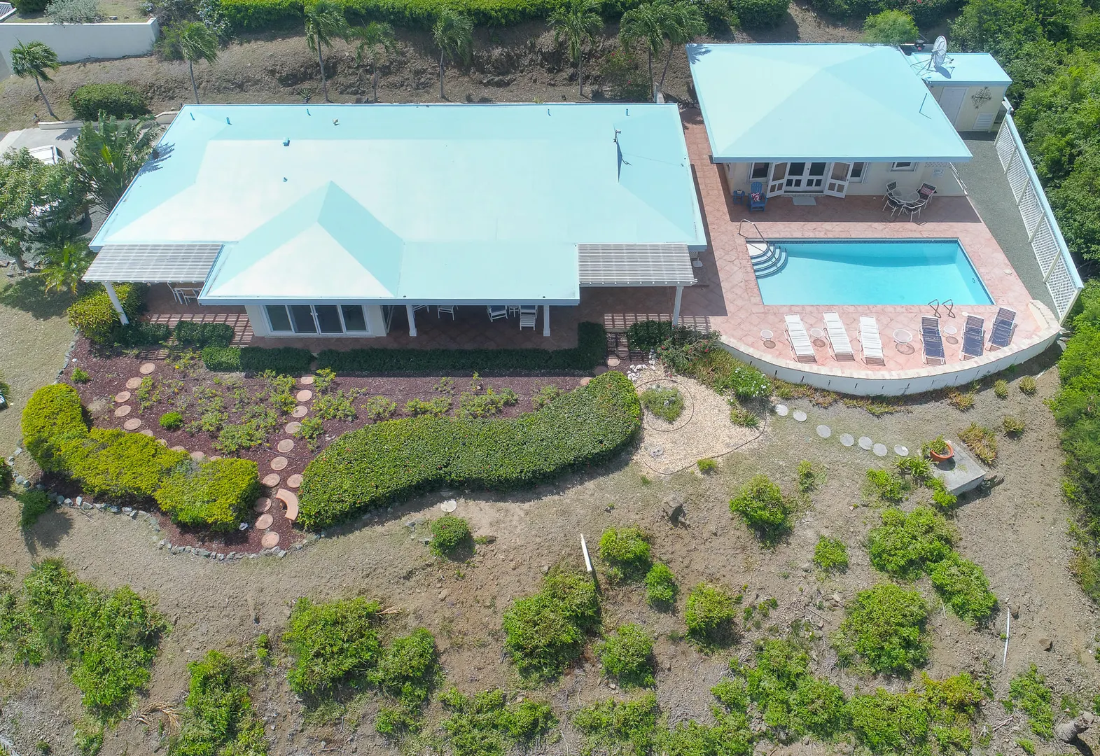 Views! Views! and more Views from every room! ''Reef Watch'' is perched on a hill over looking the beautiful Buck island with views of the BVI's on a clear day! The 2 bedroom en suite bathroom main house has a Caribbean Sea viewpoint from every room of the house as does the separate 1/1 pool cottage. The pool has vast area of space for outdoor living and entertaining while taking in the amazing scenery. The house has been meticulously maintained with a long and very successful vacation rental history. New propane 17 KW generator with automatic transfer switch. Lawn irrigation system.